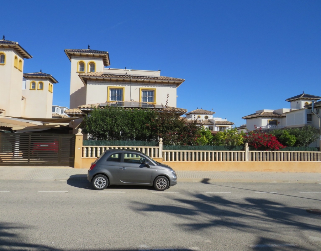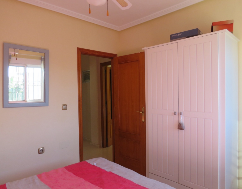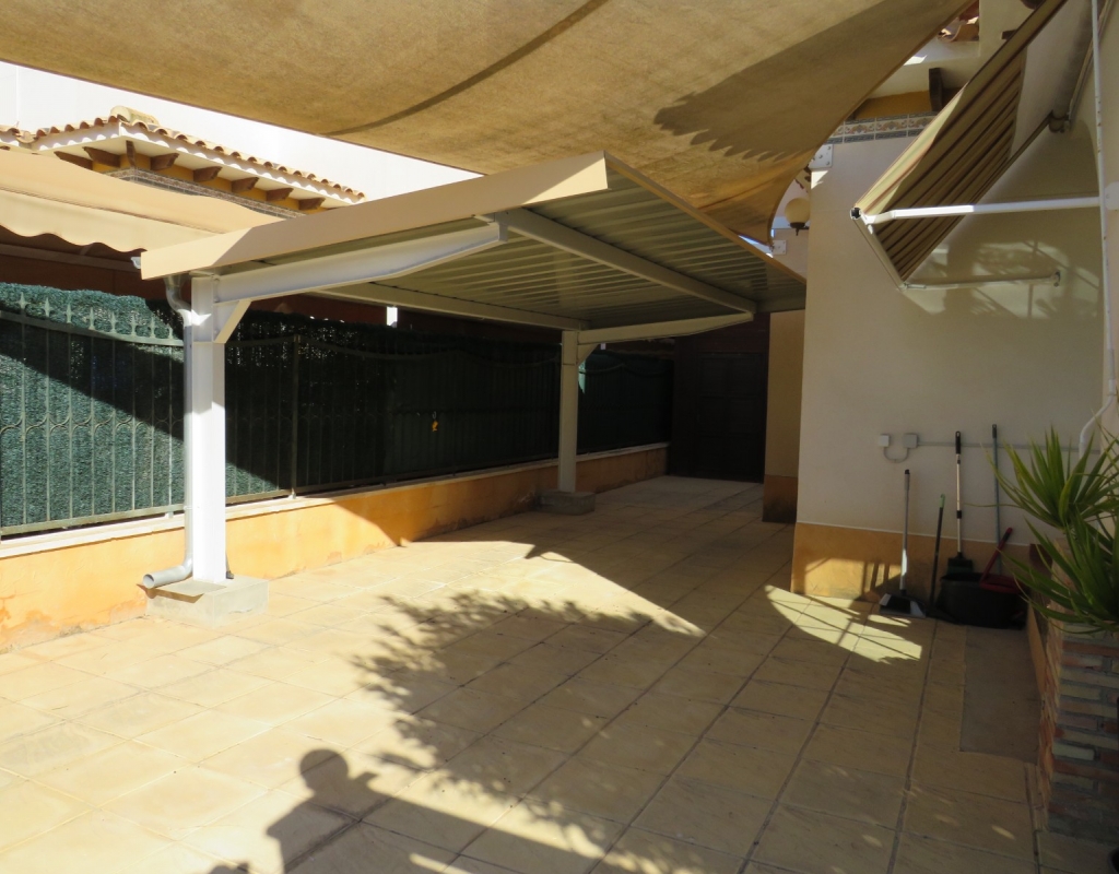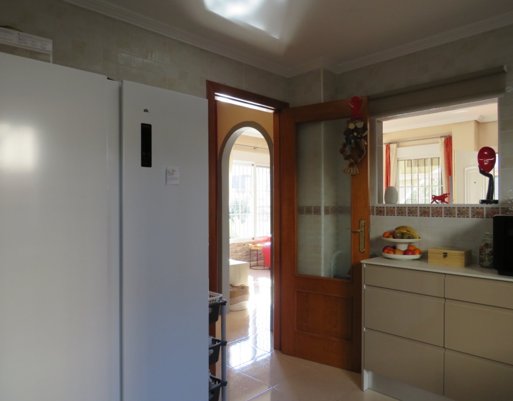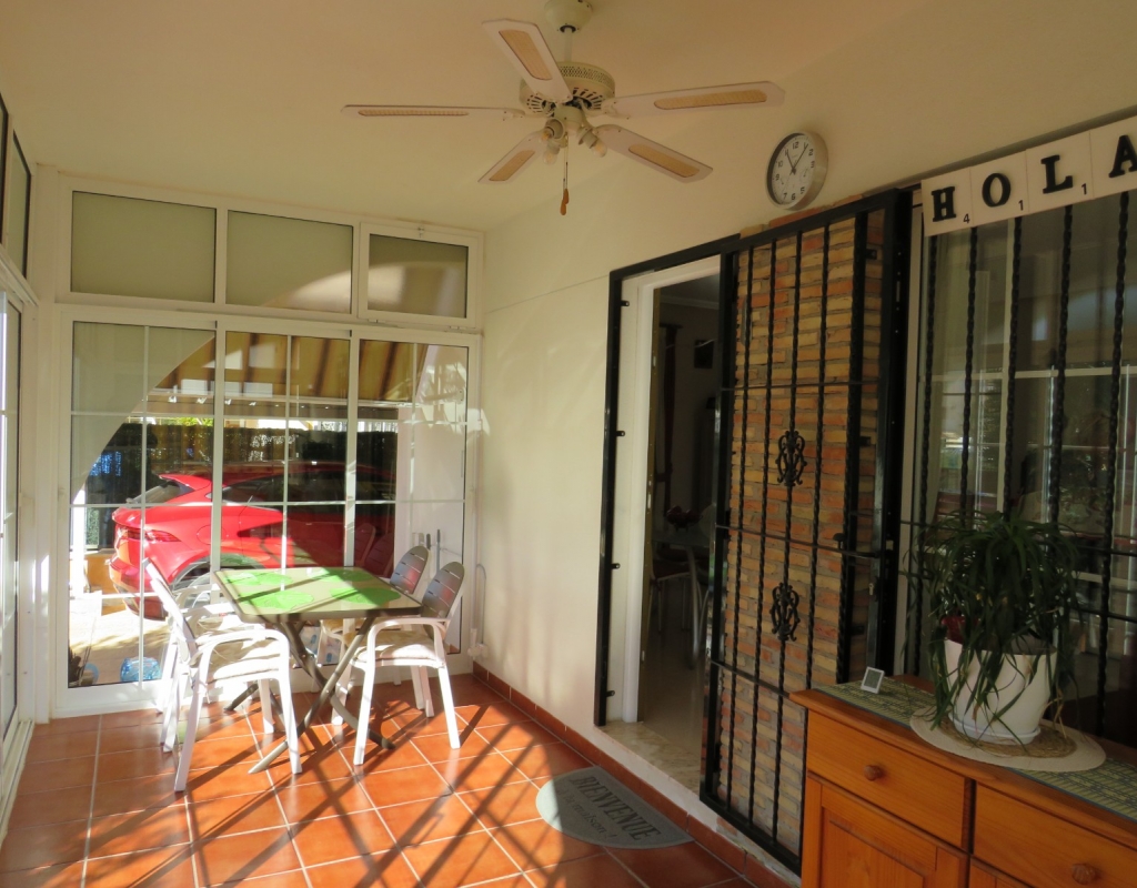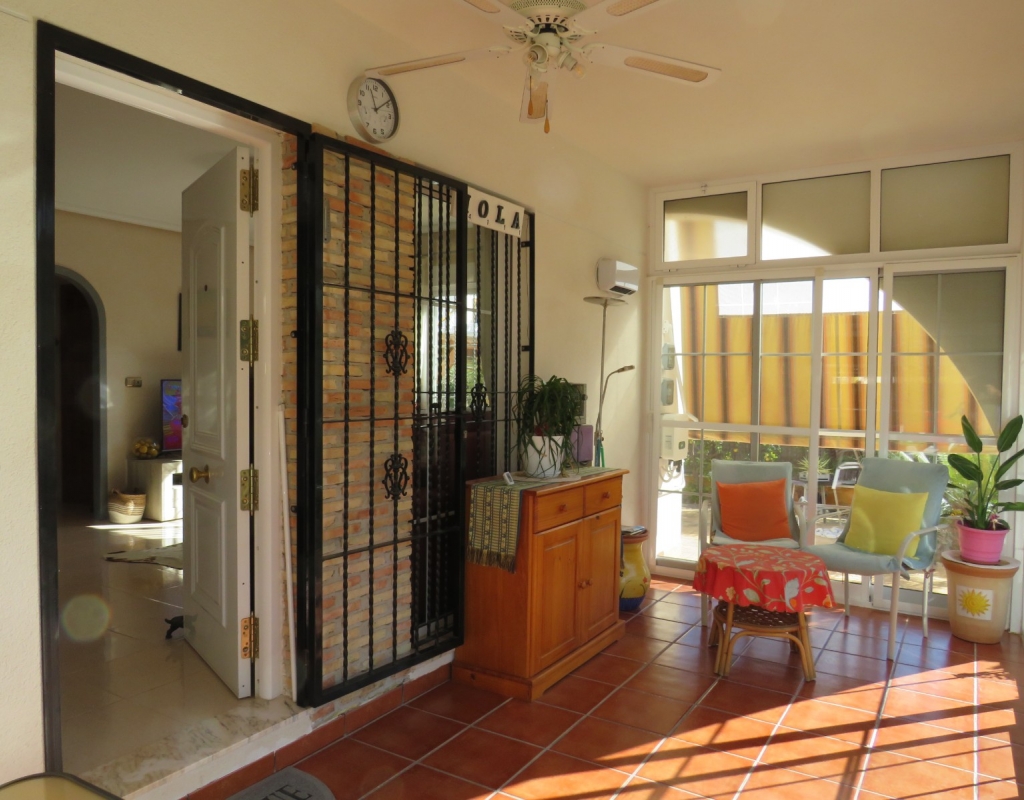 Wir sind stolz, Ihnen diese schöne, nach Süden ausgerichtete Villa in El Pinet, Elche, Alicante an der südlichen Costa Blanca, nur 500 Meter vom Strand entfernt, zum Verkauf anbieten zu können. Das Anwesen verfügt über ein elektronisches Eingangstorsystem, das zu einem Carport und einem großen Holzschuppen führt. Auf der anderen Seite des Hauses finden Sie eine große Terrasse, die auch groß genug ist, um bei Bedarf einen privaten Pool einzurichten. Die Veranda ist vollständig verglast und mit Moskitonetzen ausgestattet und führt Sie zum Haupteingang des Hauses, wo Sie in ein großes und sonniges Wohnzimmer mit Essbereich gelangen. Auf derselben Etage finden Sie ein großes Schlafzimmer mit Doppelbett, ein Badezimmer mit Duschwanne und eine große, kürzlich modernisierte separate Küche mit Speisekammer.