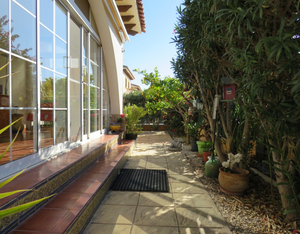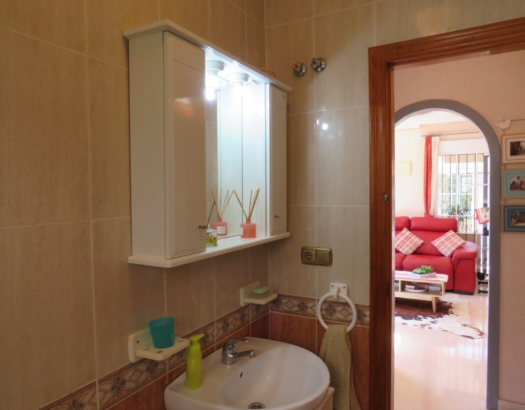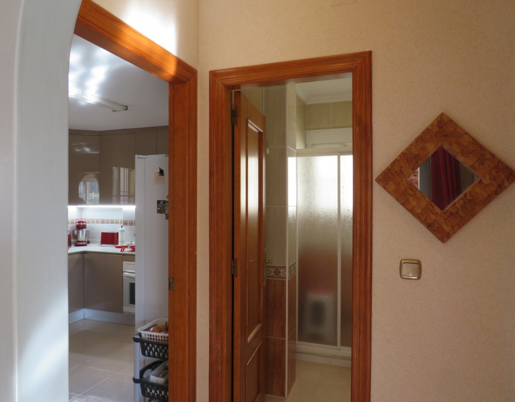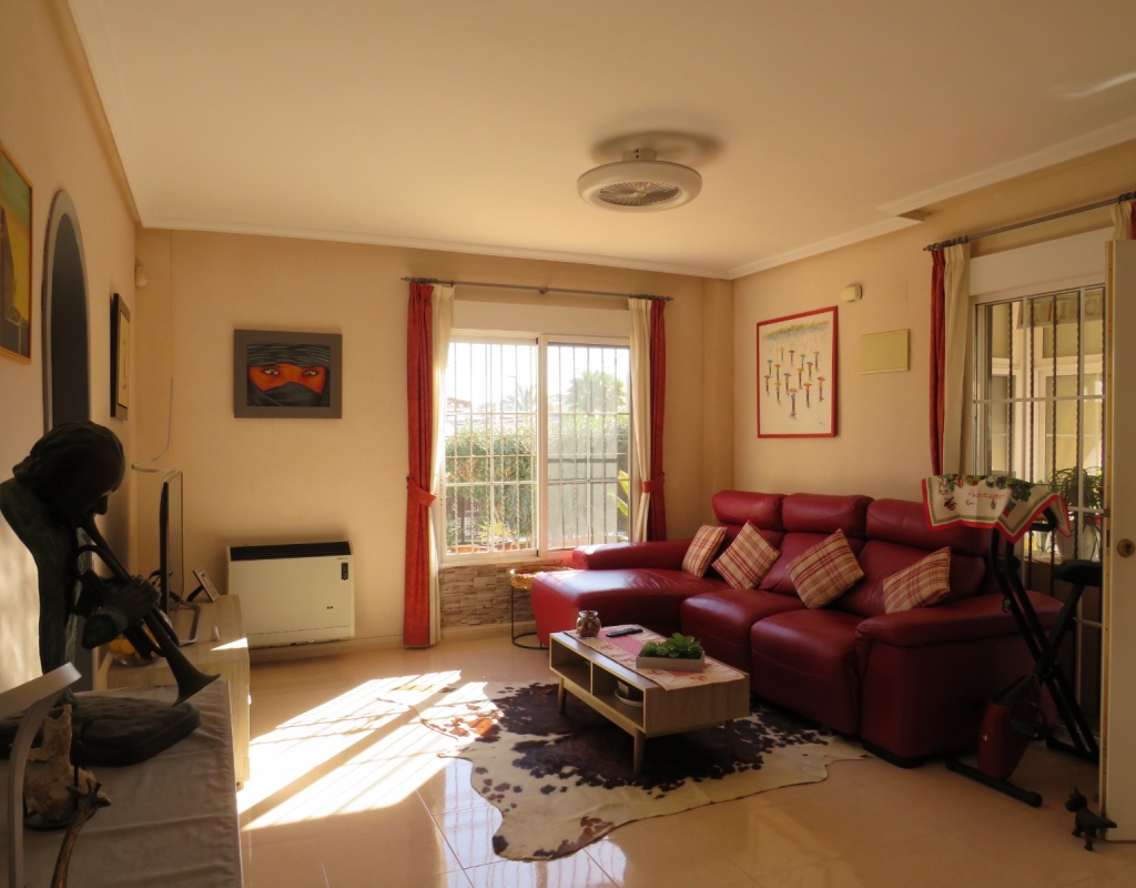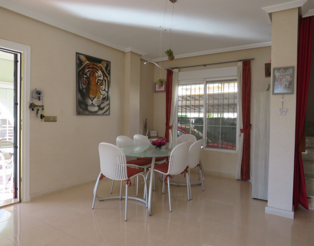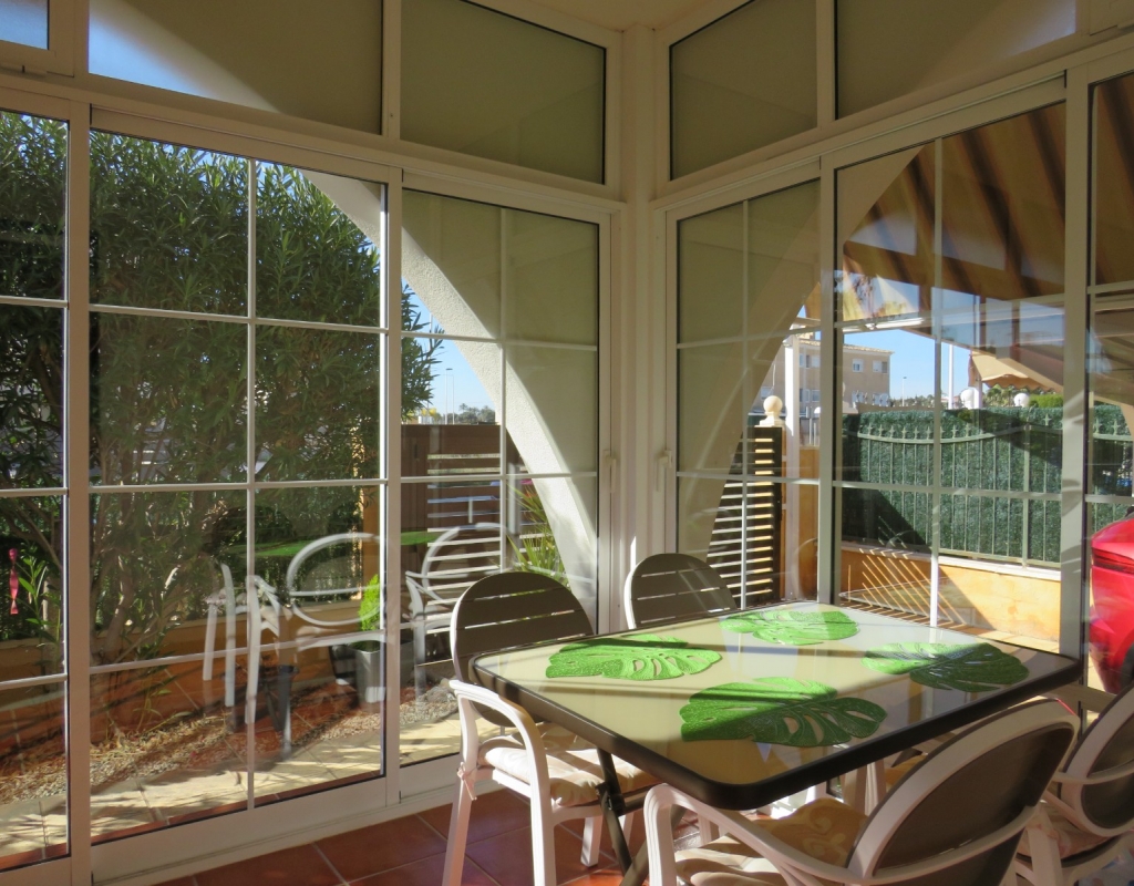 Wir sind stolz, Ihnen diese schöne, nach Süden ausgerichtete Villa in El Pinet, Elche, Alicante an der südlichen Costa Blanca, nur 500 Meter vom Strand entfernt, zum Verkauf anbieten zu können. Das Anwesen verfügt über ein elektronisches Eingangstorsystem, das zu einem Carport und einem großen Holzschuppen führt. Auf der anderen Seite des Hauses finden Sie eine große Terrasse, die auch groß genug ist, um bei Bedarf einen privaten Pool einzurichten. Die Veranda ist vollständig verglast und mit Moskitonetzen ausgestattet und führt Sie zum Haupteingang des Hauses, wo Sie in ein großes und sonniges Wohnzimmer mit Essbereich gelangen. Auf derselben Etage finden Sie ein großes Schlafzimmer mit Doppelbett, ein Badezimmer mit Duschwanne und eine große, kürzlich modernisierte separate Küche mit Speisekammer.