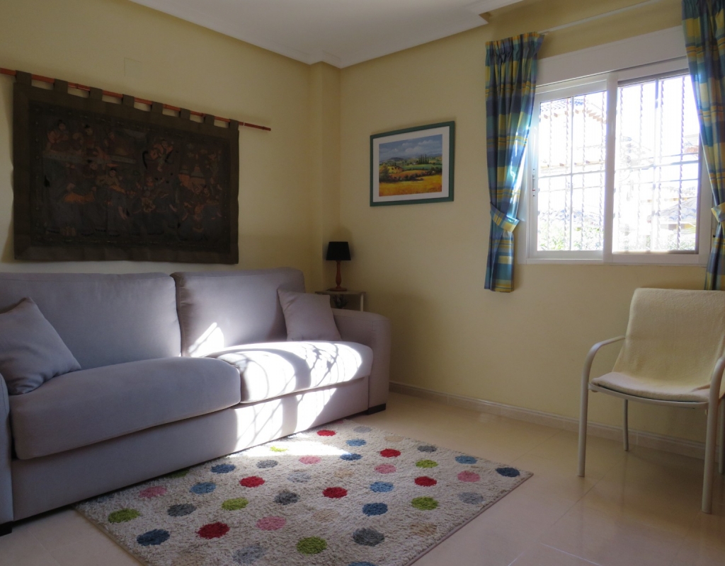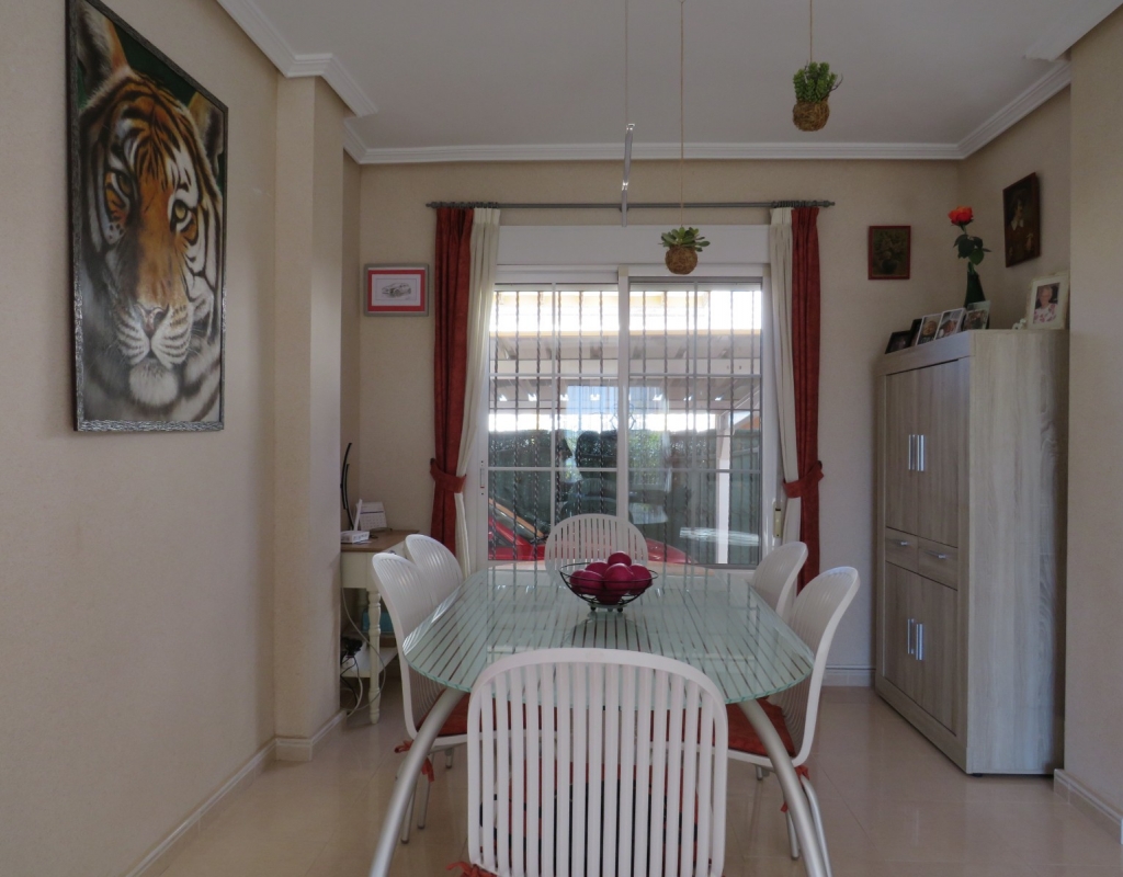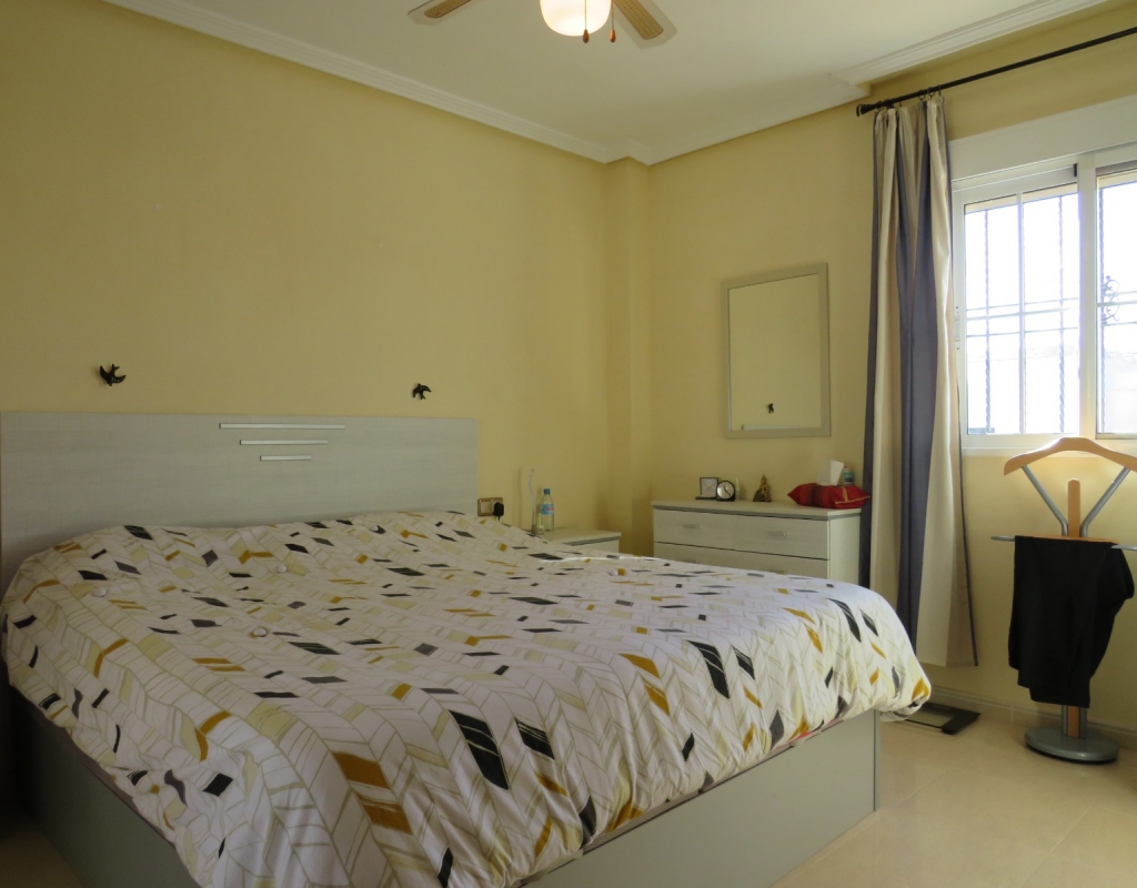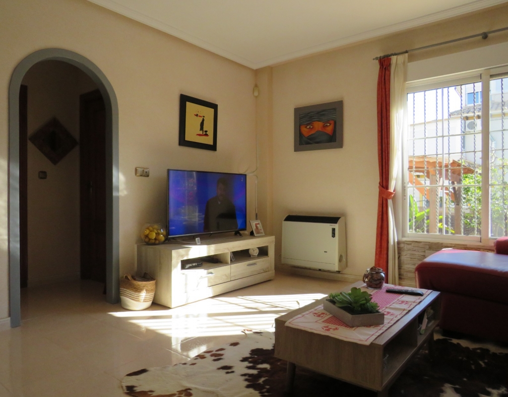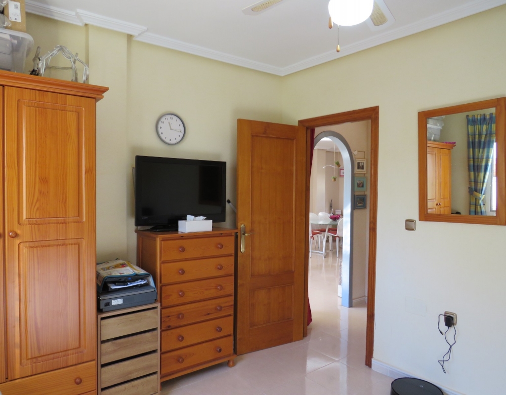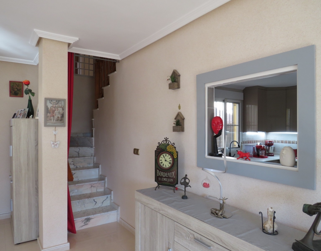 Wir sind stolz, Ihnen diese schöne, nach Süden ausgerichtete Villa in El Pinet, Elche, Alicante an der südlichen Costa Blanca, nur 500 Meter vom Strand entfernt, zum Verkauf anbieten zu können. Das Anwesen verfügt über ein elektronisches Eingangstorsystem, das zu einem Carport und einem großen Holzschuppen führt. Auf der anderen Seite des Hauses finden Sie eine große Terrasse, die auch groß genug ist, um bei Bedarf einen privaten Pool einzurichten. Die Veranda ist vollständig verglast und mit Moskitonetzen ausgestattet und führt Sie zum Haupteingang des Hauses, wo Sie in ein großes und sonniges Wohnzimmer mit Essbereich gelangen. Auf derselben Etage finden Sie ein großes Schlafzimmer mit Doppelbett, ein Badezimmer mit Duschwanne und eine große, kürzlich modernisierte separate Küche mit Speisekammer.