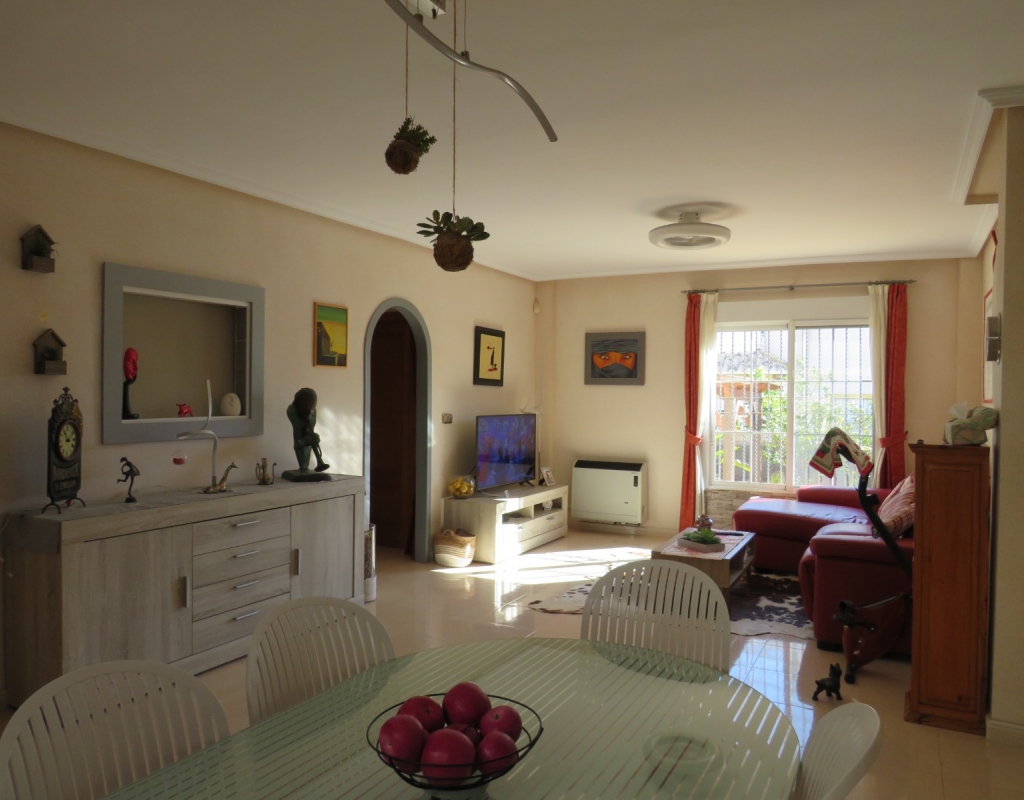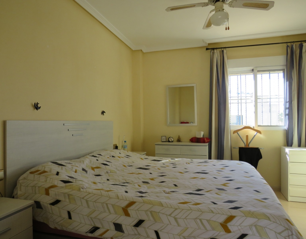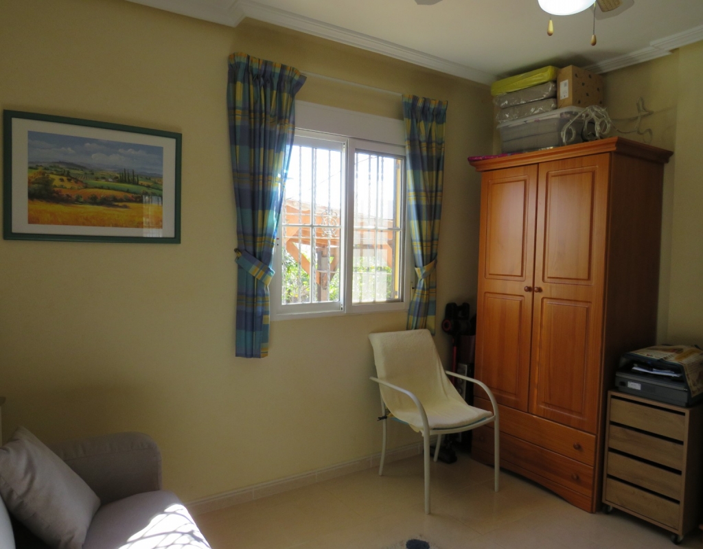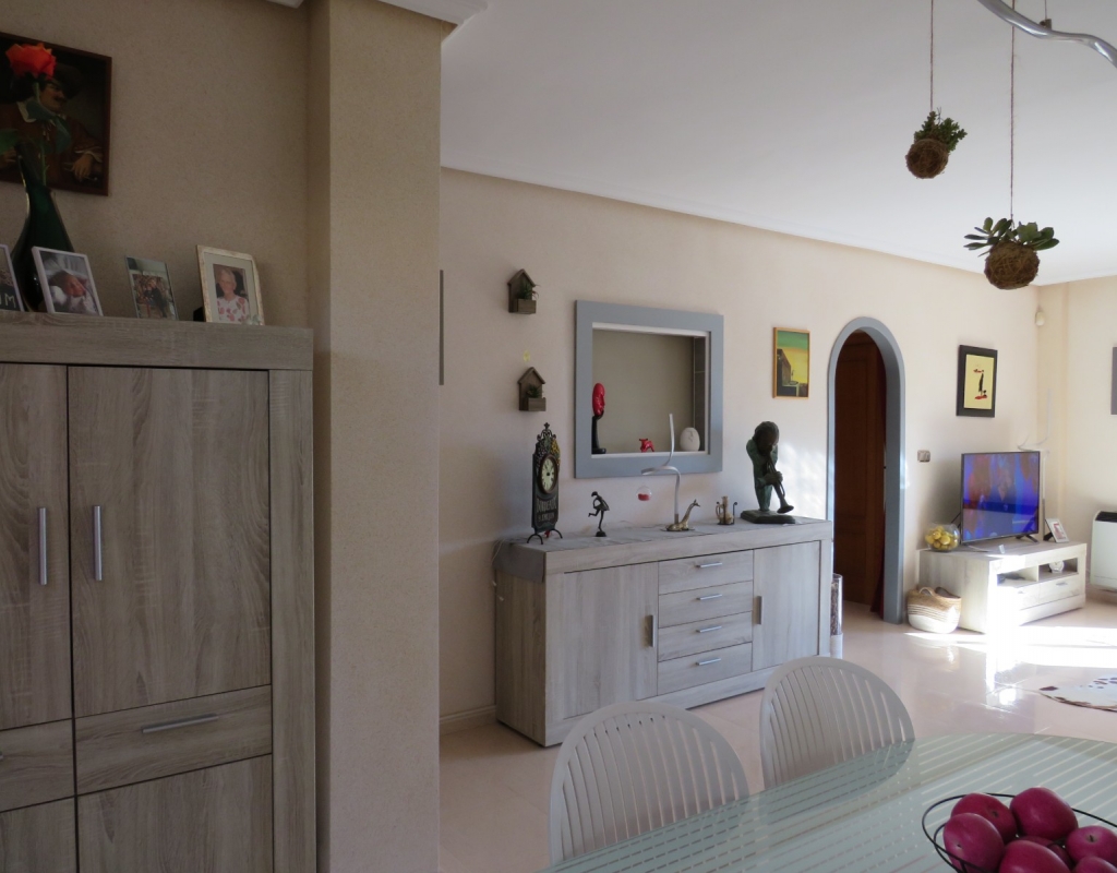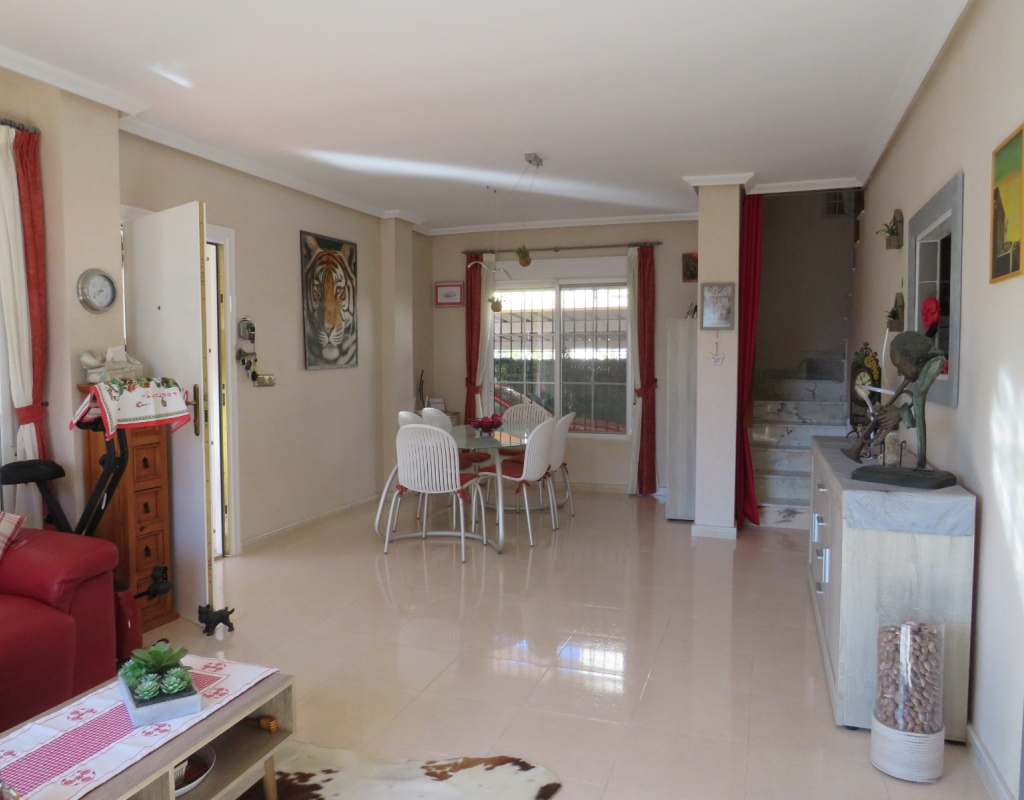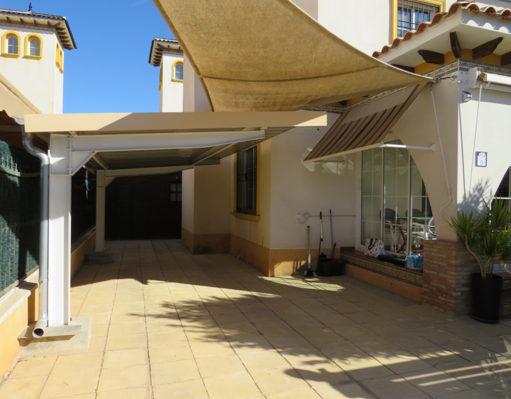 Wir sind stolz, Ihnen diese schöne, nach Süden ausgerichtete Villa in El Pinet, Elche, Alicante an der südlichen Costa Blanca, nur 500 Meter vom Strand entfernt, zum Verkauf anbieten zu können. Das Anwesen verfügt über ein elektronisches Eingangstorsystem, das zu einem Carport und einem großen Holzschuppen führt. Auf der anderen Seite des Hauses finden Sie eine große Terrasse, die auch groß genug ist, um bei Bedarf einen privaten Pool einzurichten. Die Veranda ist vollständig verglast und mit Moskitonetzen ausgestattet und führt Sie zum Haupteingang des Hauses, wo Sie in ein großes und sonniges Wohnzimmer mit Essbereich gelangen. Auf derselben Etage finden Sie ein großes Schlafzimmer mit Doppelbett, ein Badezimmer mit Duschwanne und eine große, kürzlich modernisierte separate Küche mit Speisekammer.