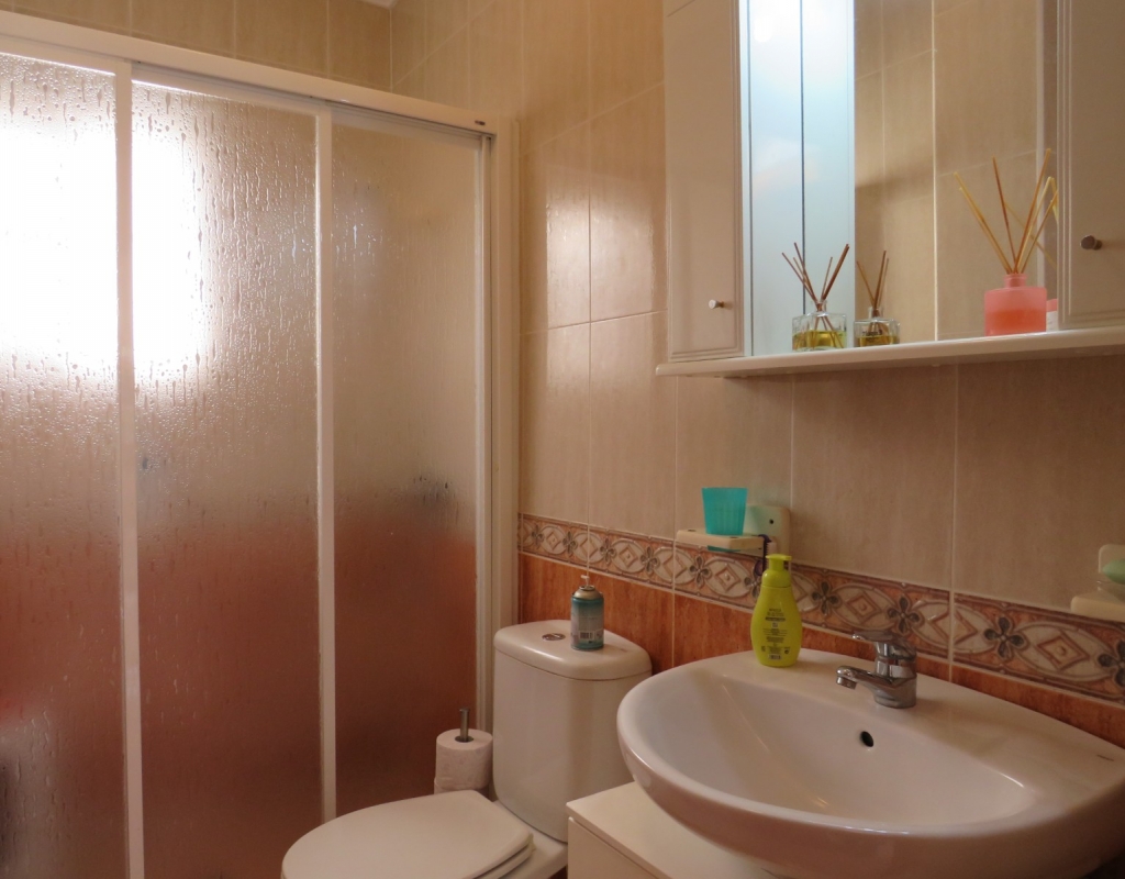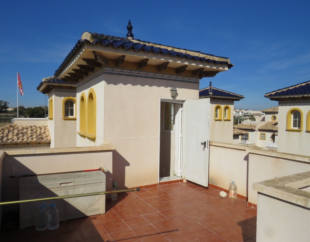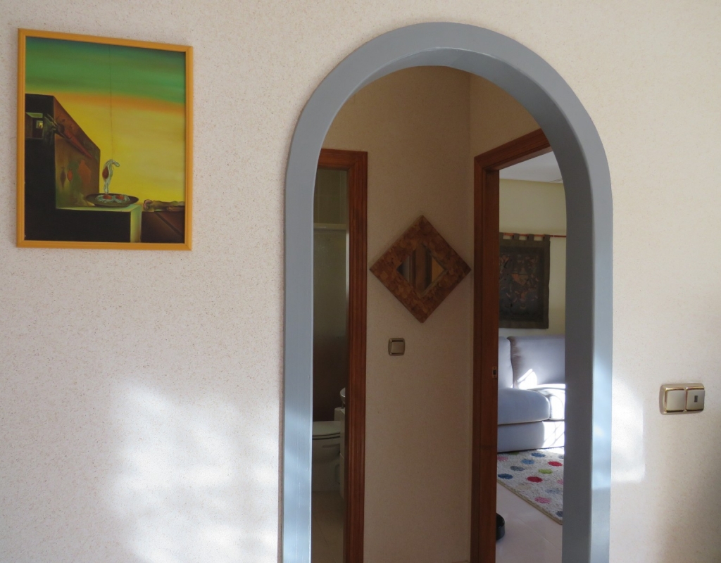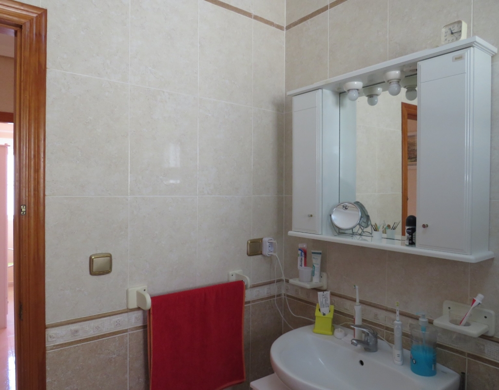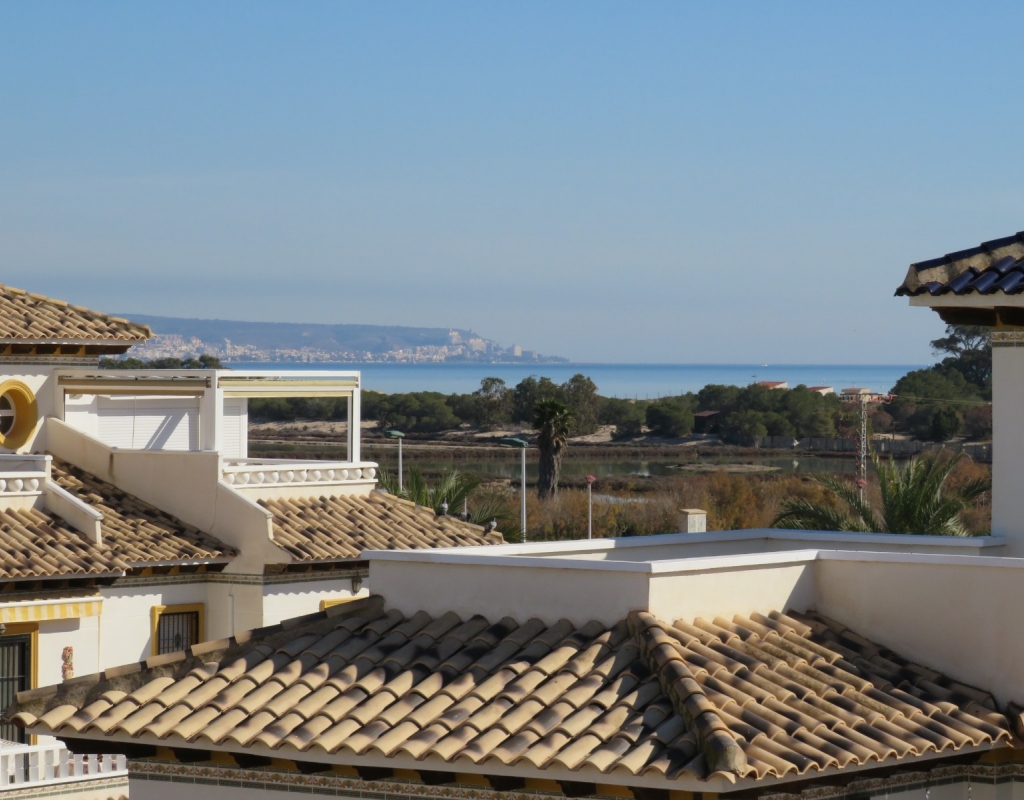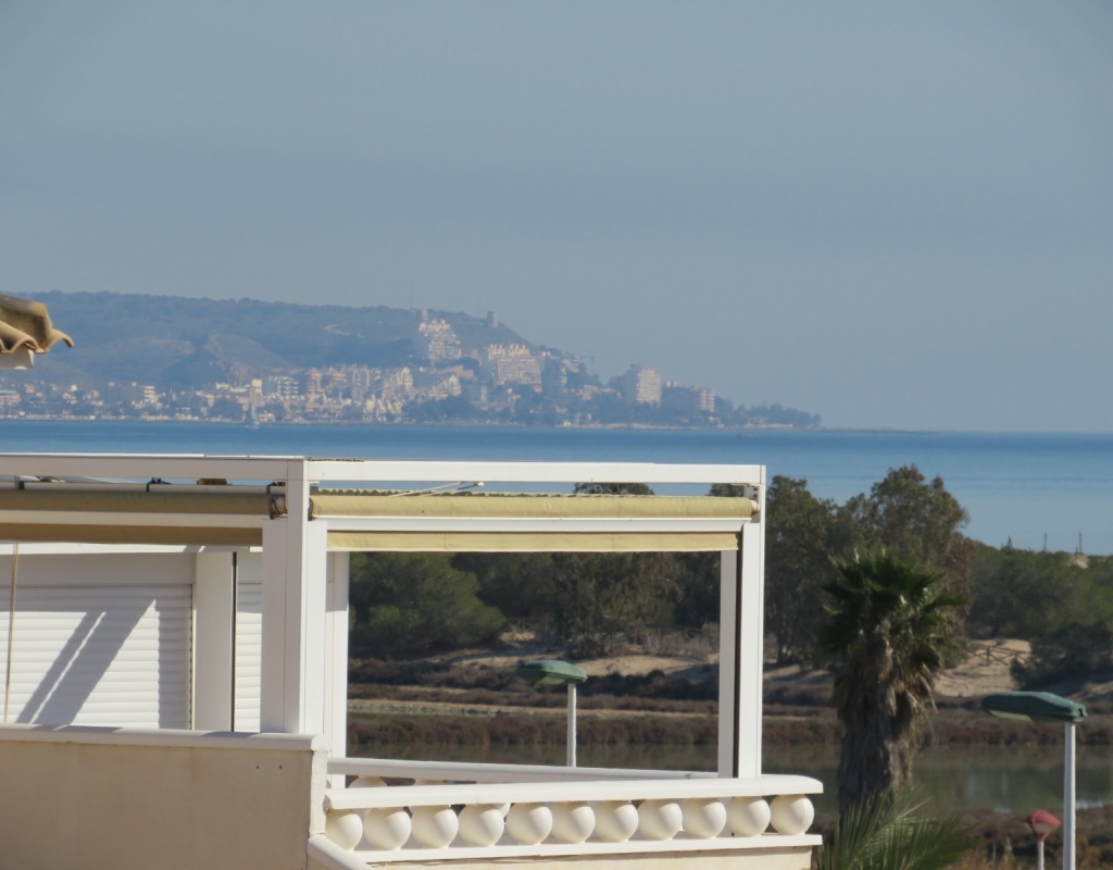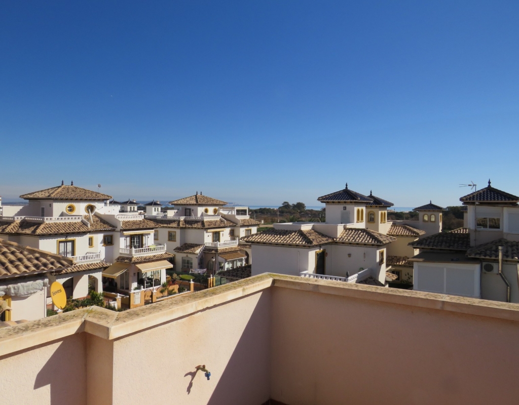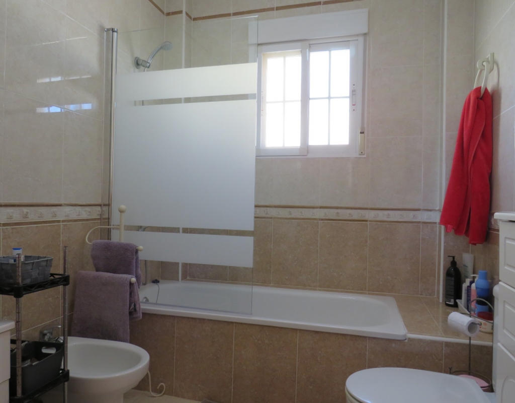 Die Marmortreppe führt Sie in die obere Etage, wo Sie das Familienbadezimmer, das zweite Schlafzimmer mit Einbauschrank und das Hauptschlafzimmer, ebenfalls mit Einbauschränken und einem verglasten Balkon, finden. Die Marmortreppe führt weiter und führt Sie zum großen privaten Solarium mit Meerblick. Das Anwesen wird möbliert verkauft und umfasst die Haushaltsgeräte. Das Anwesen verfügt über 5 Solarmodule mit einem kürzlich installierten Wechselrichter, außerdem einen Carport und die Küche wurde vor kurzem erneuert.