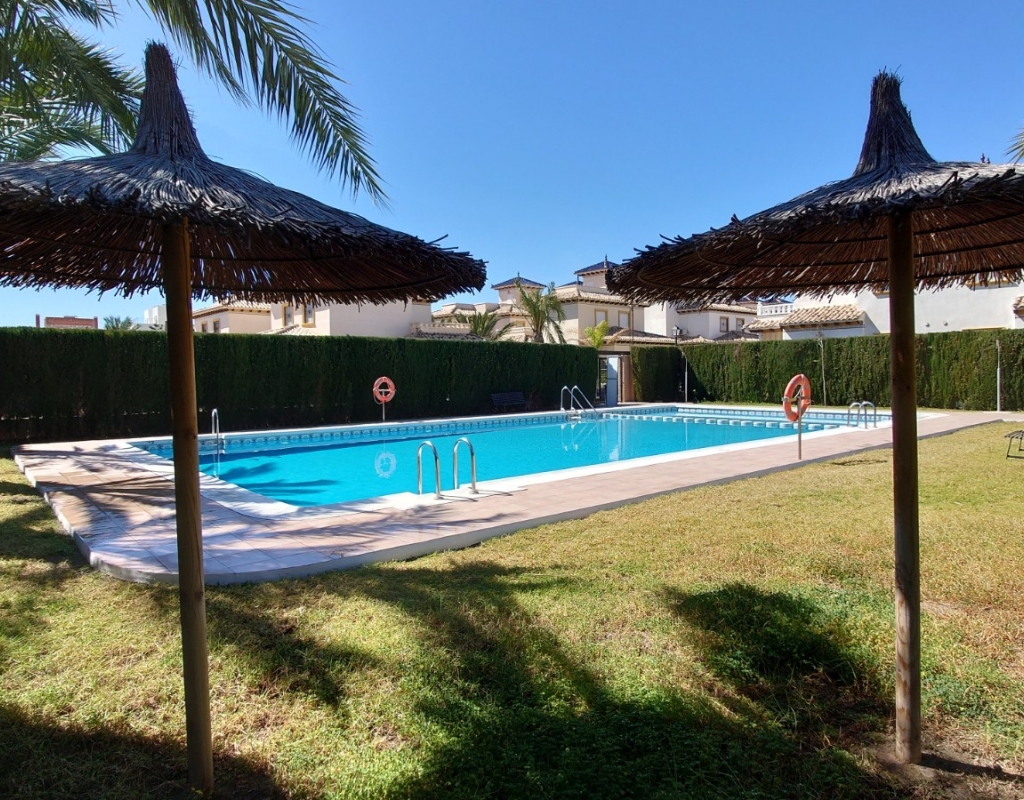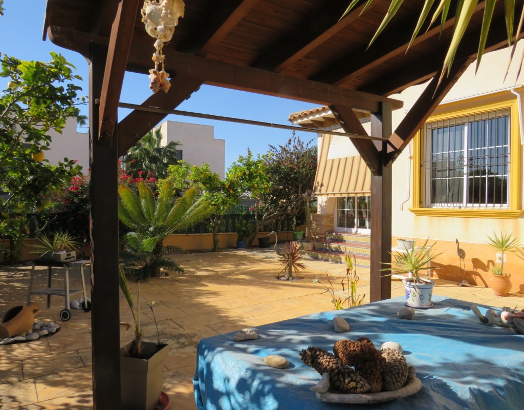 Nach Süden ausgerichtete Villa mit 3 Schlafzimmern und 2 Bädern zu verkaufen, nur 500 Meter vom Strand entfernt in El Pinet, La Marina, Elche, Alicante an der südlichen Costa Blanca.