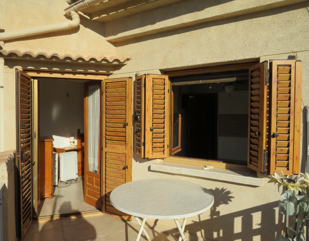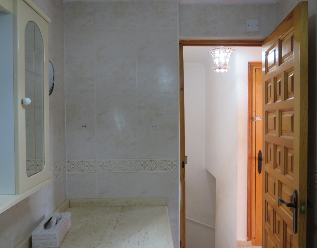 Aquí tenemos una encantadora casa adosada de 2 dormitorios con orientación sur en venta en la popular zona de Buenavista, Guardamar del Segura, Alicante, en la Costa Blanca Sur, a tan solo seiscientos metros de la playa. La vivienda tiene una superficie construida de unos 60 m² en dos plantas. En el exterior encontrará una terraza baja con trasteros de aluminio y ladrillo, y subiendo unos escalones se accede a otra terraza y un porche. En el interior encontrará un amplio salón, una cocina americana y un aseo. La escalera de mármol conduce a la planta superior, donde encontrará un amplio trastero, el baño familiar y dos dormitorios dobles, el principal con acceso a un amplio y soleado balcón con impresionantes vistas al jardín.