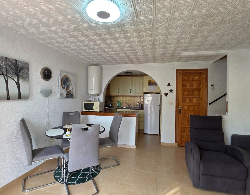 The property is sold furnished and includes the white goods. It sits just a five to ten minute walk from the beautiful beach and is just five hundred metres away from La Marina International Camping which has many amenities available including a supermarket from a well known Spanish chain open seven days a week. Located just two kilometres from La Marina village and only a twenty minute drive from Alicante International Airport makes this a perfect holiday or permanent home.