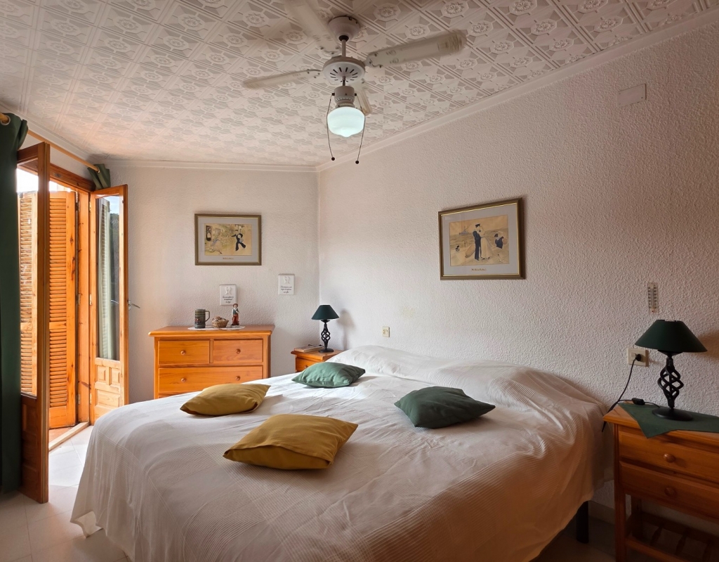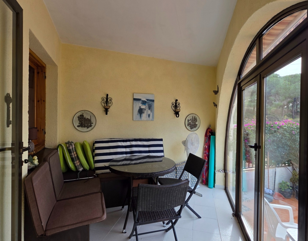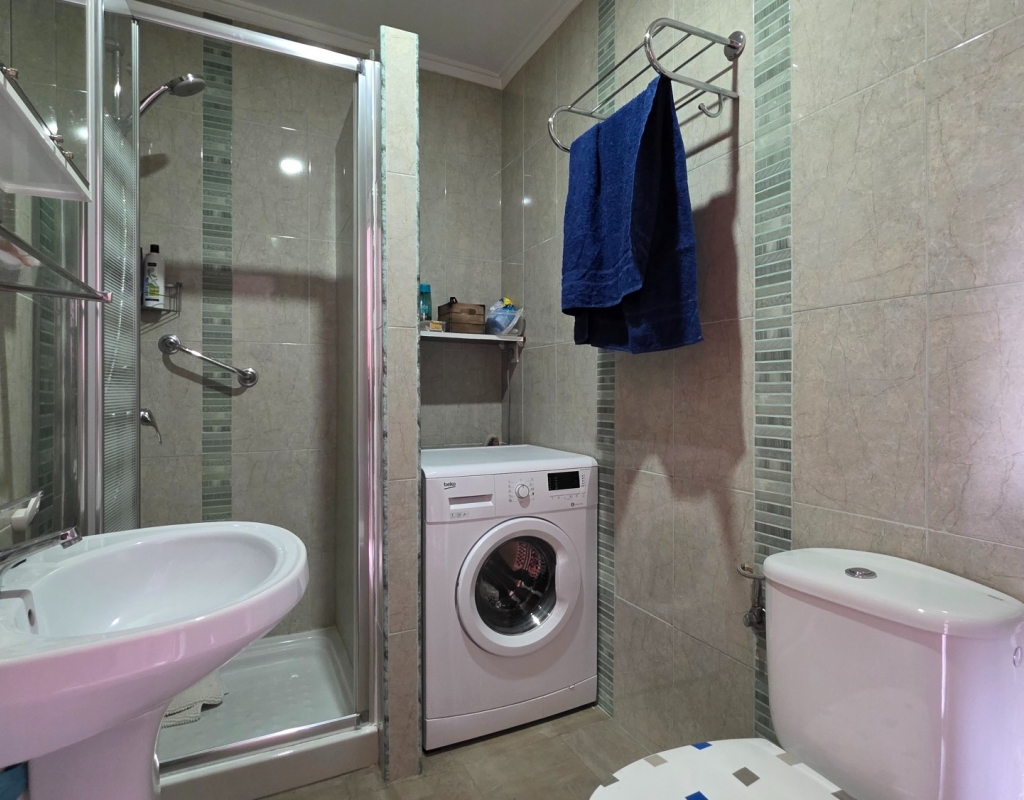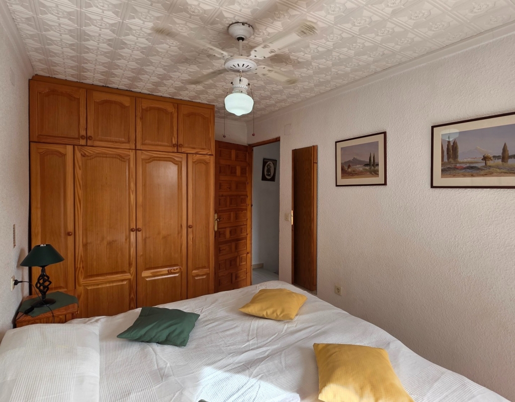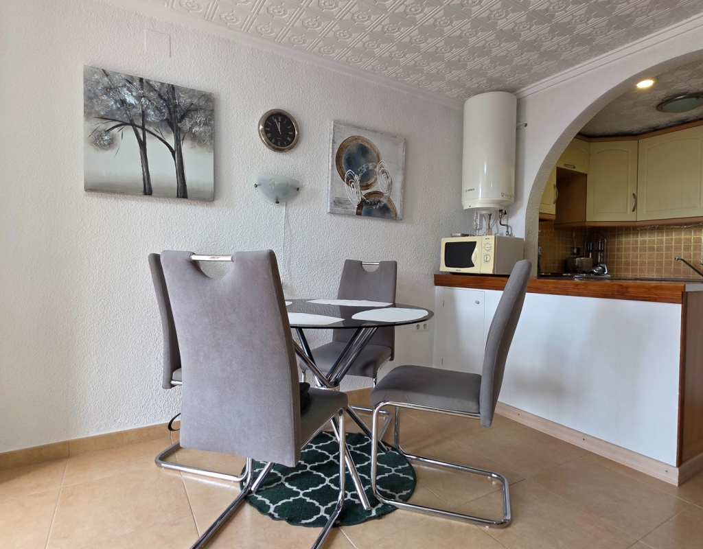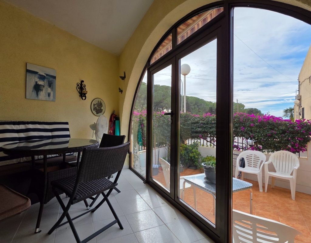 Here we have a lovely south facing, 2 bedroom terraced house for sale in the popular area of Buenavista, Guardamar del Segura, Alicante on the South Costa Blanca and only six hundred metres from the beach. The property has a constructed area of around 60 m² on two levels and on the outside you will find a sunny and spacious terrace lower terrace, a few steps up takes you to the main door of the house and on the right, as you enter you have another door where you enter the glazed porch/conservatory area. Inside you will find a spacious living room, an open plan kitchen and a half bathroom. The marble staircase leads you upstairs where you will find the family bathroom, and two double bedrooms with the master having access to sunny spacious balcony with views to Guardamar and the pine Forrest.