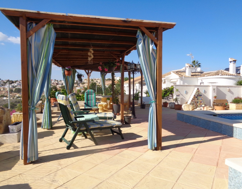 Villa zum Verkauf in der exklusiven Gegend von La Escuera. Das Anwesen verfügt über ein Grundstück von 1200 m² und 200 m² bebaute Fläche, auf der 3 Schlafzimmer mit Doppelbett, Einbauschränken, 2 Badezimmer, Küche, Waschküche, Esszimmer, Wintergarten mit Blick auf den Pool befinden. Weitere wichtige Merkmale dieser schönen Villa ist eine große Terrasse, Parkplatz, Garage und Keller. Die Immobilie wird möbliert verkauft und verfügt über weiße Ware.
