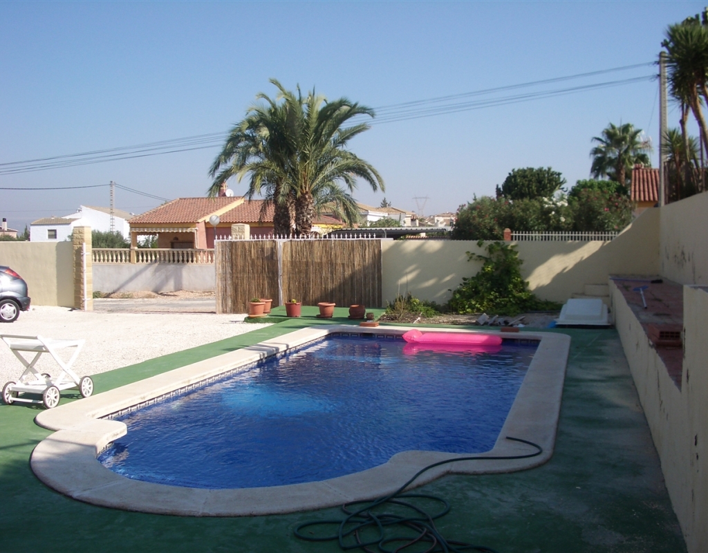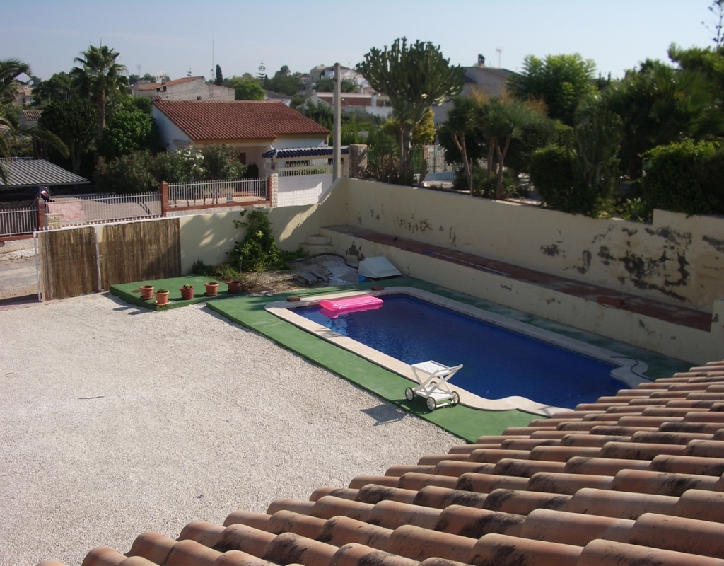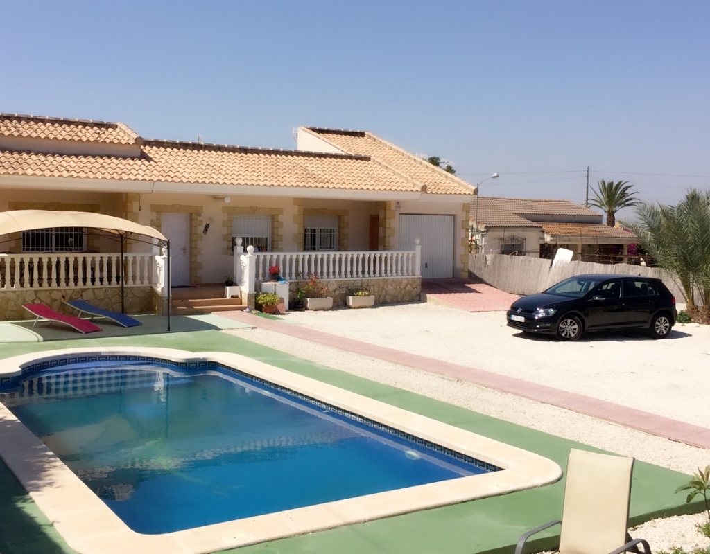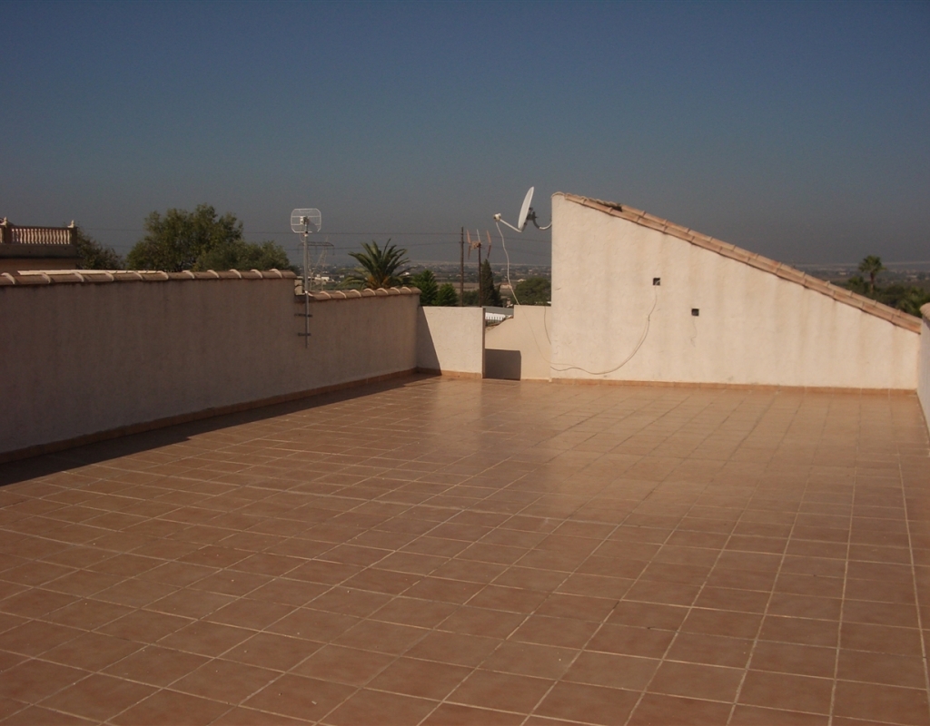 Villa zu verkaufen in El Oasis, La Marina Urbanisation. Das Anwesen verfügt über ein Grundstück von 1030 m ² und eine Wohnfläche von 220 m², in dem über 3 Schlafzimmer, 2 Bäder, ein großes Wohnzimmer und ein Esszimmer / Büro, das auch als weiteres Schlafzimmer genutzt werden könnte befinden. Es gibt auch eine Küche, Garage, privater Parkplatz, Terrasse, Terrasse und große Sonnenterrasse mit herrlicher Aussicht, und einen privaten Pool.