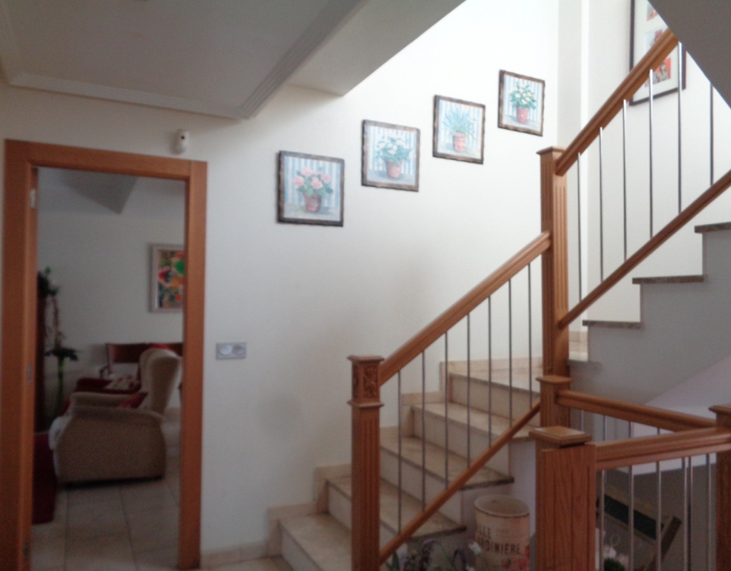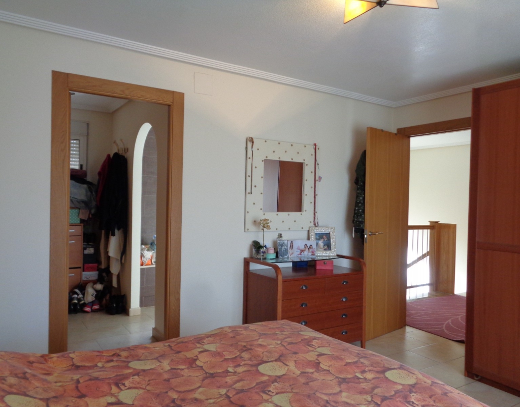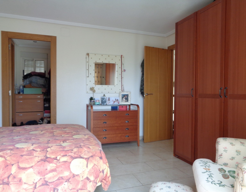 Die Marmor- und sehr helle Treppe führt in die obere Etage, wo Sie das Hauptschlafzimmer mit Ankleide, Bad en suite und privatem Balkon mit Blick auf das Meer nach Santa Pola, zwei weitere Doppelschlafzimmer und ein Familienbadezimmer finden. Das Haus wird möbliert verkauft und beinhaltet Geräte. Dieses große Haus liegt in der Nähe aller örtlichen Dienstleistungen, die die Stadt anbietet, wie Banken, eine Apotheke, einen Supermarkt, Geschäfte, Bars, Restaurants und vieles mehr. Der schöne Strand von El Pinet ist nur zehn Gehminuten entfernt. Es gibt eine regelmäßige Busverbindung zwischen Alicante und Cartagena, die durch Guardamar und Torrevieja fährt. Der internationale Flughafen Alicante-Elche ist nur 20 Autominuten entfernt.