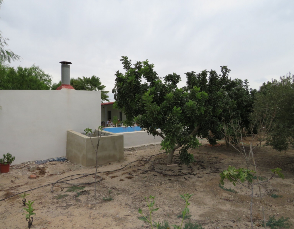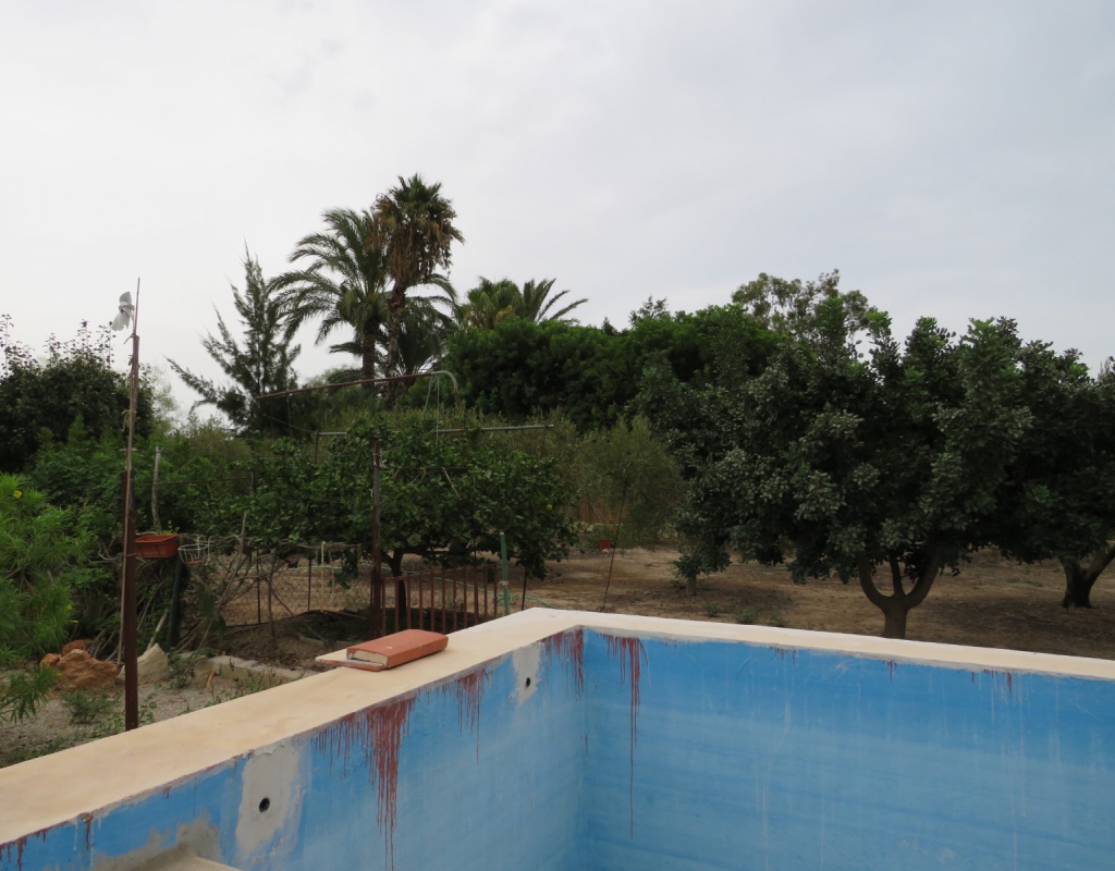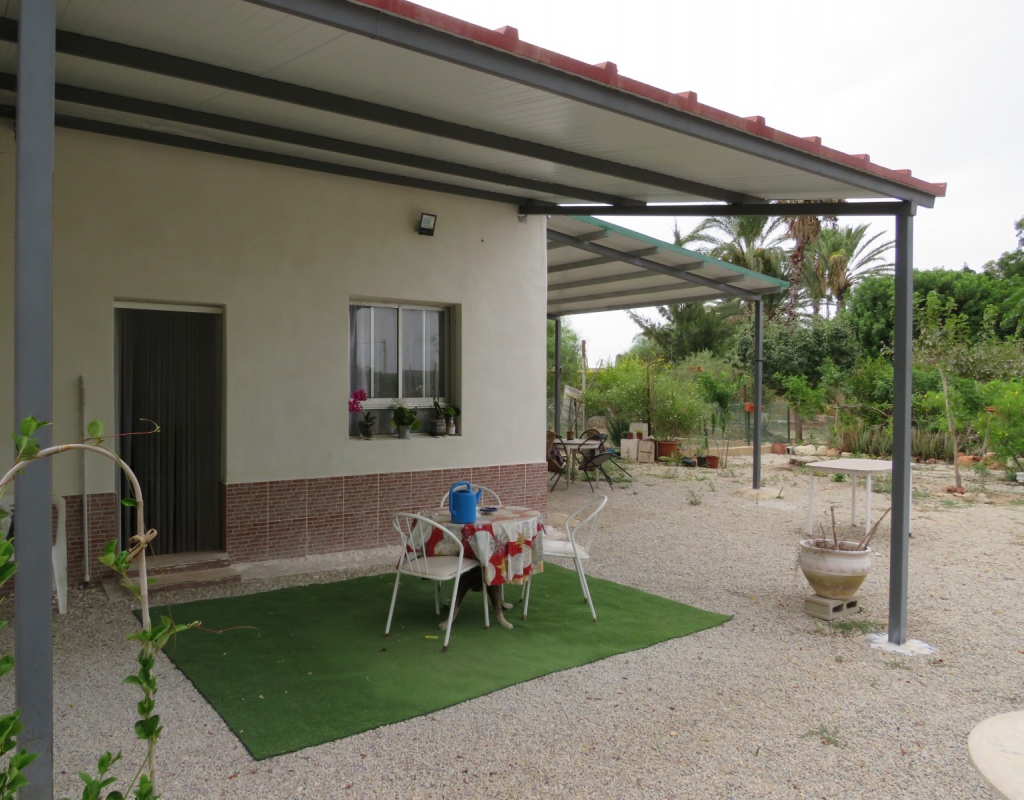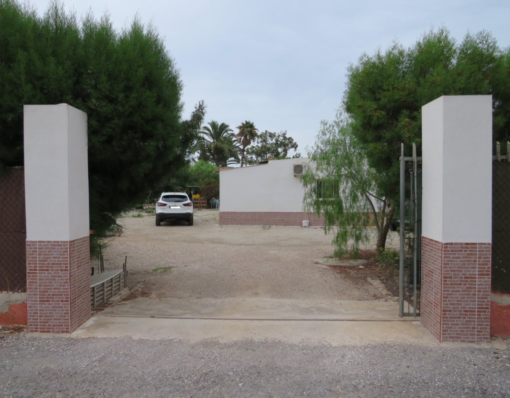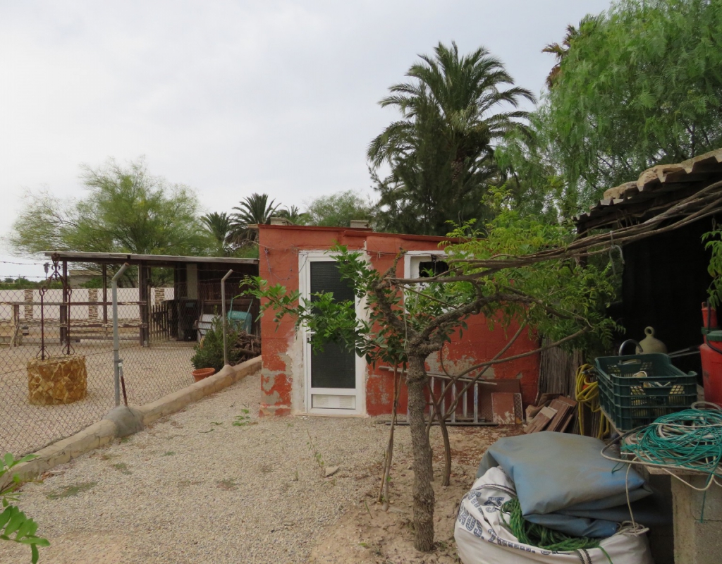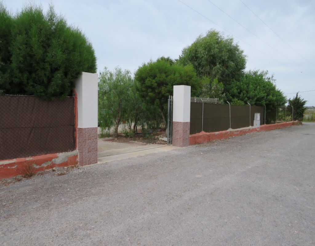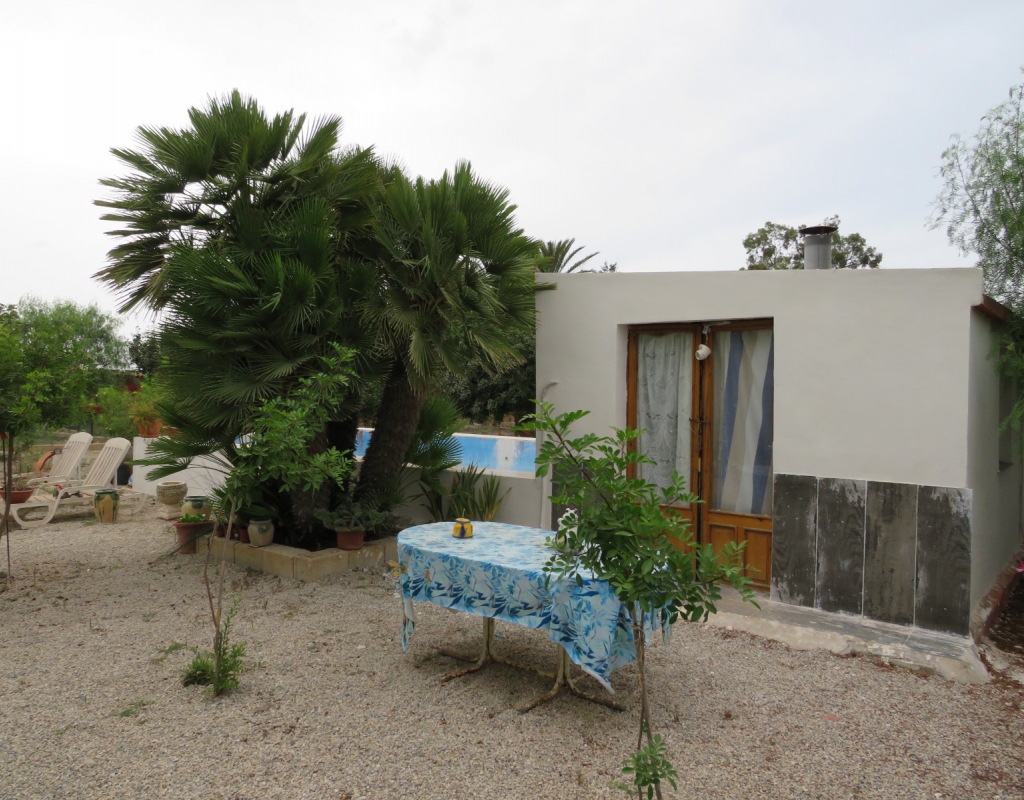Hier haben wir eine "Casa de Campo" zum Verkauf in Daimes, Elche. Das Anwesen befindet sich auf einem Grundstück von 2.000 m² und verfügt über einen bewachten Eingang. Das Haus hat eine bebaute Fläche von ca. 75 m², in der Sie ein großes Wohnzimmer mit Klimaanlage warm/kalt und einem Holzofen finden. Es gibt zwei Schlafzimmer mit Doppelbett, ein großes Badezimmer mit Dusche, eine Küche und einen Hauswirtschaftsraum. Auf dem Grundstück befindet sich ein Schuppen und ein Sommerküchenbereich mit angeschlossenem Pool. Das Anwesen verfügt auch über Obstbäume und Olivenbäume.