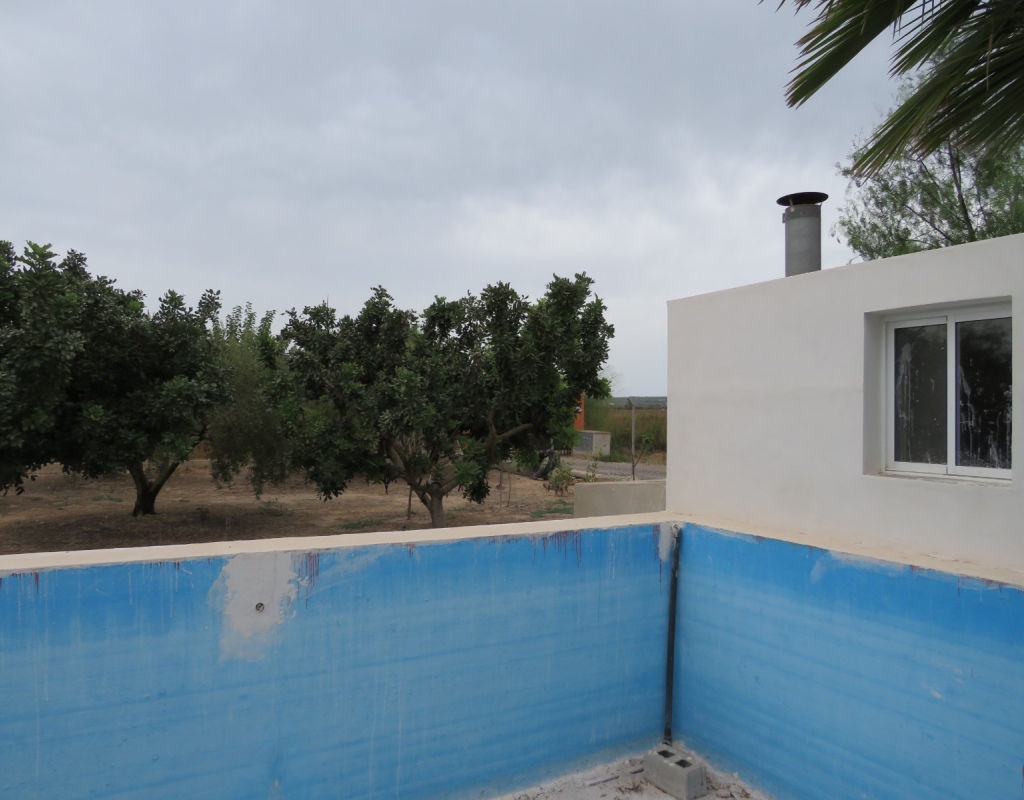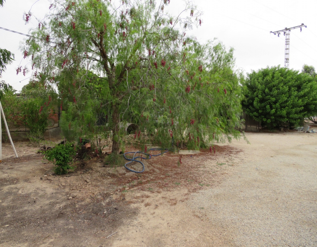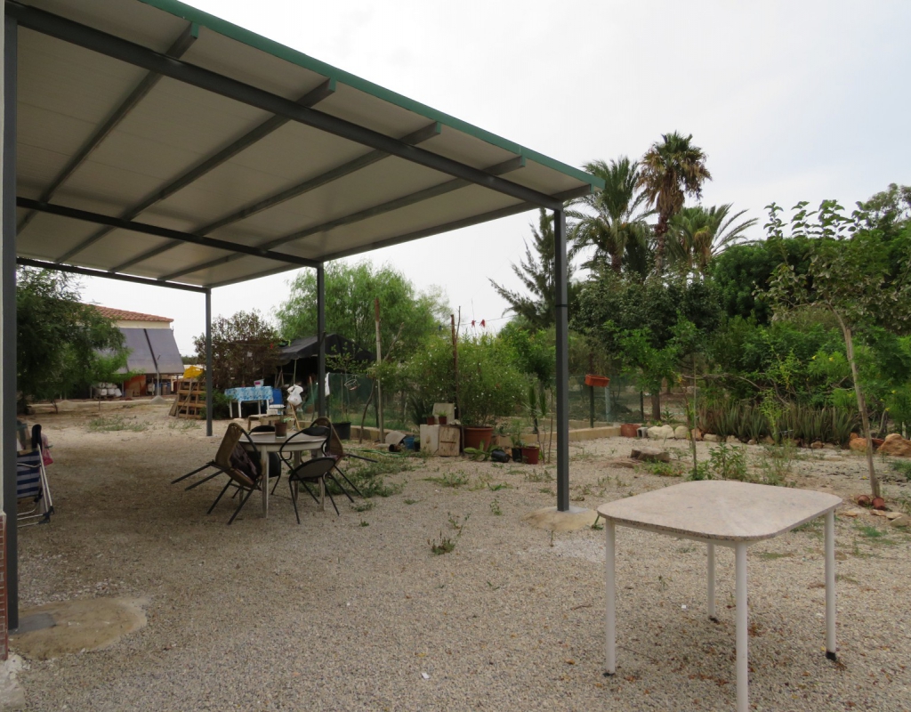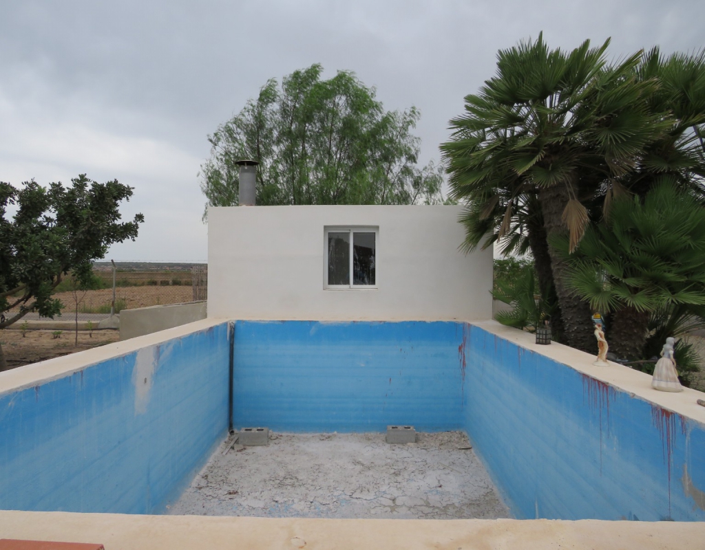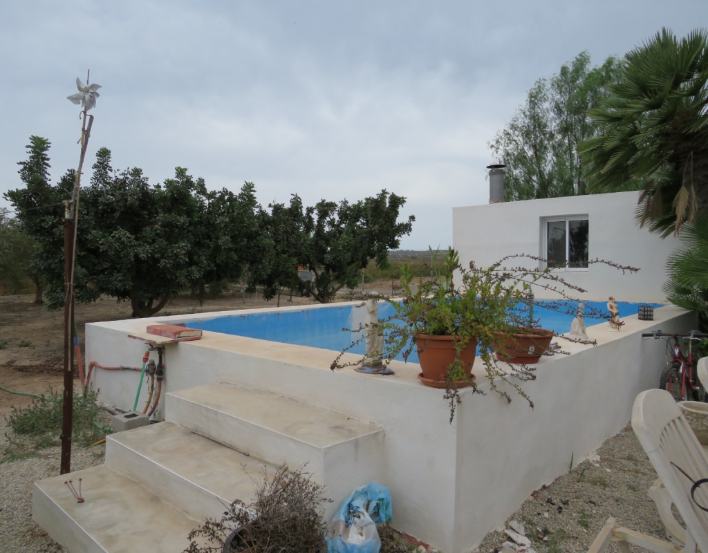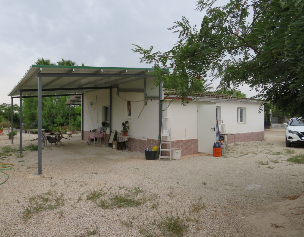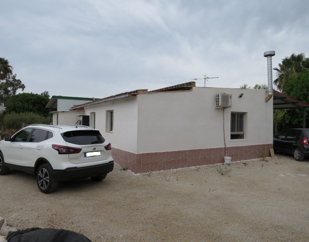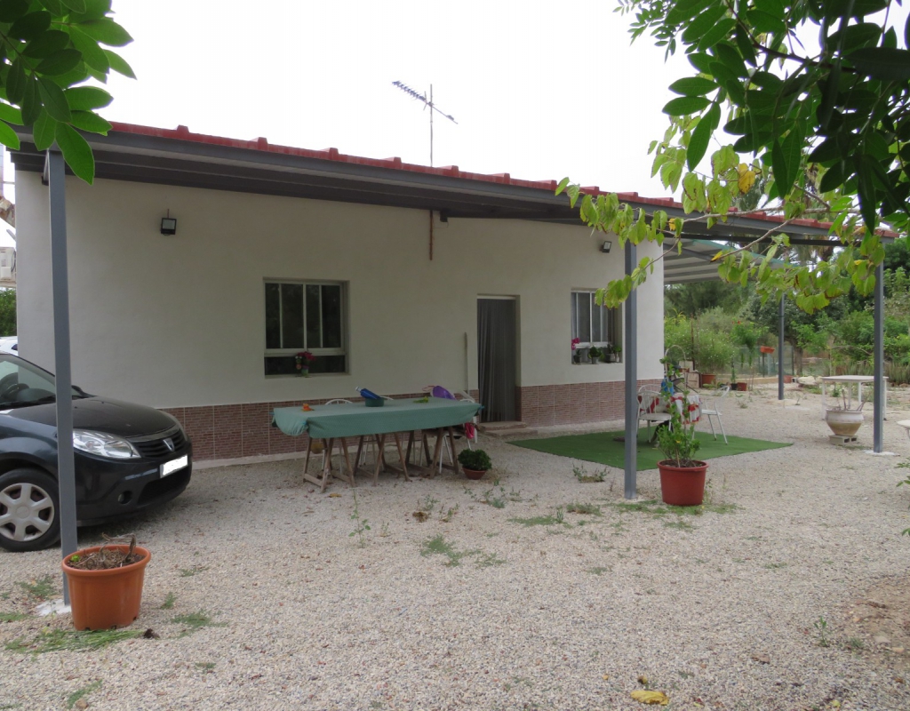 Hier haben wir eine "Casa de Campo" zum Verkauf in Daimes, Elche. Das Anwesen befindet sich auf einem Grundstück von 2.000 m² und verfügt über einen bewachten Eingang. Das Haus hat eine bebaute Fläche von ca. 75 m², in der Sie ein großes Wohnzimmer mit Klimaanlage warm/kalt und einem Holzofen finden. Es gibt zwei Schlafzimmer mit Doppelbett, ein großes Badezimmer mit Dusche, eine Küche und einen Hauswirtschaftsraum. Auf dem Grundstück befindet sich ein Schuppen und ein Sommerküchenbereich mit angeschlossenem Pool. Das Anwesen verfügt auch über Obstbäume und Olivenbäume.