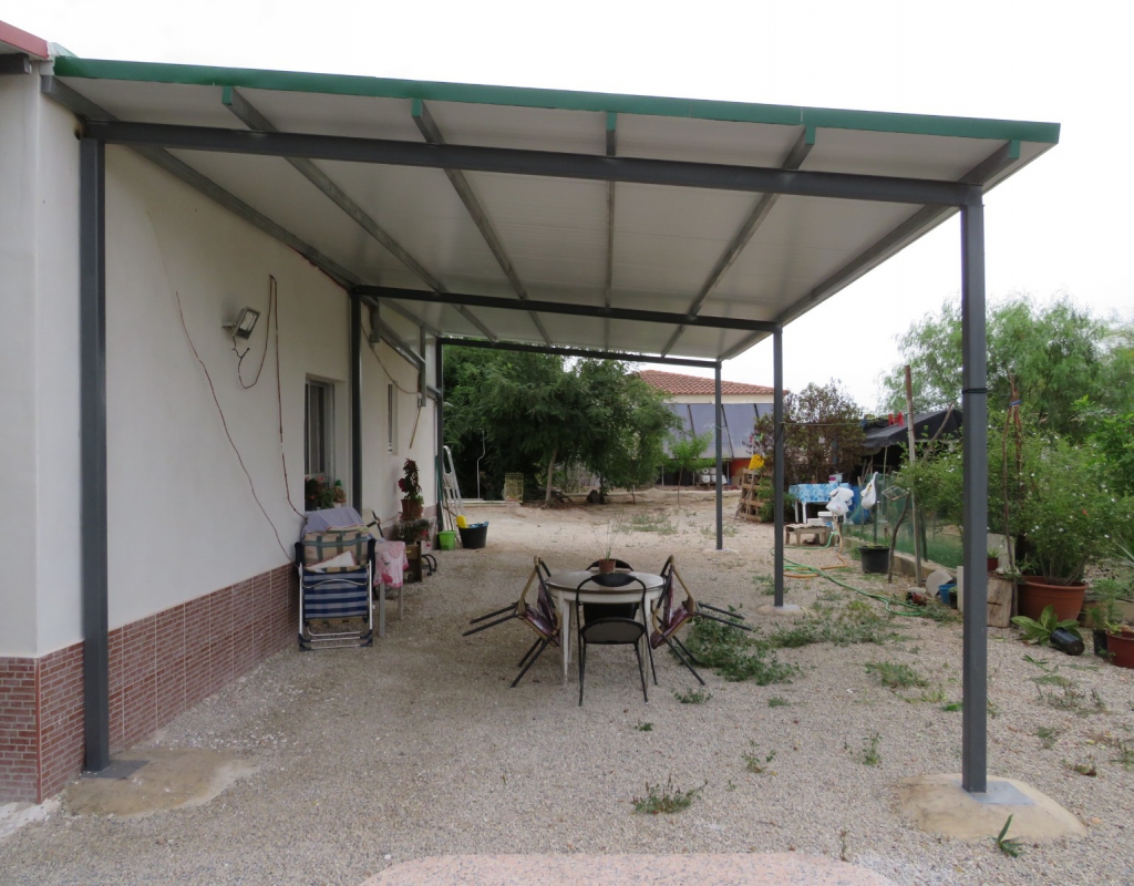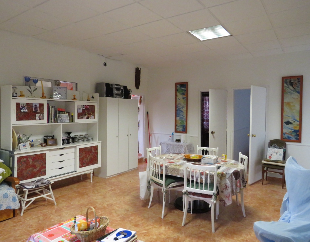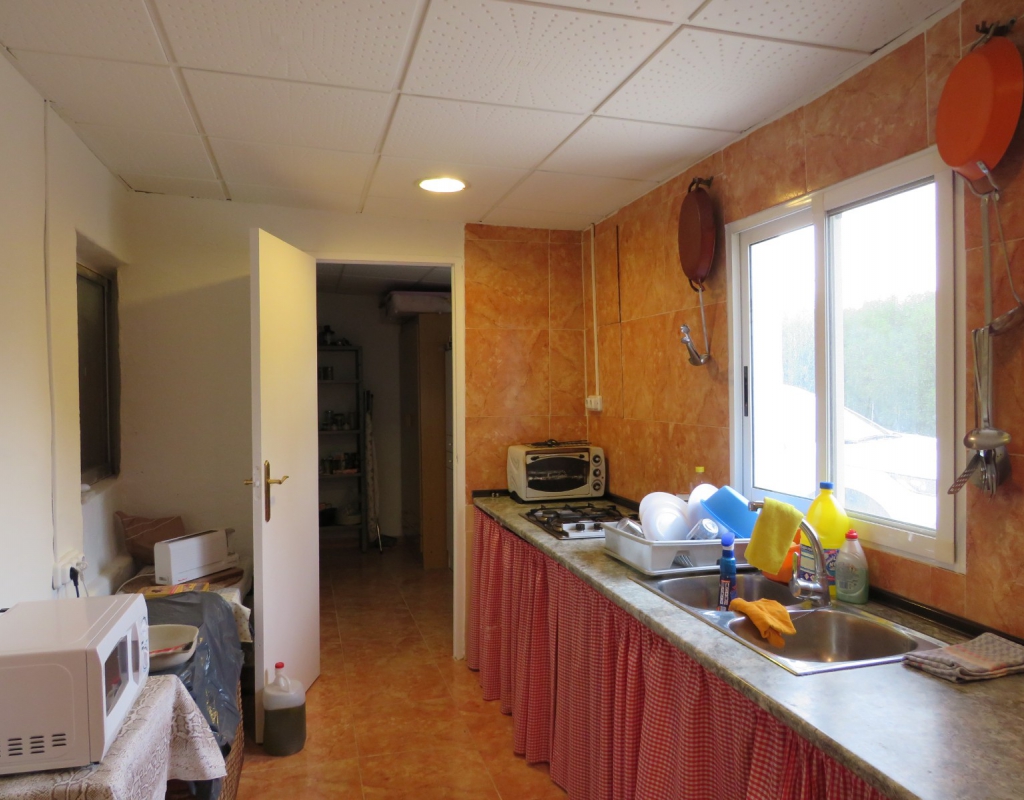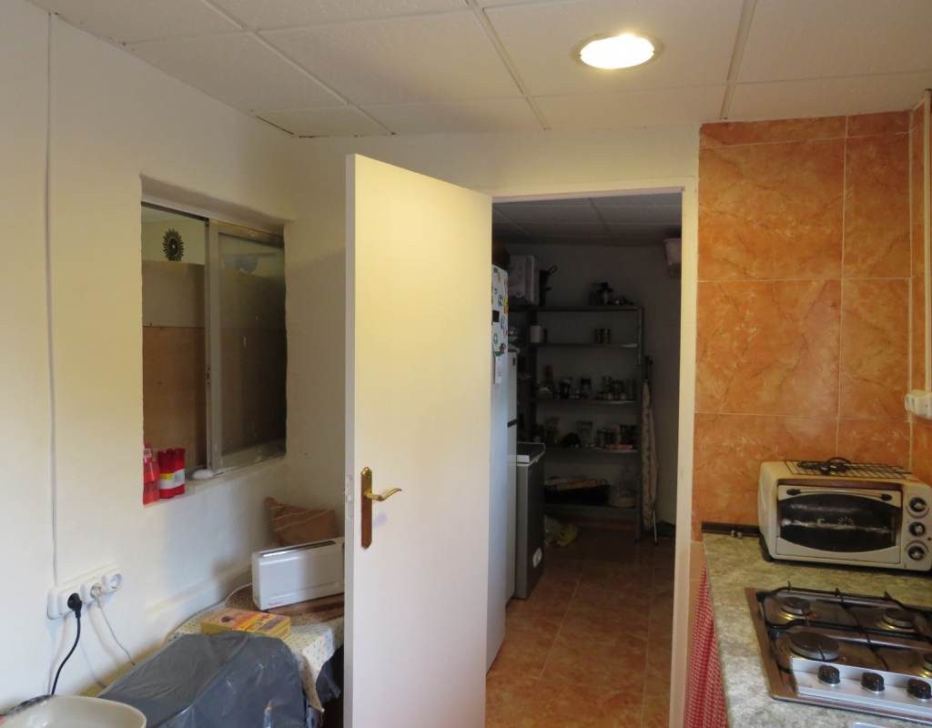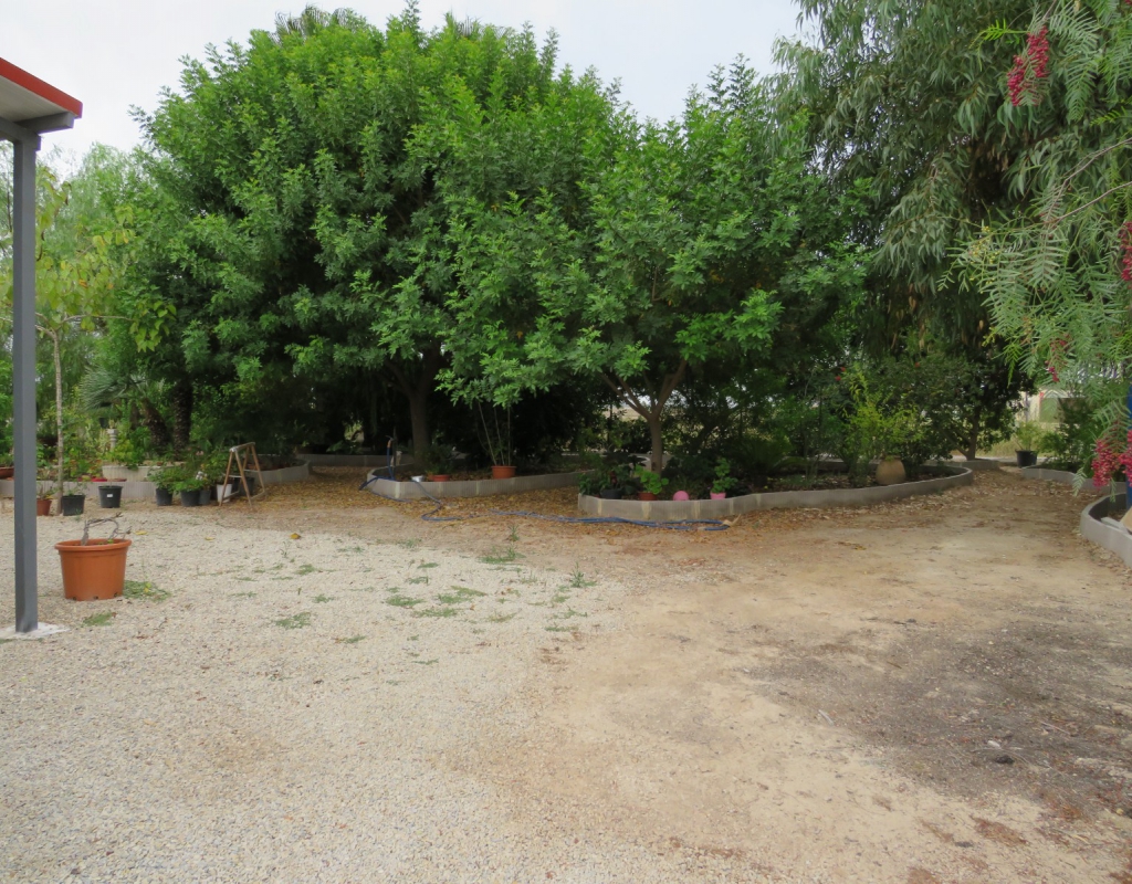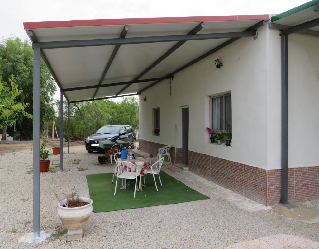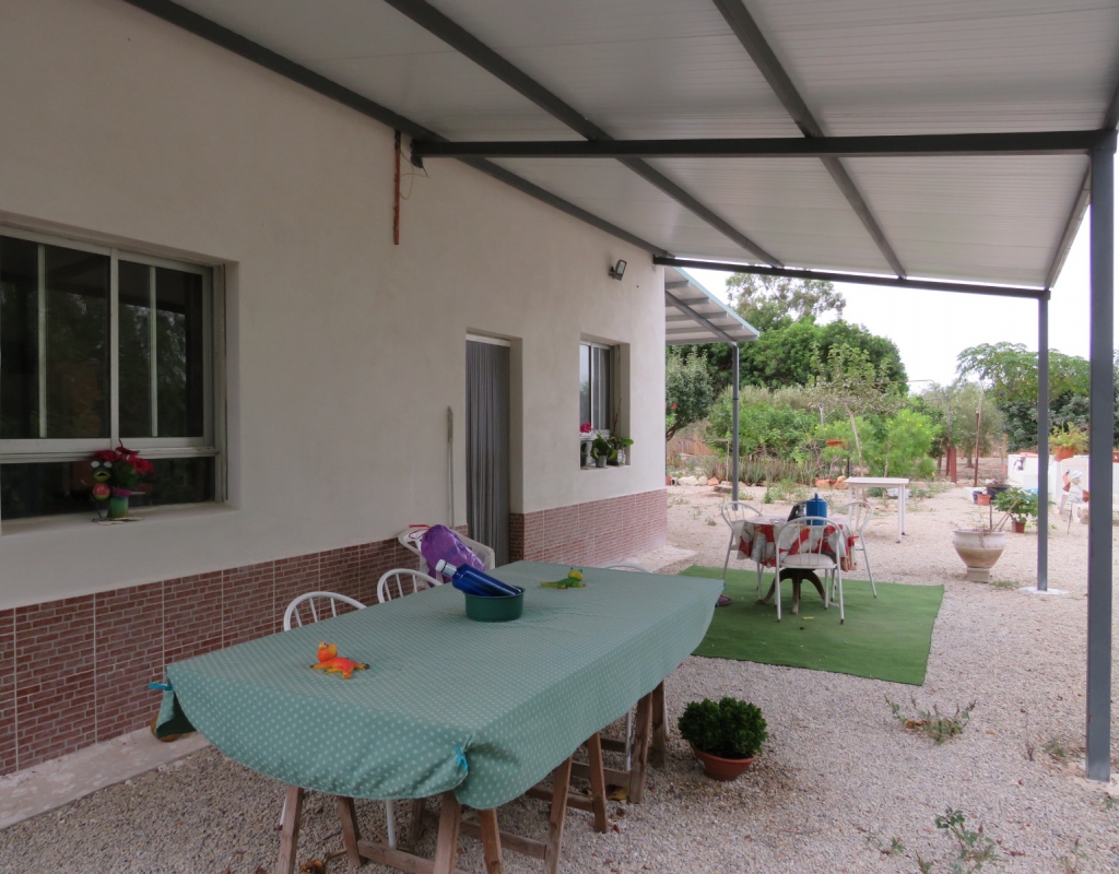 Hier haben wir eine "Casa de Campo" zum Verkauf in Daimes, Elche. Das Anwesen befindet sich auf einem Grundstück von 2.000 m² und verfügt über einen bewachten Eingang. Das Haus hat eine bebaute Fläche von ca. 75 m², in der Sie ein großes Wohnzimmer mit Klimaanlage warm/kalt und einem Holzofen finden. Es gibt zwei Schlafzimmer mit Doppelbett, ein großes Badezimmer mit Dusche, eine Küche und einen Hauswirtschaftsraum. Auf dem Grundstück befindet sich ein Schuppen und ein Sommerküchenbereich mit angeschlossenem Pool. Das Anwesen verfügt auch über Obstbäume und Olivenbäume.