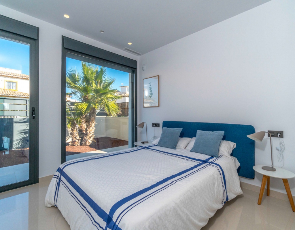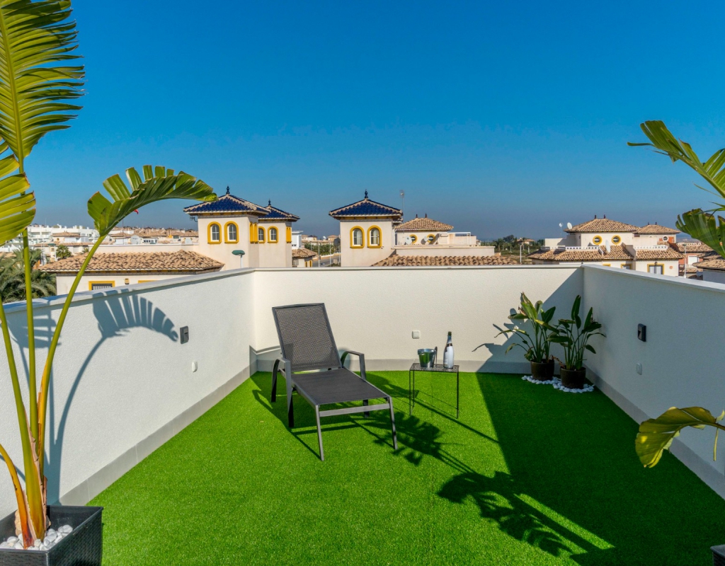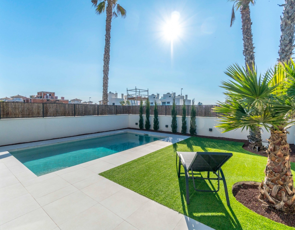 Hier haben wir neu gebaute unabhängige Villen zum Verkauf in der schönen Gegend von El Pinet in der Nähe des Strandes und des Dorfes La Marina. Es sind noch 2 Villen übrig, Nummer 9 und 10, beide mit einem Verkaufspreis von 449.000 € und einer bebauten Größe von 242 m².