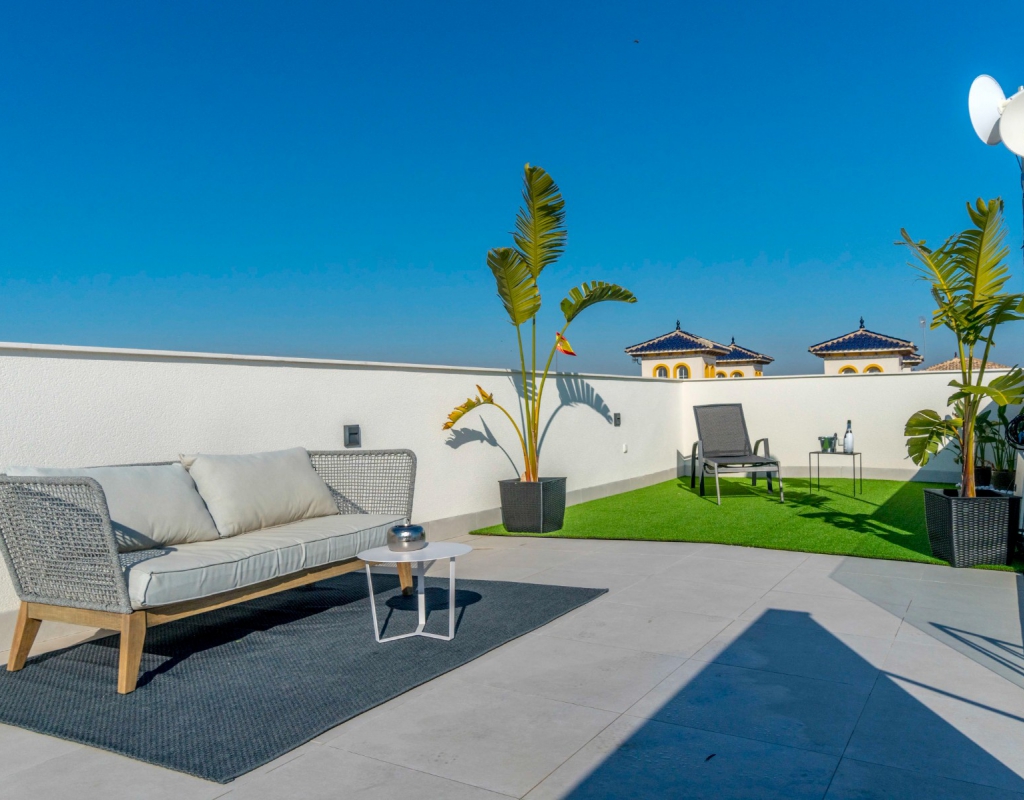 Dieses fantastische Anwesen liegt etwas mehr als 600 Meter vom Strand und nur 1 Kilometer vom Dorf La Marina entfernt, das viele Annehmlichkeiten wie Geschäfte, Bars und Restaurants, eine Apotheke, Banken und vieles mehr bietet. Die Immobilie wird mit Küchenmöbeln und Elektrogeräten verkauft, Badezimmerarmaturen und -möbel sind ebenfalls enthalten. Es gibt auch ein riesiges privates Solarium mit toller Aussicht. Der internationale Flughafen Alicante ist nur 20 Autominuten entfernt und das Quesada Golf Resort ist nur 10 Kilometer entfernt.