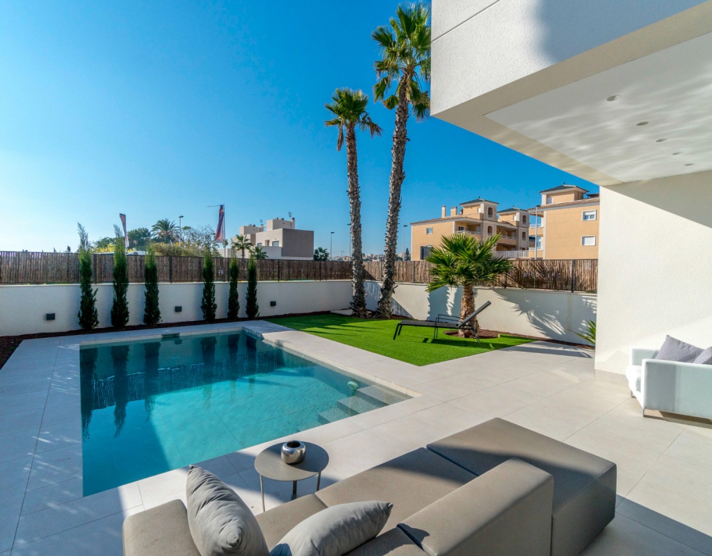 Neubauvillen in Südlage zum Verkauf in der Urbanisation El Pinet Elche Alicante an der Südküste der Costa Blanca.