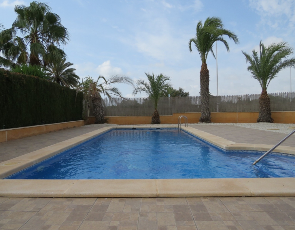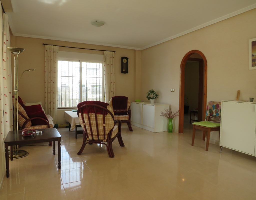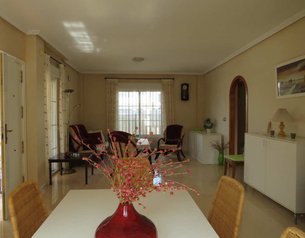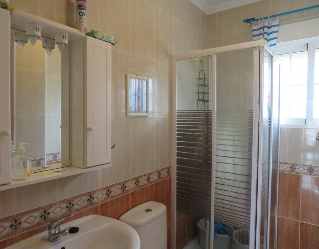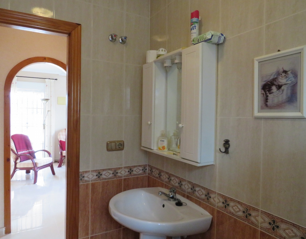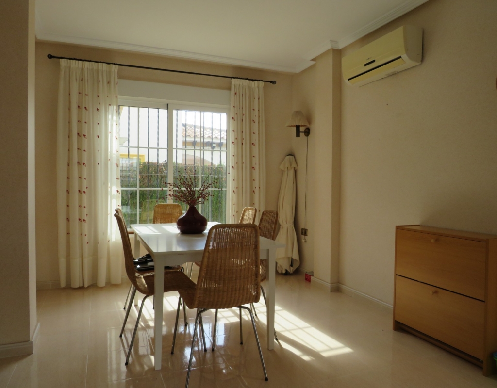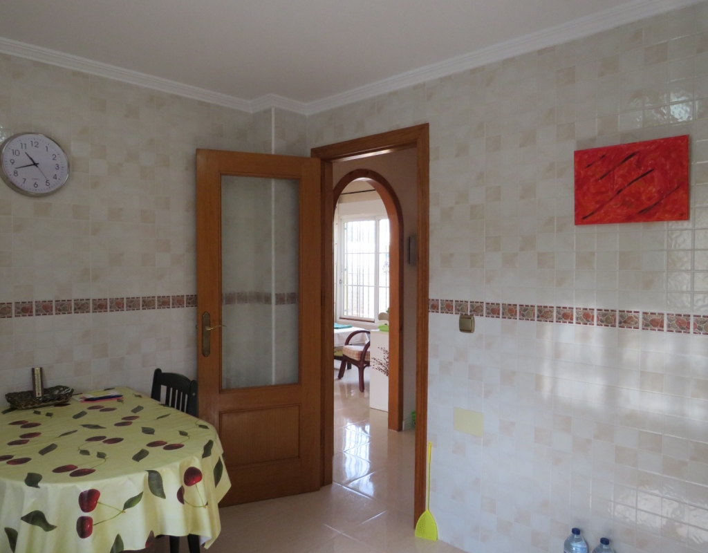 Hier haben wir eine freistehende Eckvilla zum Verkauf in El Pinet, in der Nähe der Stadt La Marina in Alicante. Das Haus hat eine bebaute Fläche von ca. 128 m² und steht auf einem Grundstück von ca. 375 m². Das Haus hat eine große Veranda mit Blick auf den Garten-/Poolbereich. Im Inneren finden Sie ein geräumiges und helles Wohn-/Esszimmer, ein geräumiges Schlafzimmer mit Doppelbett, ein Badezimmer mit Dusche und eine geräumige separate Küche mit Speisekammer.