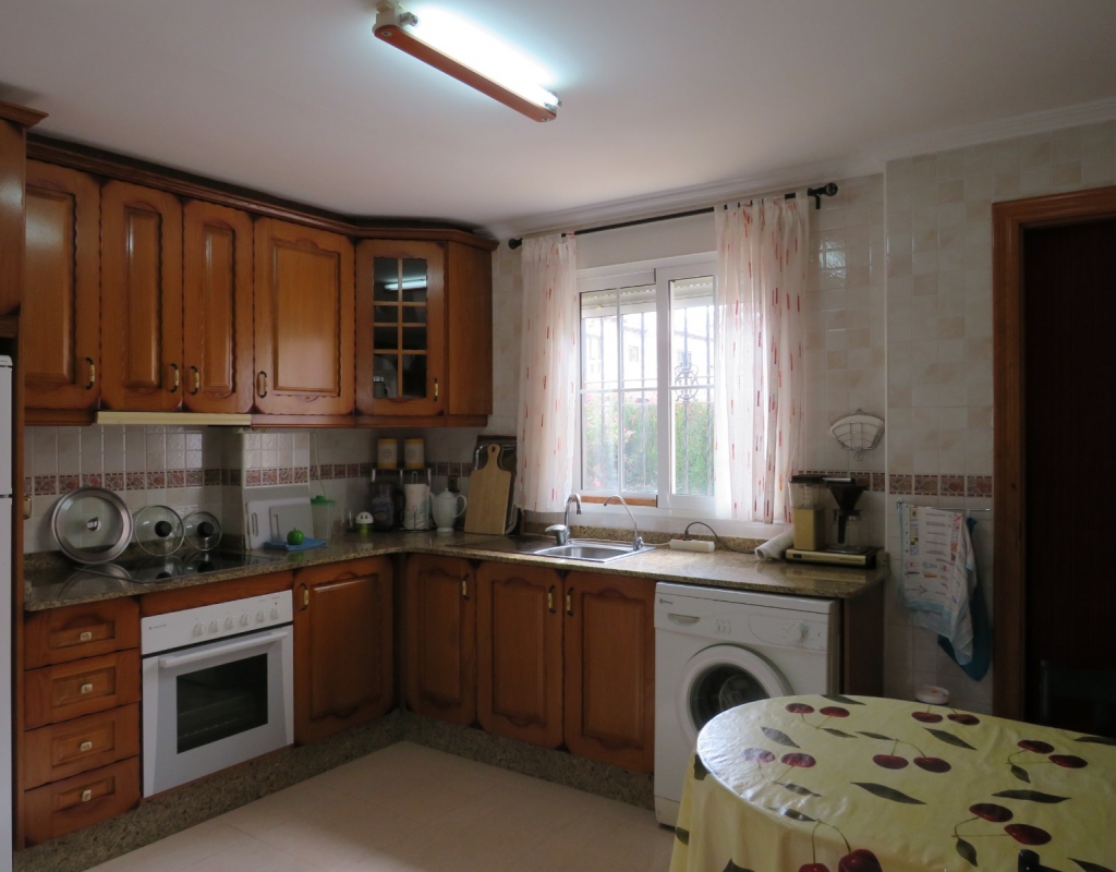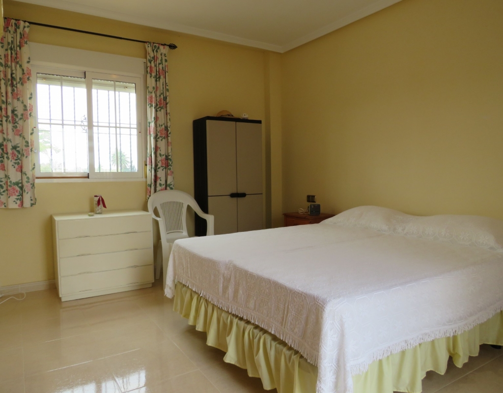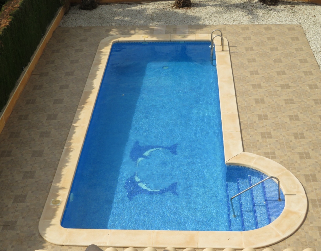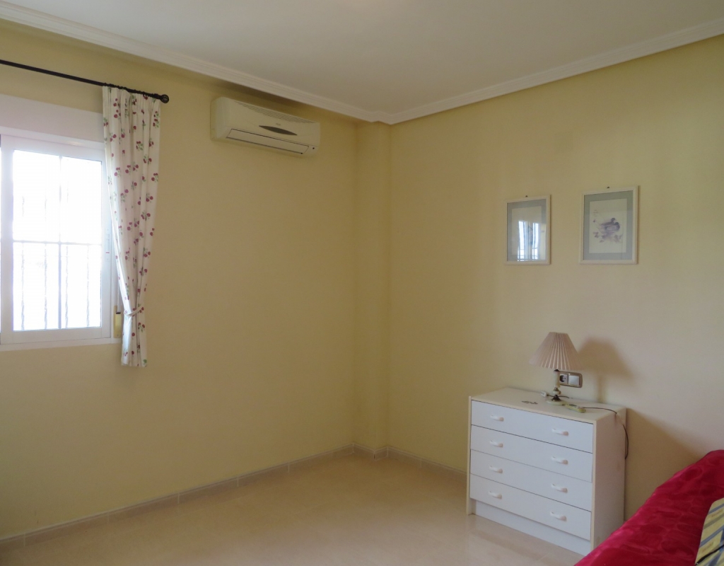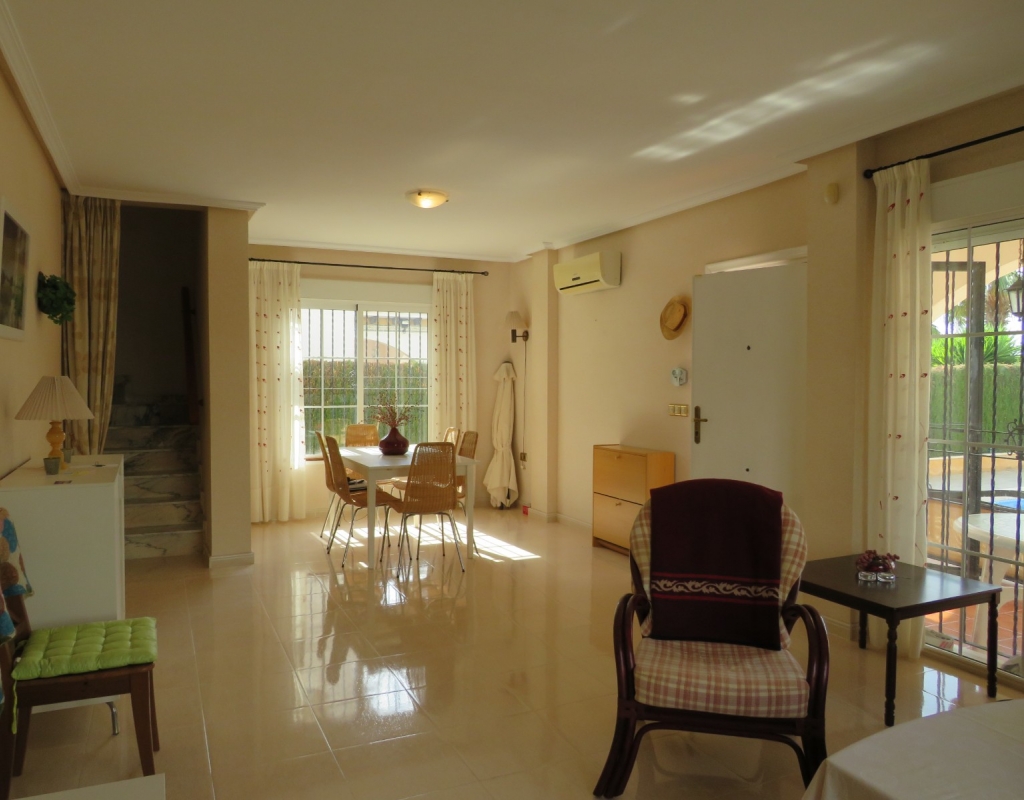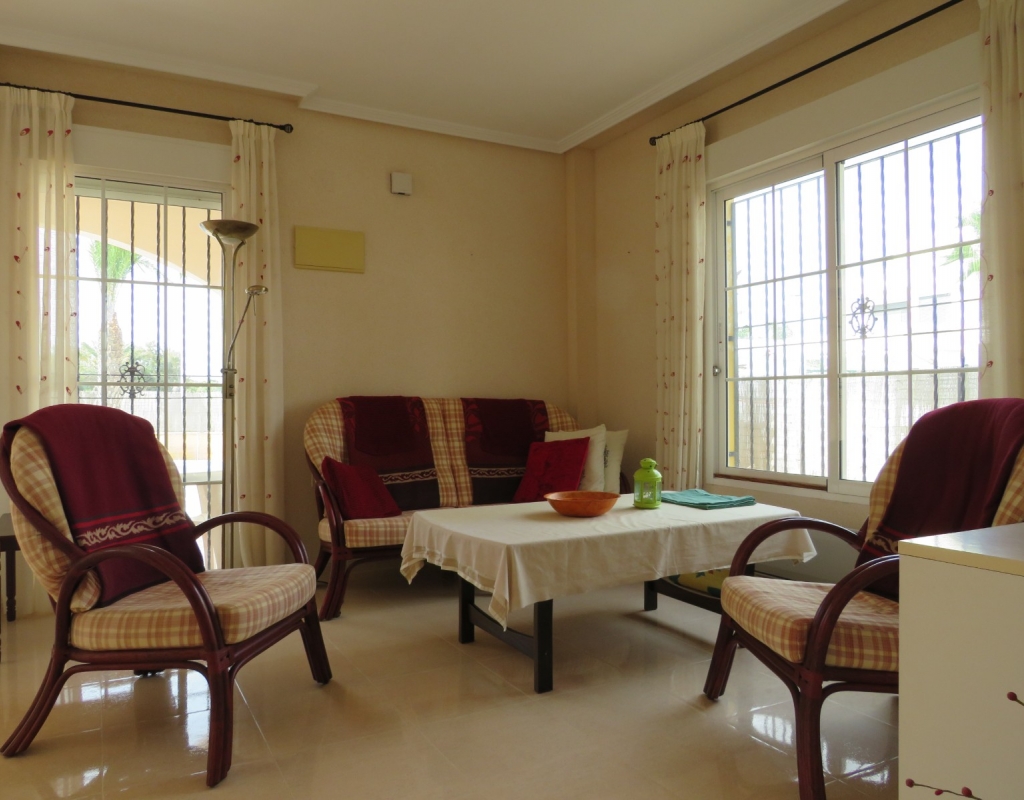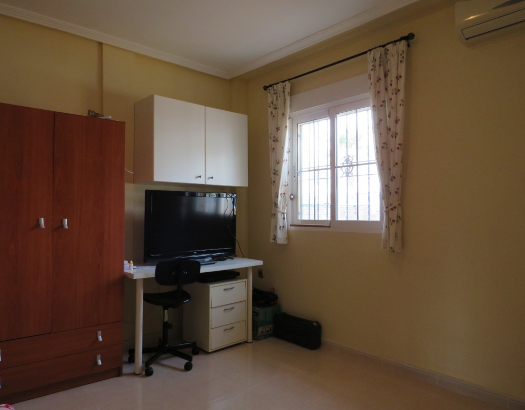 Hier haben wir eine freistehende Eckvilla zum Verkauf in El Pinet, in der Nähe der Stadt La Marina in Alicante. Das Haus hat eine bebaute Fläche von ca. 128 m² und steht auf einem Grundstück von ca. 375 m². Das Haus hat eine große Veranda mit Blick auf den Garten-/Poolbereich. Im Inneren finden Sie ein geräumiges und helles Wohn-/Esszimmer, ein geräumiges Schlafzimmer mit Doppelbett, ein Badezimmer mit Dusche und eine geräumige separate Küche mit Speisekammer.