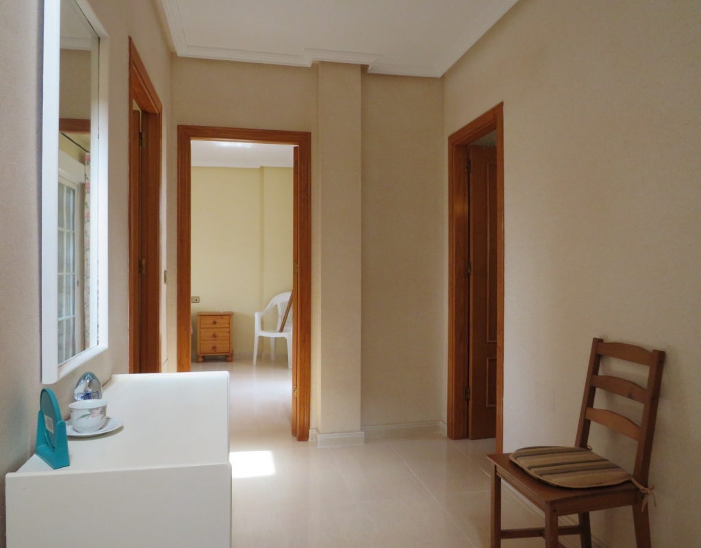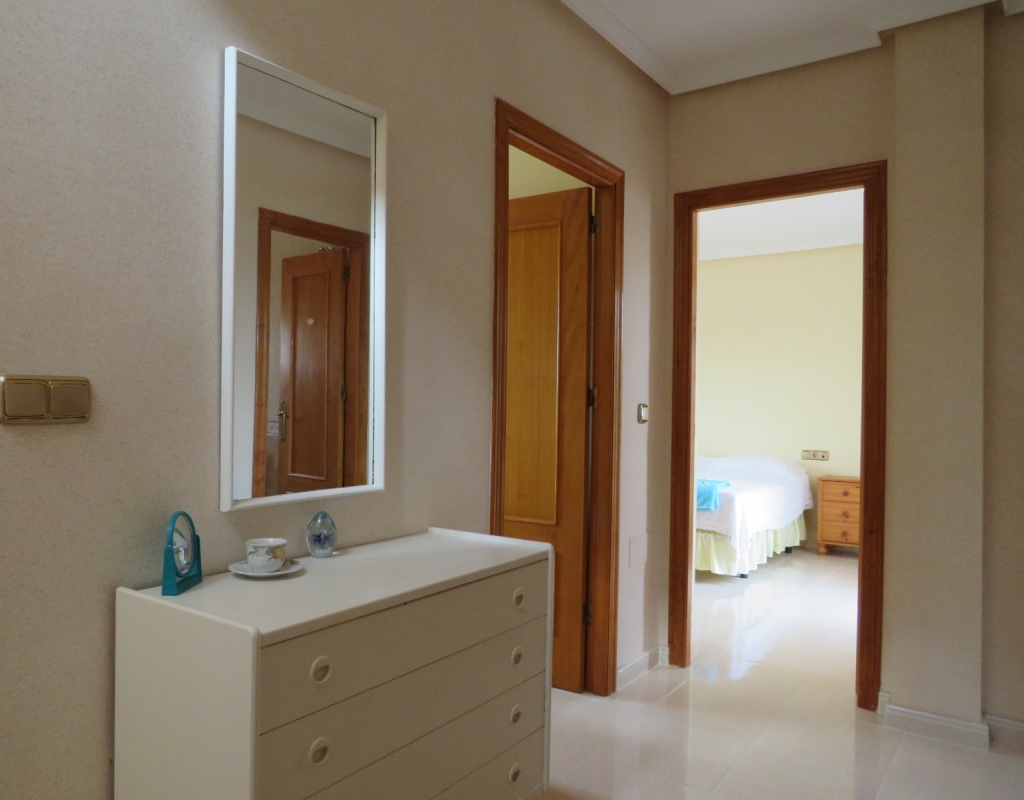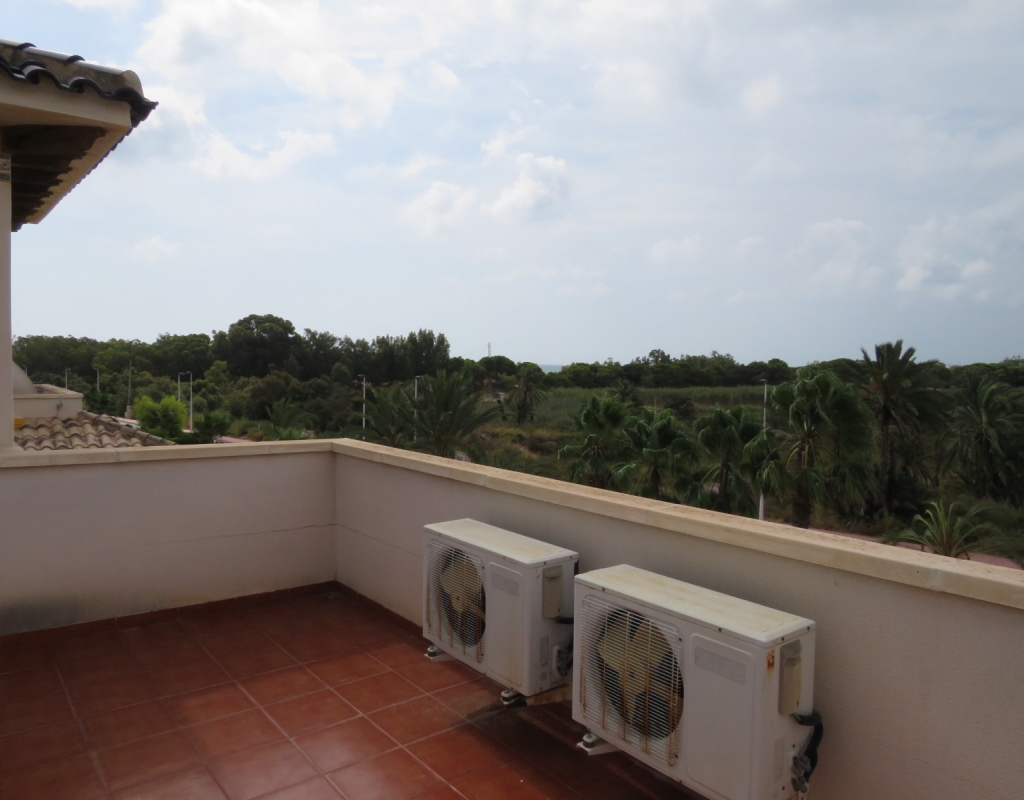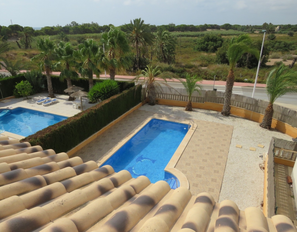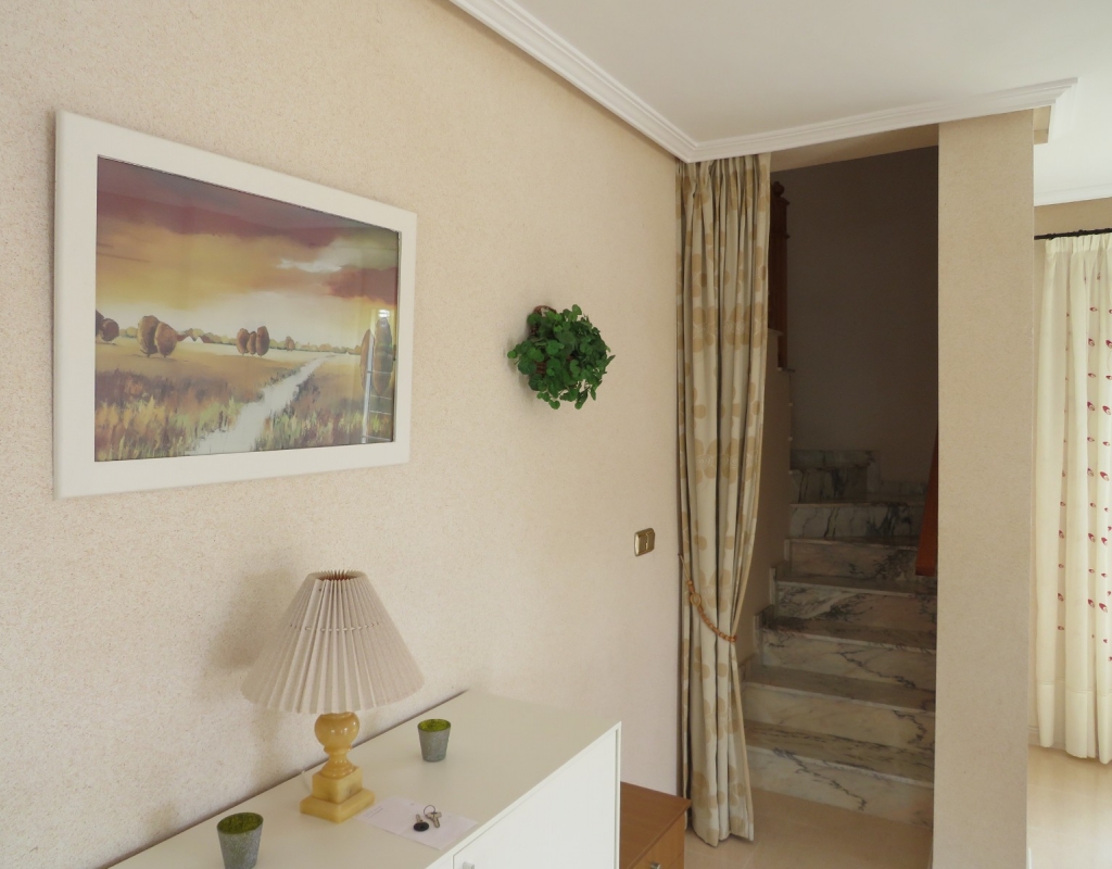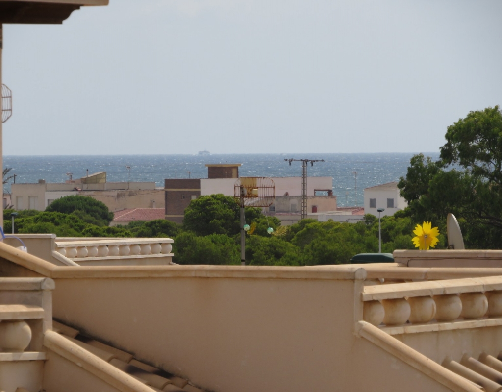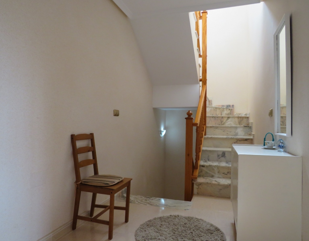 Die Marmortreppe führt Sie in das Erdgeschoss, wo Sie einen breiten Treppenabsatz finden, der zu einem zweiten Schlafzimmer mit Einbauschränken, dem Familienbadezimmer und dem geräumigen Hauptschlafzimmer, ebenfalls mit Einbauschränken und Zugang zu einem großen privaten Balkon, führt. Eine zweite Marmortreppe führt Sie zum geräumigen privaten Solarium mit herrlicher Aussicht. Diese Immobilie wird möbliert verkauft und beinhaltet Haushaltsgeräte. Es liegt etwa 500 Meter vom schönen Strand von El Pinet entfernt, der auch eine Vielzahl von Restaurants buchstäblich direkt am Strand bietet. Die Stadt La Marina ist nur 1 km entfernt und bietet viele Dienstleistungen wie Geschäfte, Bars, Restaurants, Banken, eine Apotheke und vieles mehr. Der internationale Flughafen Alicante ist nur 20 Autominuten entfernt.