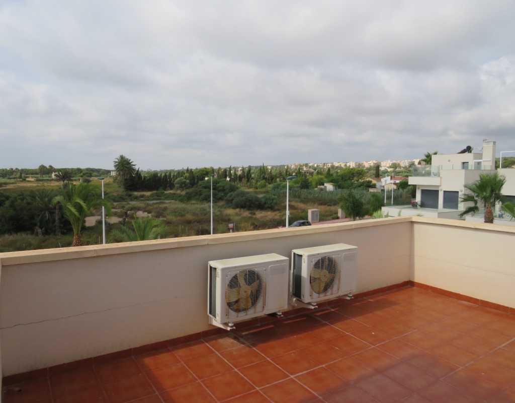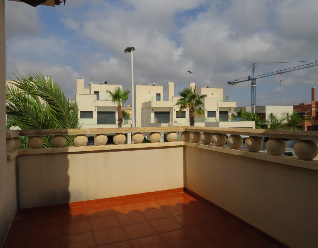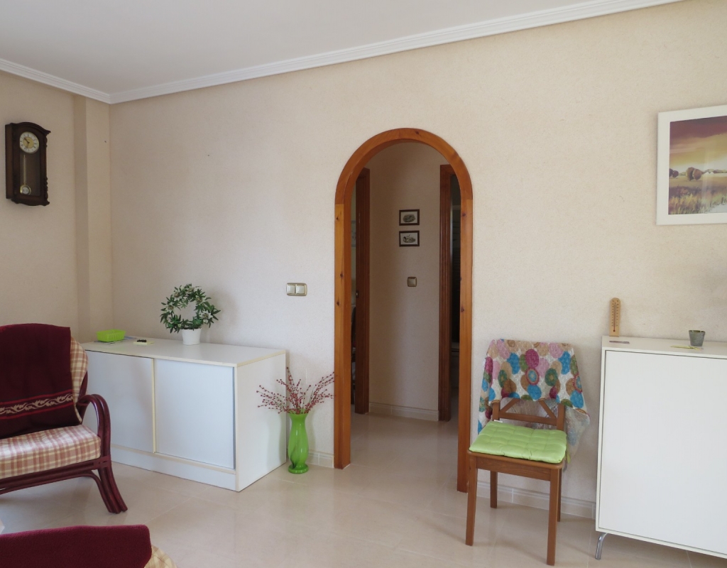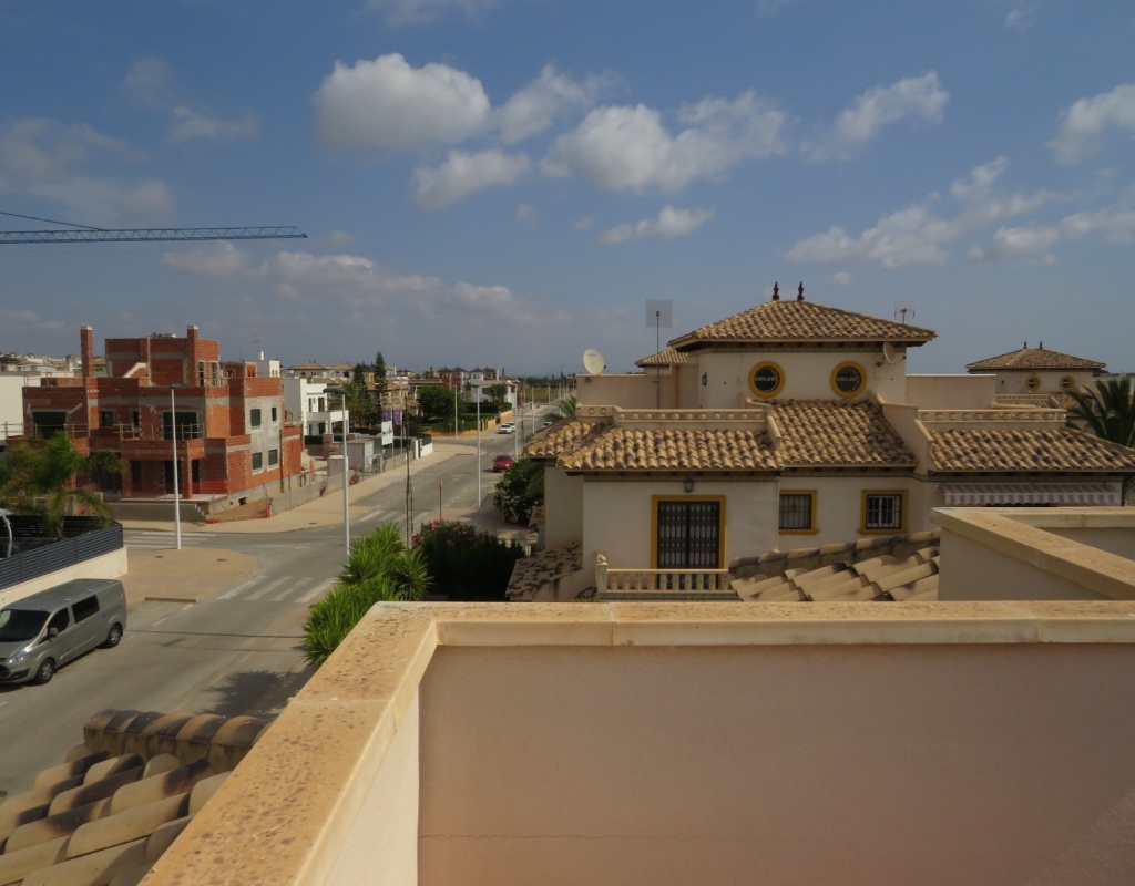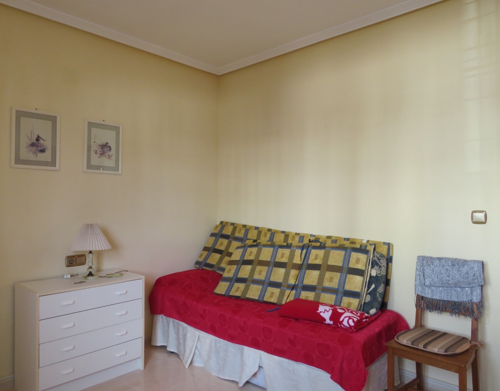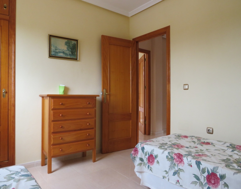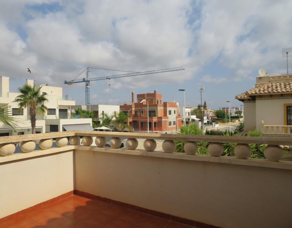 Die Marmortreppe führt Sie in das Erdgeschoss, wo Sie einen breiten Treppenabsatz finden, der zu einem zweiten Schlafzimmer mit Einbauschränken, dem Familienbadezimmer und dem geräumigen Hauptschlafzimmer, ebenfalls mit Einbauschränken und Zugang zu einem großen privaten Balkon, führt. Eine zweite Marmortreppe führt Sie zum geräumigen privaten Solarium mit herrlicher Aussicht. Diese Immobilie wird möbliert verkauft und beinhaltet Haushaltsgeräte. Es liegt etwa 500 Meter vom schönen Strand von El Pinet entfernt, der auch eine Vielzahl von Restaurants buchstäblich direkt am Strand bietet. Die Stadt La Marina ist nur 1 km entfernt und bietet viele Dienstleistungen wie Geschäfte, Bars, Restaurants, Banken, eine Apotheke und vieles mehr. Der internationale Flughafen Alicante ist nur 20 Autominuten entfernt.