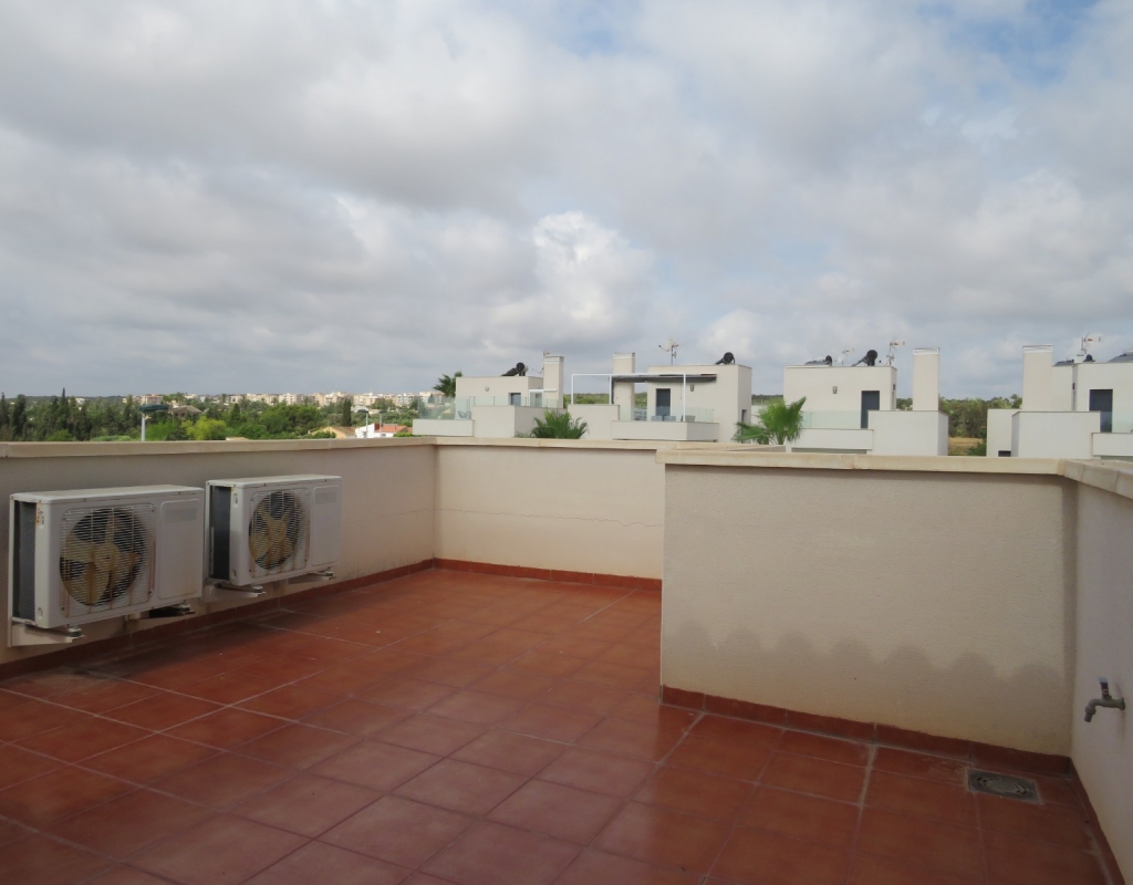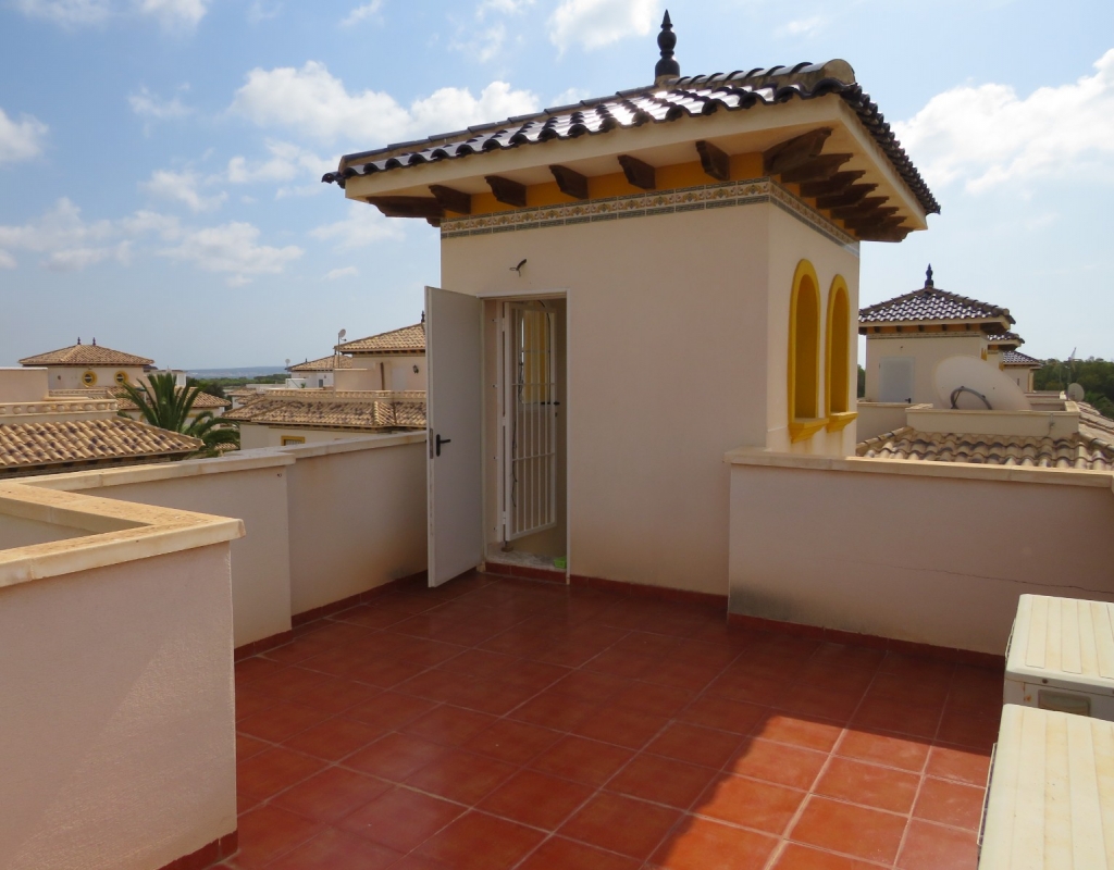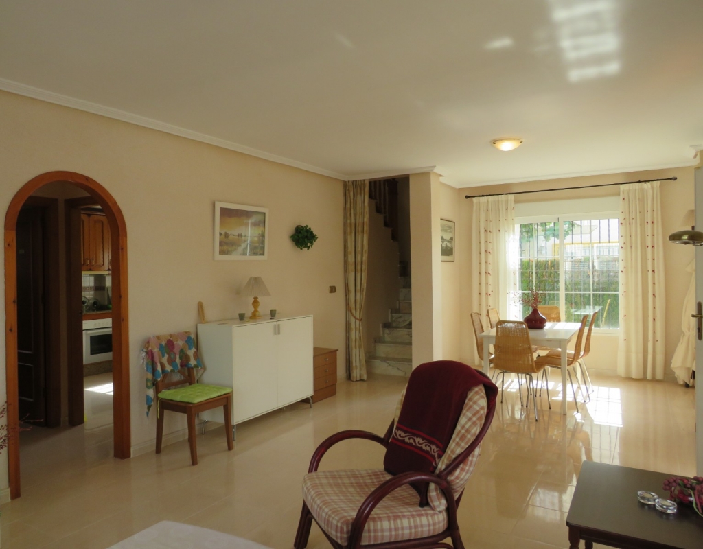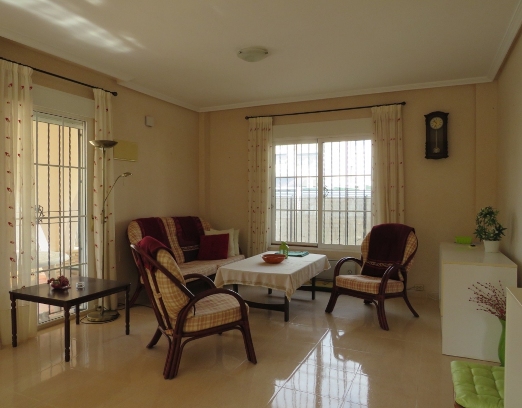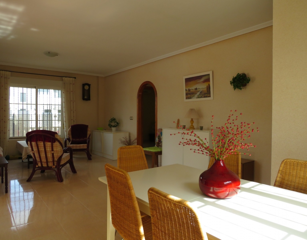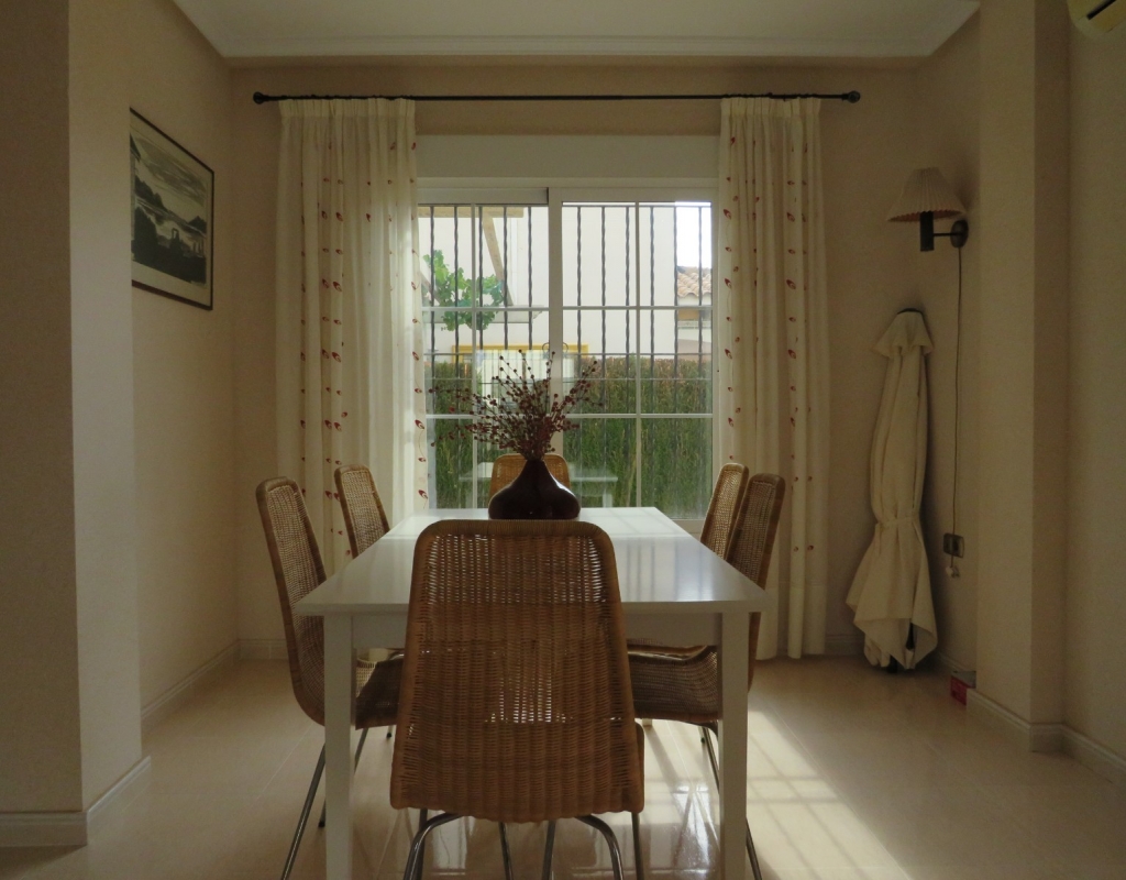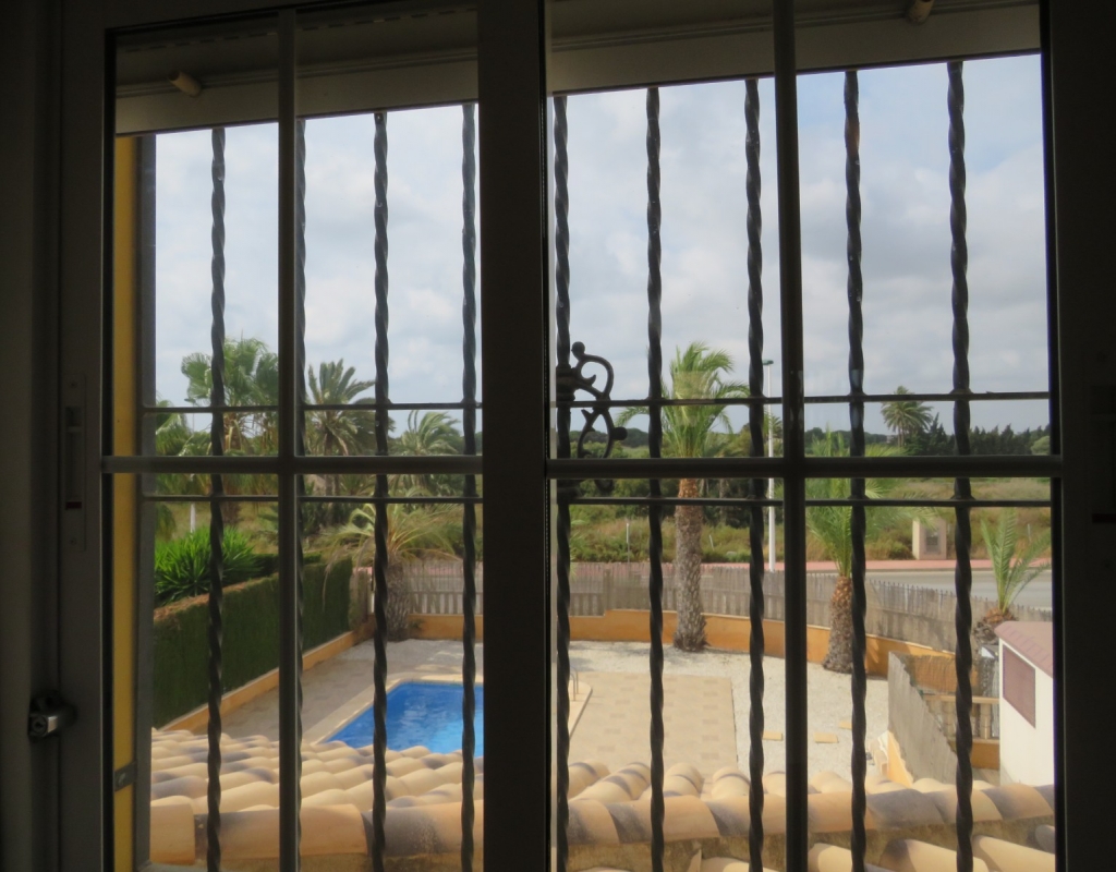 Die Marmortreppe führt Sie in das Erdgeschoss, wo Sie einen breiten Treppenabsatz finden, der zu einem zweiten Schlafzimmer mit Einbauschränken, dem Familienbadezimmer und dem geräumigen Hauptschlafzimmer, ebenfalls mit Einbauschränken und Zugang zu einem großen privaten Balkon, führt. Eine zweite Marmortreppe führt Sie zum geräumigen privaten Solarium mit herrlicher Aussicht. Diese Immobilie wird möbliert verkauft und beinhaltet Haushaltsgeräte. Es liegt etwa 500 Meter vom schönen Strand von El Pinet entfernt, der auch eine Vielzahl von Restaurants buchstäblich direkt am Strand bietet. Die Stadt La Marina ist nur 1 km entfernt und bietet viele Dienstleistungen wie Geschäfte, Bars, Restaurants, Banken, eine Apotheke und vieles mehr. Der internationale Flughafen Alicante ist nur 20 Autominuten entfernt.