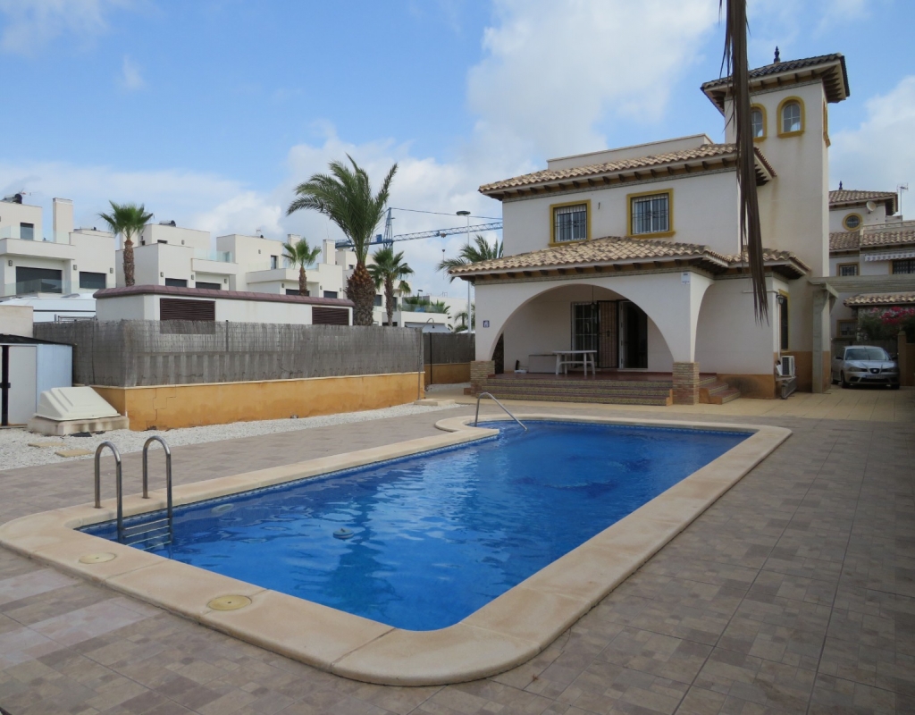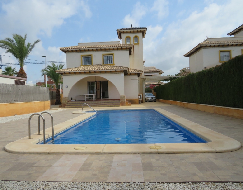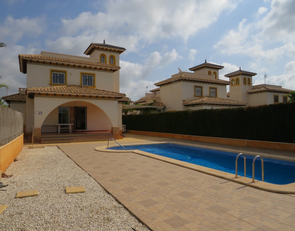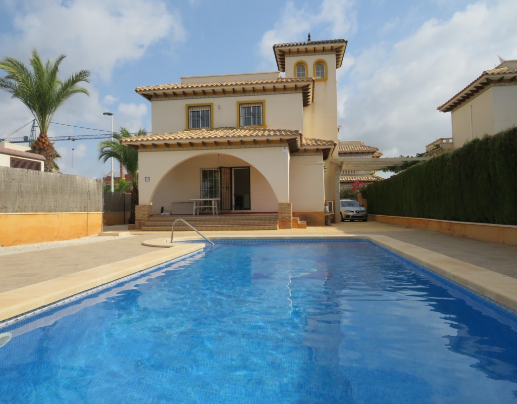 Nach Süden ausgerichtete freistehende Villa zum Verkauf in Pinet La Marina Alicante an der südlichen Costa Blanca.