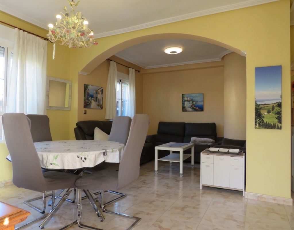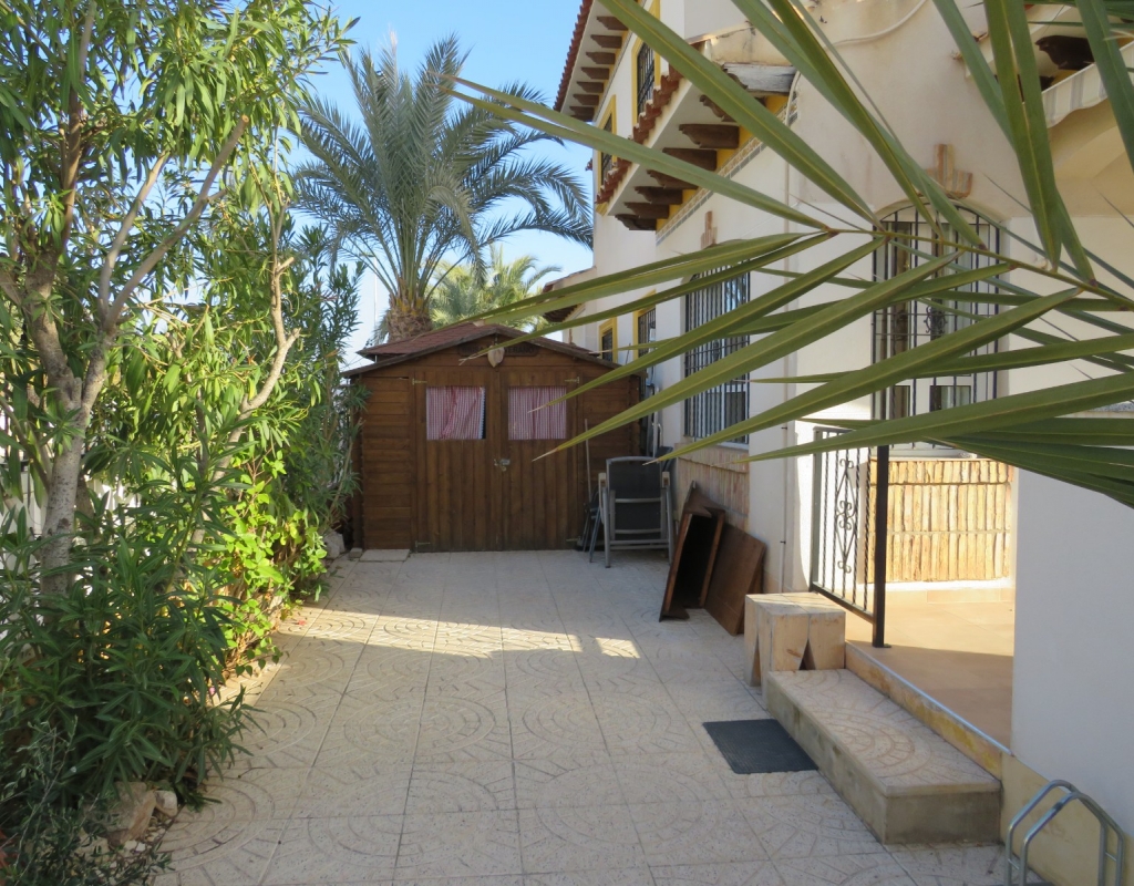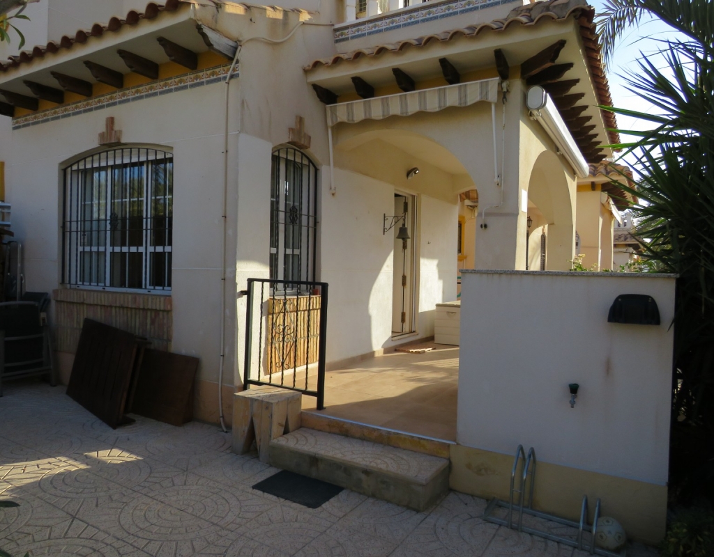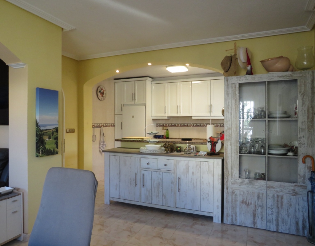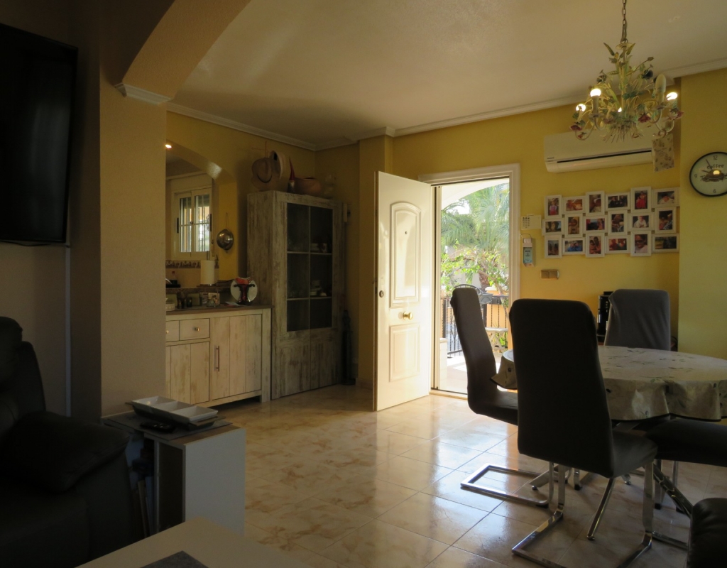 Wir bieten ein nach Süden ausgerichtetes „Quad“-Eckhaus mit Meerblick zum Verkauf in der wunderschönen Gegend von El Pinet, Elche, Alicante an. Das Haus hat eine bebaute Fläche von ca. 85m² und besteht aus einem Eingang, einer Terrasse und einer Veranda im Außenbereich, es gibt einen weiteren Eingang für einen privaten Parkplatz. Im Garten ist ein Abstellraum aus Holz. Beim Betreten finden Sie ein geräumiges und helles Wohnzimmer mit Klimaanlage warm/kalt, einen Essbereich, eine offene Küche und ein Badezimmer mit Dusche.