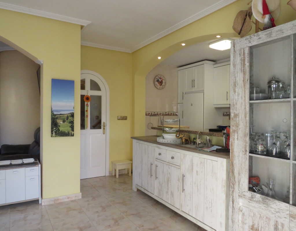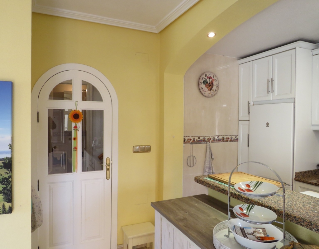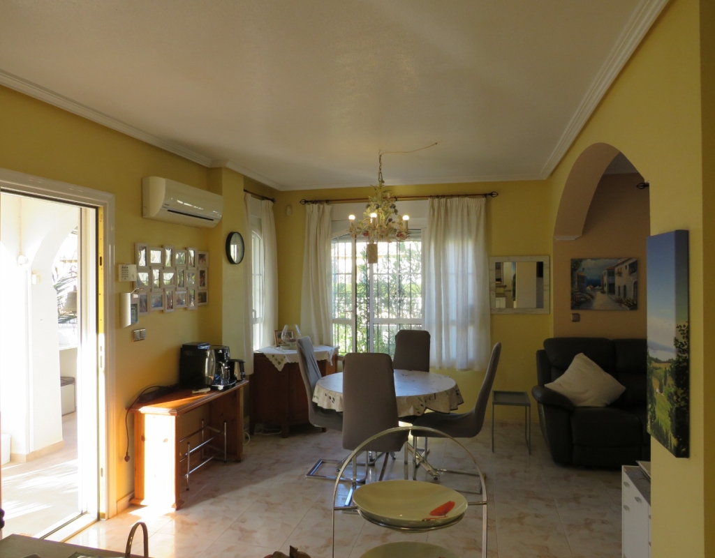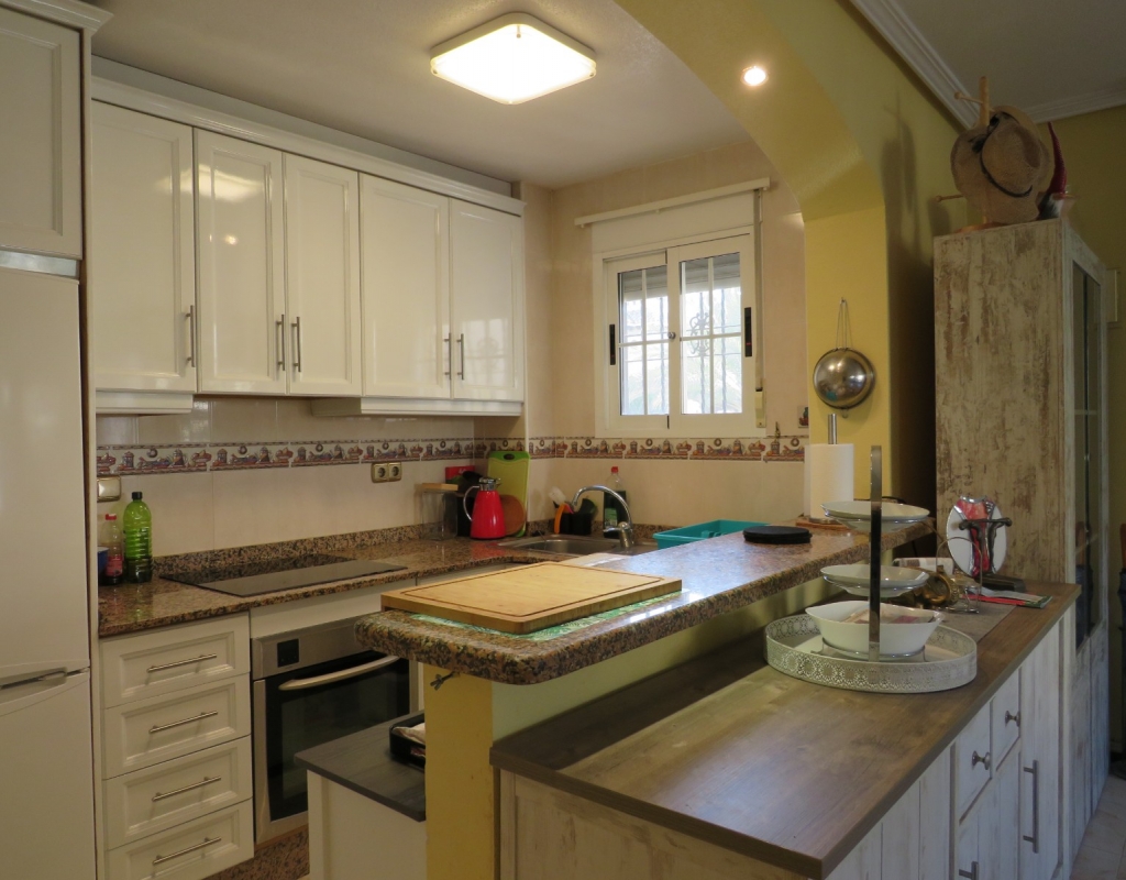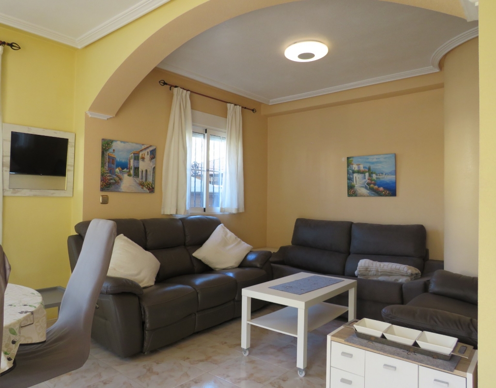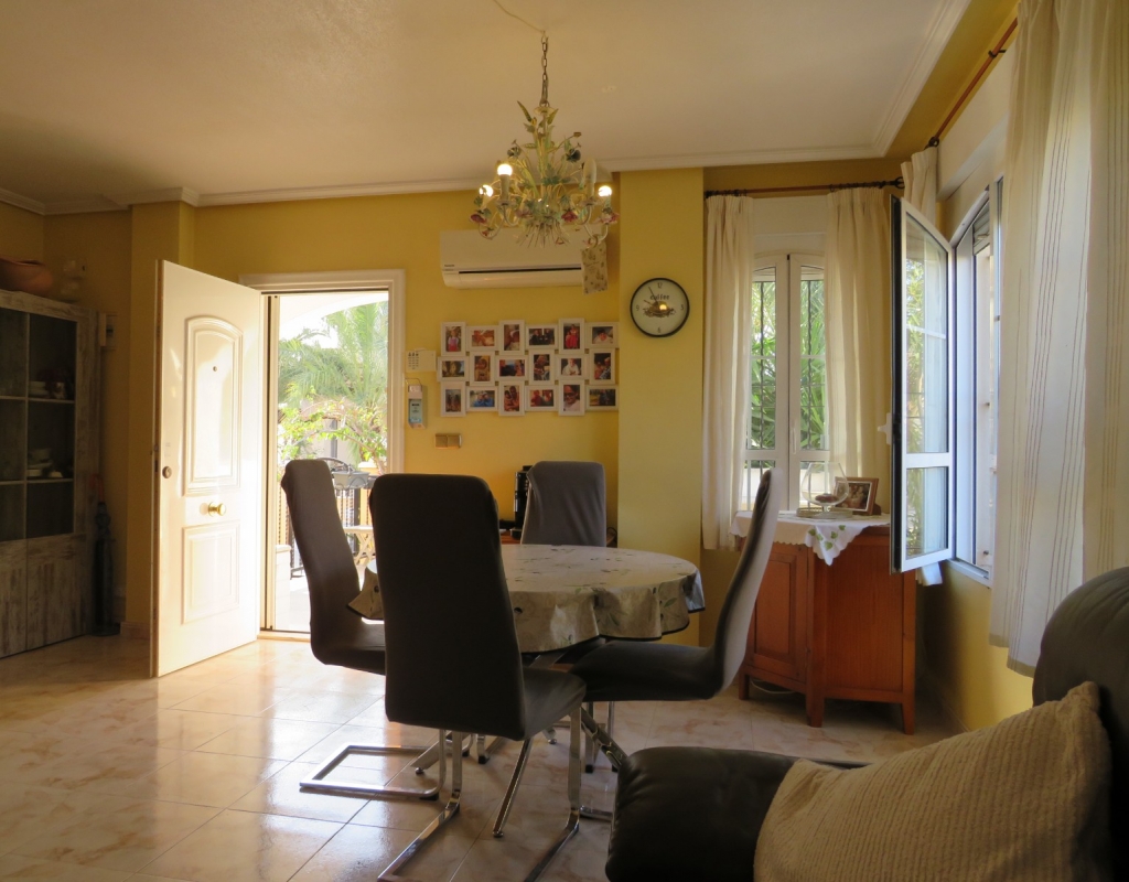 Wir bieten ein nach Süden ausgerichtetes „Quad“-Eckhaus mit Meerblick zum Verkauf in der wunderschönen Gegend von El Pinet, Elche, Alicante an. Das Haus hat eine bebaute Fläche von ca. 85m² und besteht aus einem Eingang, einer Terrasse und einer Veranda im Außenbereich, es gibt einen weiteren Eingang für einen privaten Parkplatz. Im Garten ist ein Abstellraum aus Holz. Beim Betreten finden Sie ein geräumiges und helles Wohnzimmer mit Klimaanlage warm/kalt, einen Essbereich, eine offene Küche und ein Badezimmer mit Dusche.
