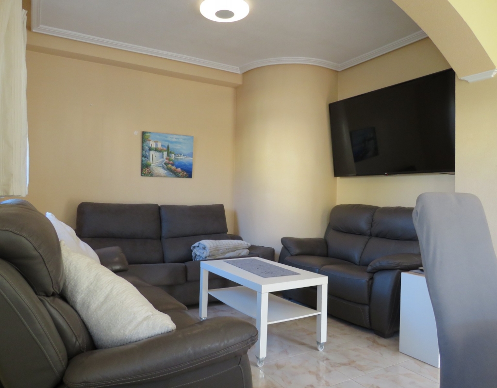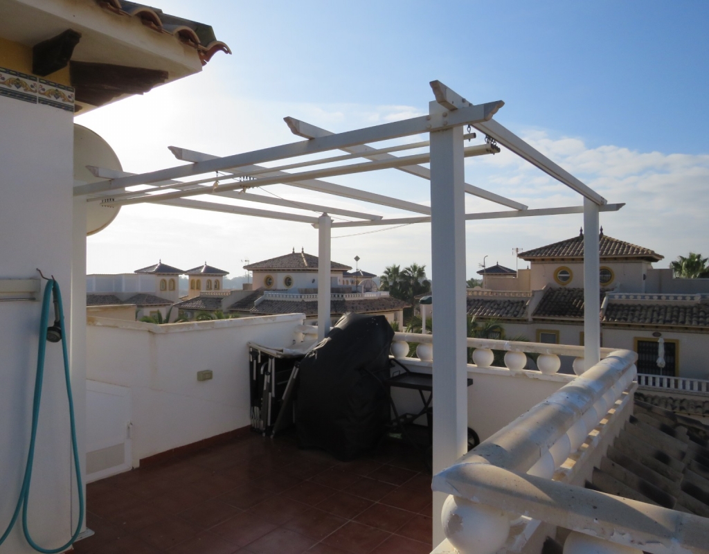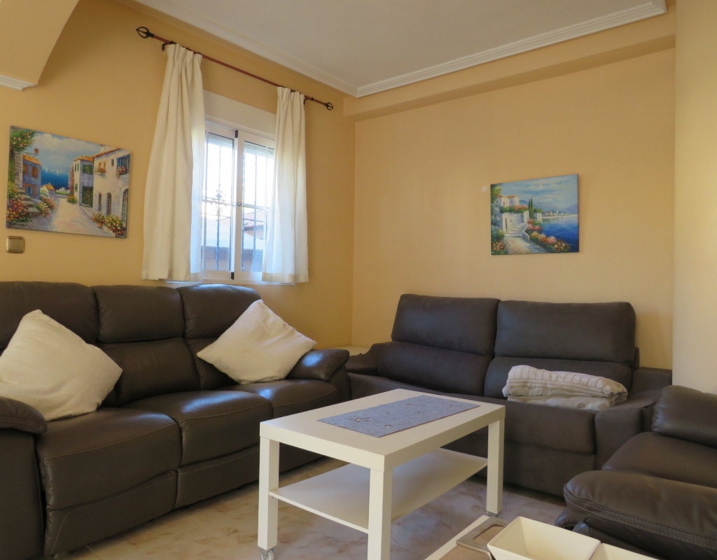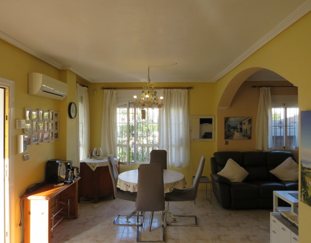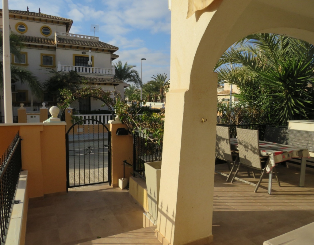 Wir bieten ein nach Süden ausgerichtetes „Quad“-Eckhaus mit Meerblick zum Verkauf in der wunderschönen Gegend von El Pinet, Elche, Alicante an. Das Haus hat eine bebaute Fläche von ca. 85m² und besteht aus einem Eingang, einer Terrasse und einer Veranda im Außenbereich, es gibt einen weiteren Eingang für einen privaten Parkplatz. Im Garten ist ein Abstellraum aus Holz. Beim Betreten finden Sie ein geräumiges und helles Wohnzimmer mit Klimaanlage warm/kalt, einen Essbereich, eine offene Küche und ein Badezimmer mit Dusche.