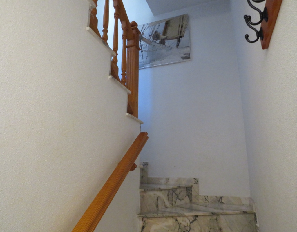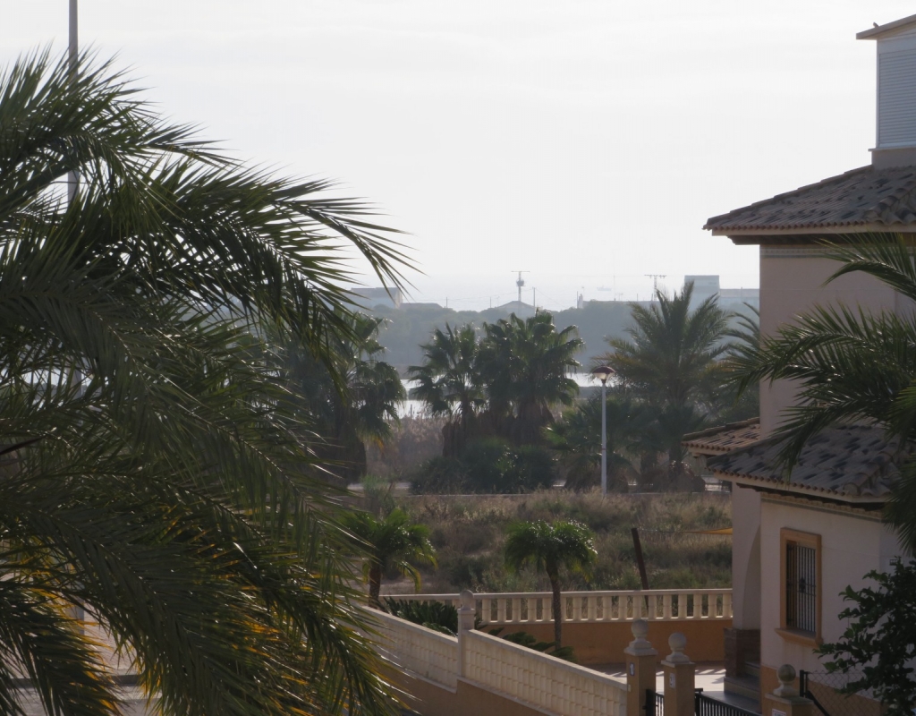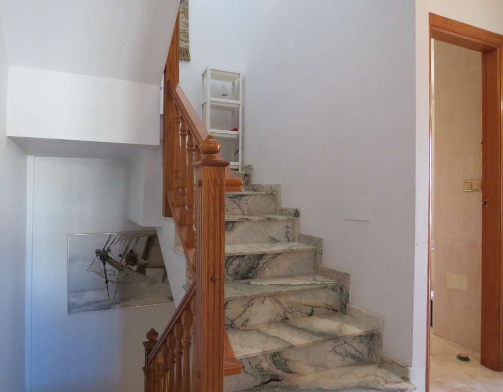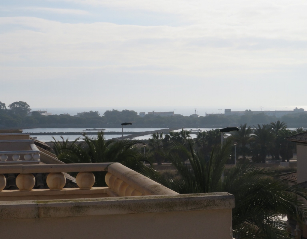 Über die Marmortreppe gelangen Sie in die erste Etage. Hier finden Sie ein Doppelschlafzimmer mit Einbauschrank, das Hauptbadezimmer und das Hauptschlafzimmer, ebenfalls mit Einbauschrank und Doppelschiebetüren, die zu einem privaten Balkon mit Meerblick führen. Das Hauptschlafzimmer verfügt über eine Klimaanlage (kalt und warm). Schließlich führt die Marmortreppe weiter zum großen privaten Solarium mit Blick auf das Meer und das Naturschutzgebiet. Diese außergewöhnliche Immobilie wird komplett möbliert und inklusive aller Geräte verkauft. Es liegt nur sechshundert Meter oder zehn minuten vom fantastischen Strand El Pinet entfernt. Es ist etwas mehr als einen Kilometer von Dorf La Marina entfernt und bietet zahlreiche Dienstleistungen wie Geschäfte, Bars, Restaurants, eine Apotheke, einen Supermarkt, zwei Banken und vieles mehr. Der internationale Flughafen Elche/Alicante ist 20 Autominuten entfernt.