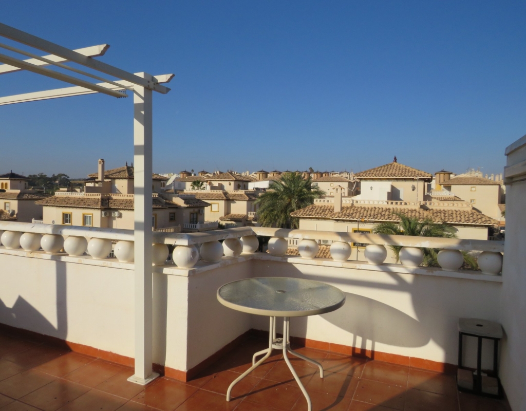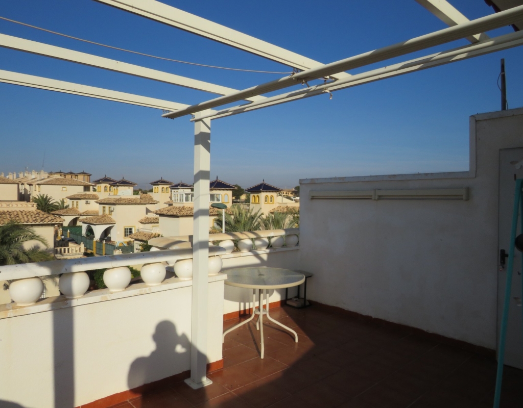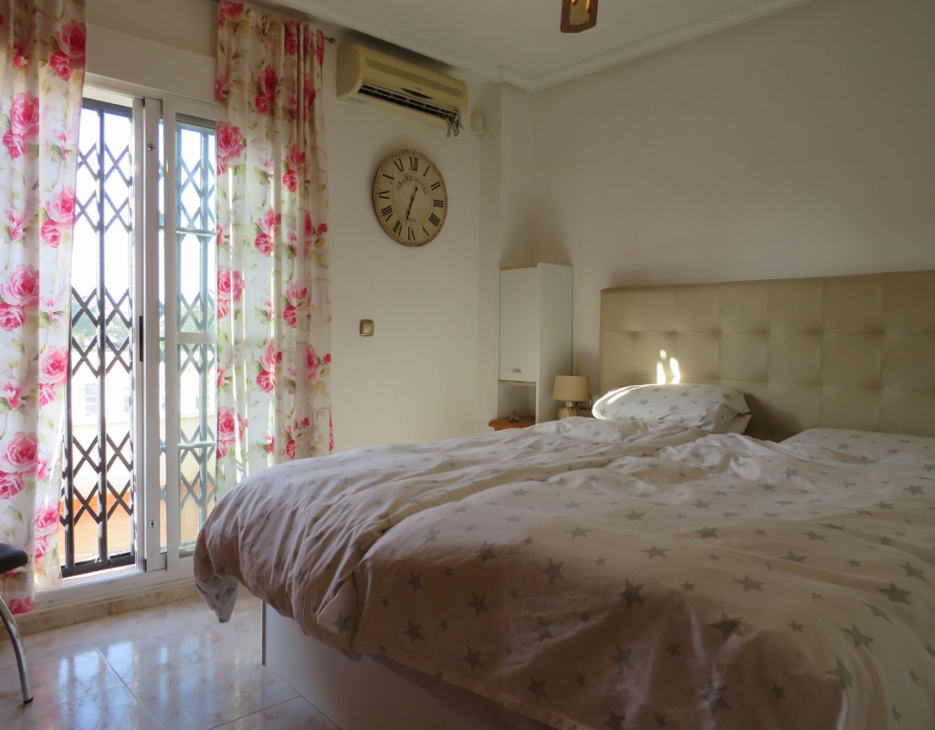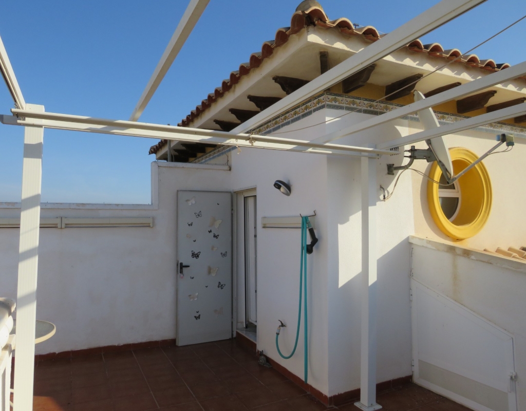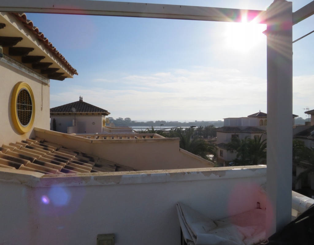 Über die Marmortreppe gelangen Sie in die erste Etage. Hier finden Sie ein Doppelschlafzimmer mit Einbauschrank, das Hauptbadezimmer und das Hauptschlafzimmer, ebenfalls mit Einbauschrank und Doppelschiebetüren, die zu einem privaten Balkon mit Meerblick führen. Das Hauptschlafzimmer verfügt über eine Klimaanlage (kalt und warm). Schließlich führt die Marmortreppe weiter zum großen privaten Solarium mit Blick auf das Meer und das Naturschutzgebiet. Diese außergewöhnliche Immobilie wird komplett möbliert und inklusive aller Geräte verkauft. Es liegt nur sechshundert Meter oder zehn minuten vom fantastischen Strand El Pinet entfernt. Es ist etwas mehr als einen Kilometer von Dorf La Marina entfernt und bietet zahlreiche Dienstleistungen wie Geschäfte, Bars, Restaurants, eine Apotheke, einen Supermarkt, zwei Banken und vieles mehr. Der internationale Flughafen Elche/Alicante ist 20 Autominuten entfernt.
