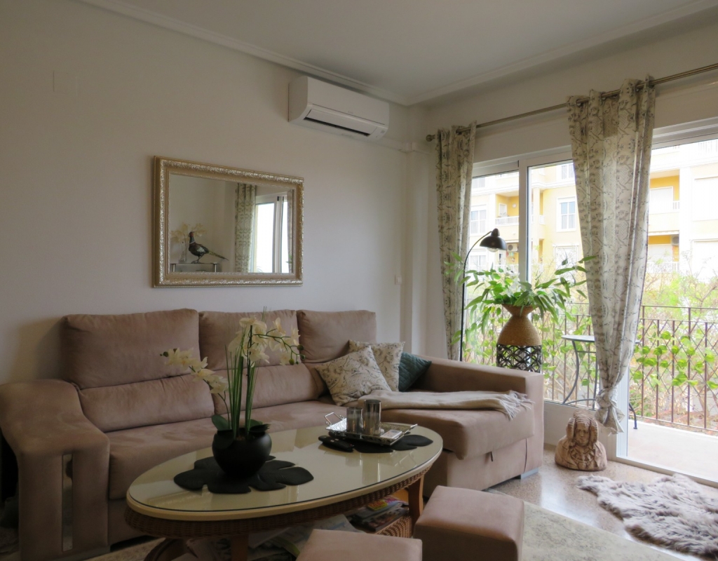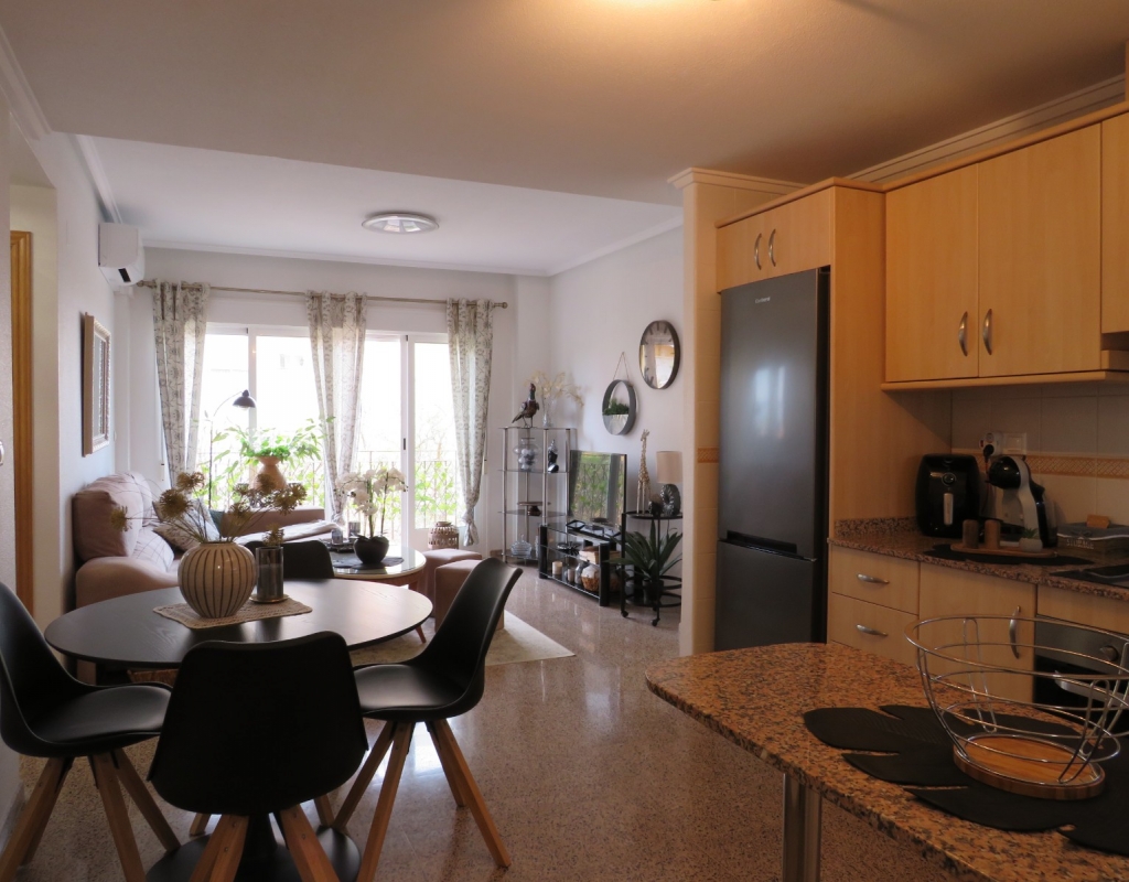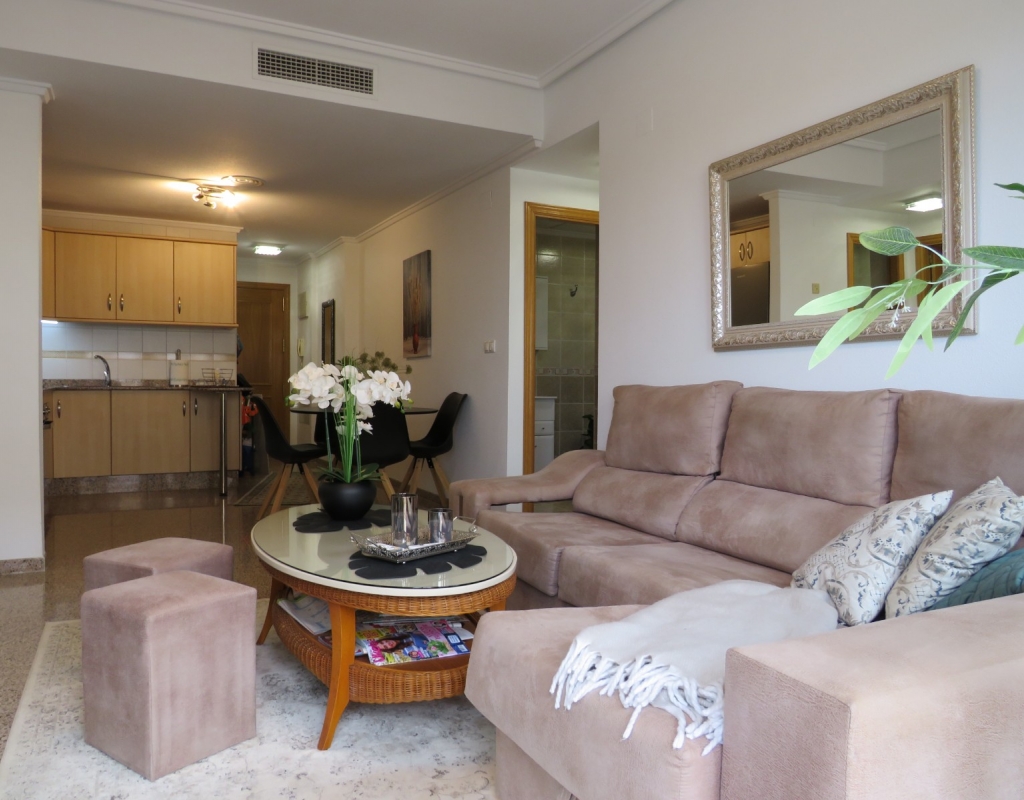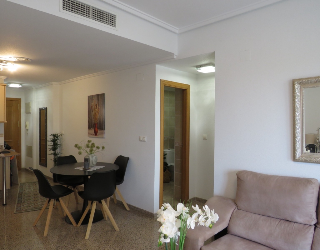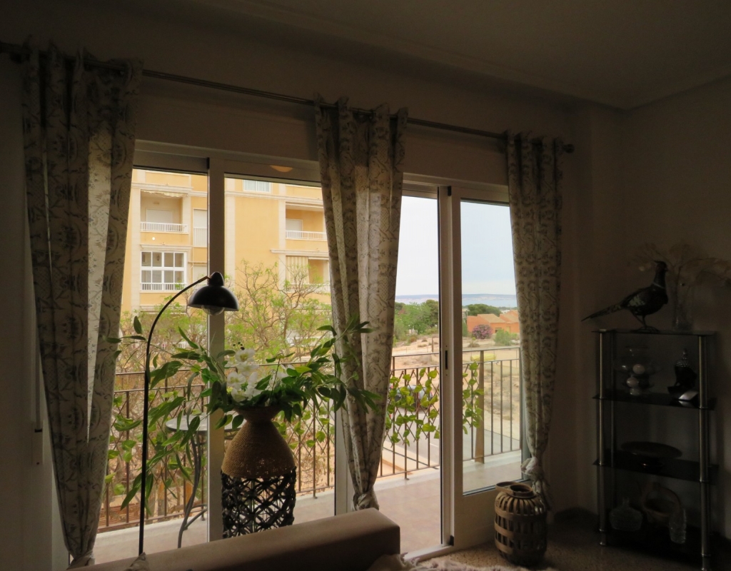 Geräumiges Apartment mit zwei Schlafzimmern und zwei Bädern und Meerblick zum Verkauf im Dorf La Marina, Elche, Alicante an der Südküste von Blanca.