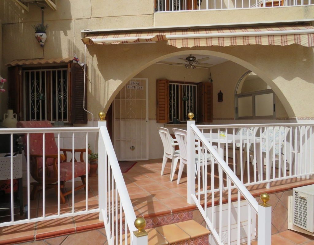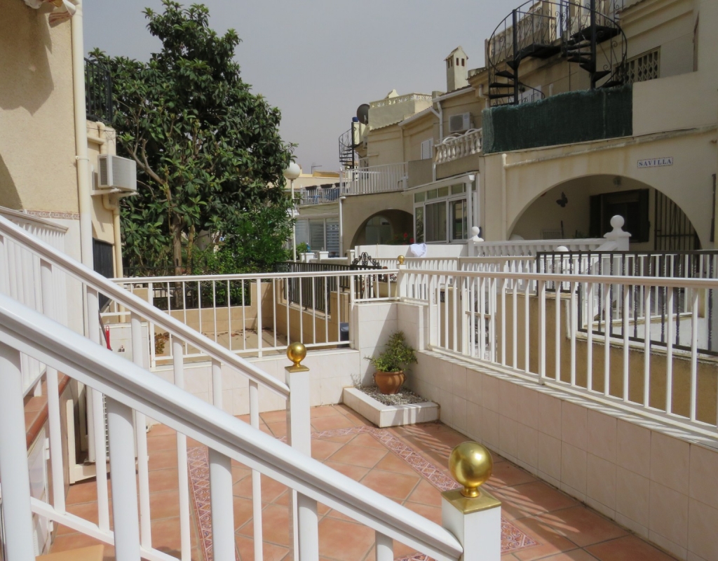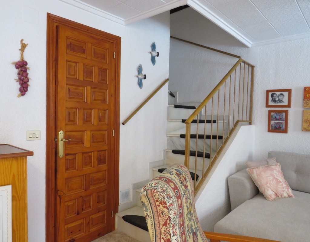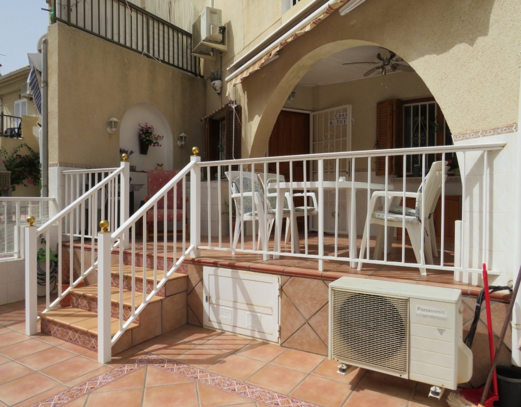 Wir sind stolz, dieses nach Süden ausgerichtete Reihenmittelhaus in der schönen Gegend von Buenavista, Guardamar und nur 600 Meter vom Strand entfernt zum Verkauf anbieten zu können. Das Anwesen verfügt über eine bebaute Fläche von rund 60 m² auf zwei Etagen. Draußen finden Sie eine untere Terrasse, ein paar Stufen hinauf gelangen Sie zu einer weiteren Terrasse und einem Verandabereich. Im Inneren finden Sie ein geräumiges Wohnzimmer, eine offene Küche und ein Gäste-WC. Die Marmortreppe führt Sie nach oben, wo Sie einen geräumigen Abstellraum, das Familienbadezimmer und zwei Doppelschlafzimmer finden, wobei das Hauptschlafzimmer Zugang zu einem sonnigen, geräumigen Balkon hat.