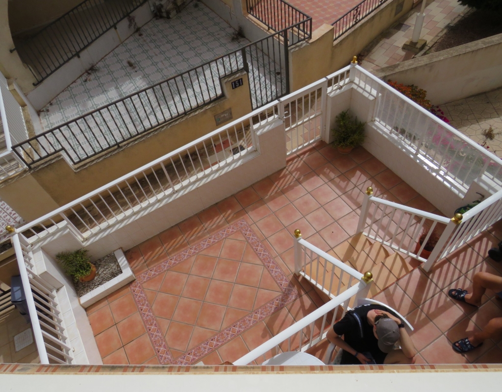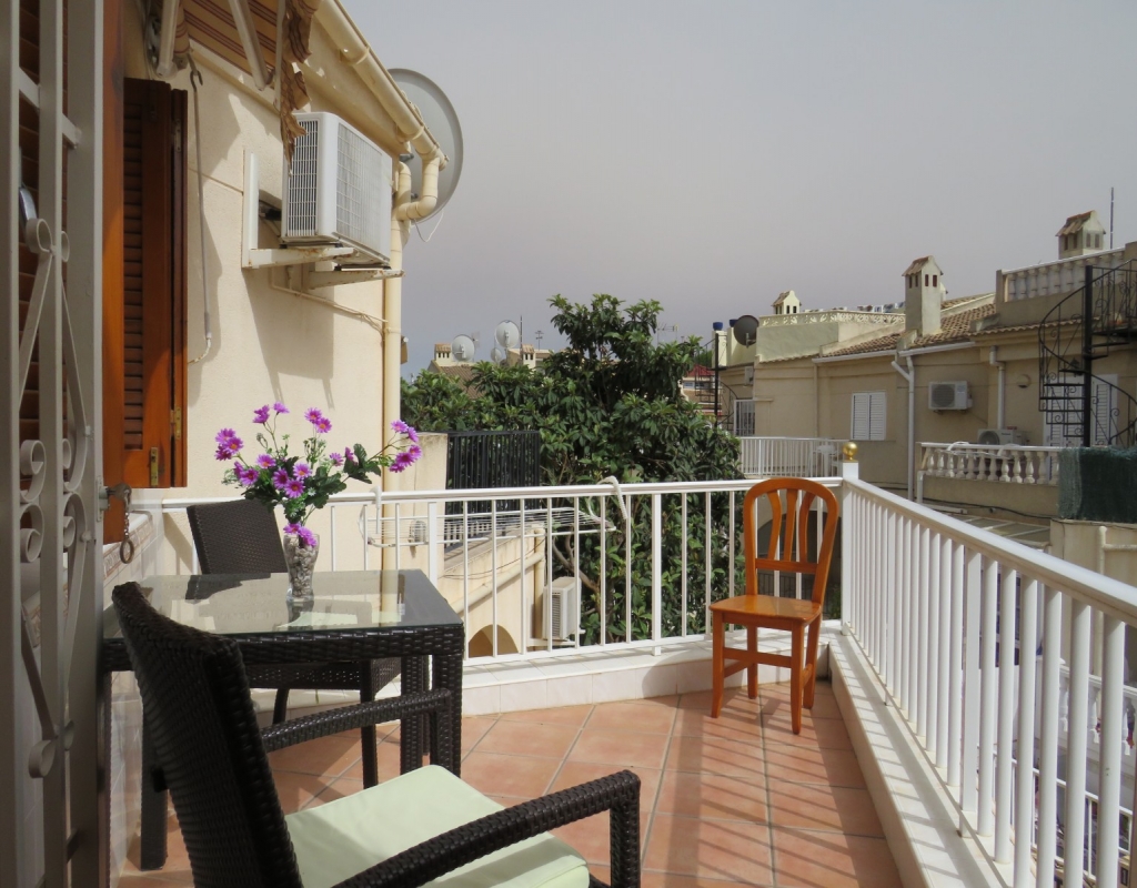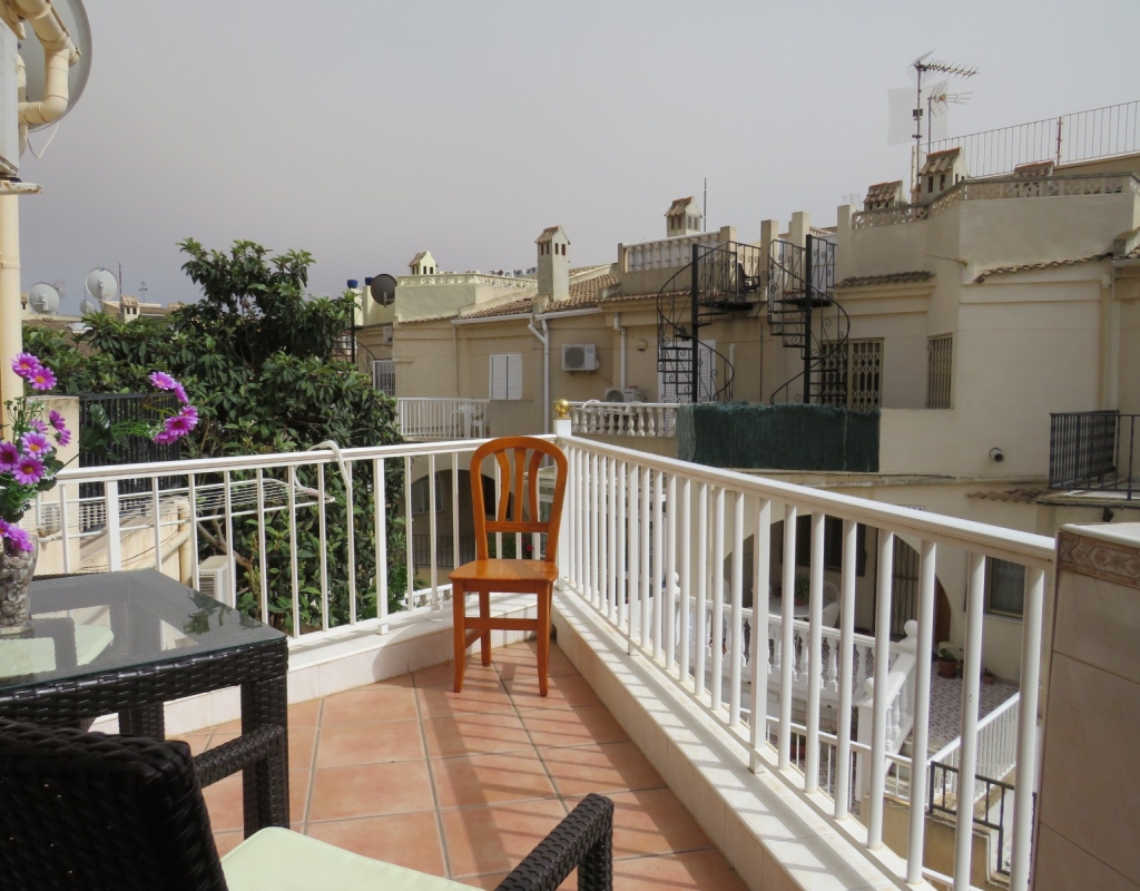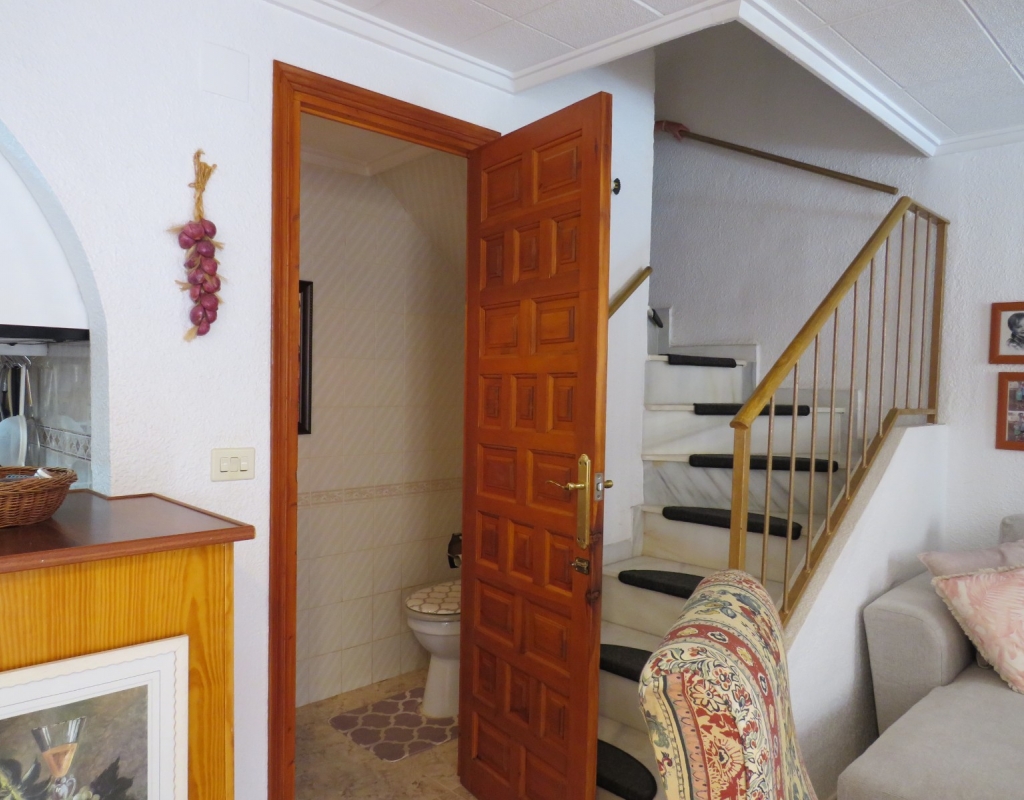Wir sind stolz, dieses nach Süden ausgerichtete Reihenmittelhaus in der schönen Gegend von Buenavista, Guardamar und nur 600 Meter vom Strand entfernt zum Verkauf anbieten zu können. Das Anwesen verfügt über eine bebaute Fläche von rund 60 m² auf zwei Etagen. Draußen finden Sie eine untere Terrasse, ein paar Stufen hinauf gelangen Sie zu einer weiteren Terrasse und einem Verandabereich. Im Inneren finden Sie ein geräumiges Wohnzimmer, eine offene Küche und ein Gäste-WC. Die Marmortreppe führt Sie nach oben, wo Sie einen geräumigen Abstellraum, das Familienbadezimmer und zwei Doppelschlafzimmer finden, wobei das Hauptschlafzimmer Zugang zu einem sonnigen, geräumigen Balkon hat.
