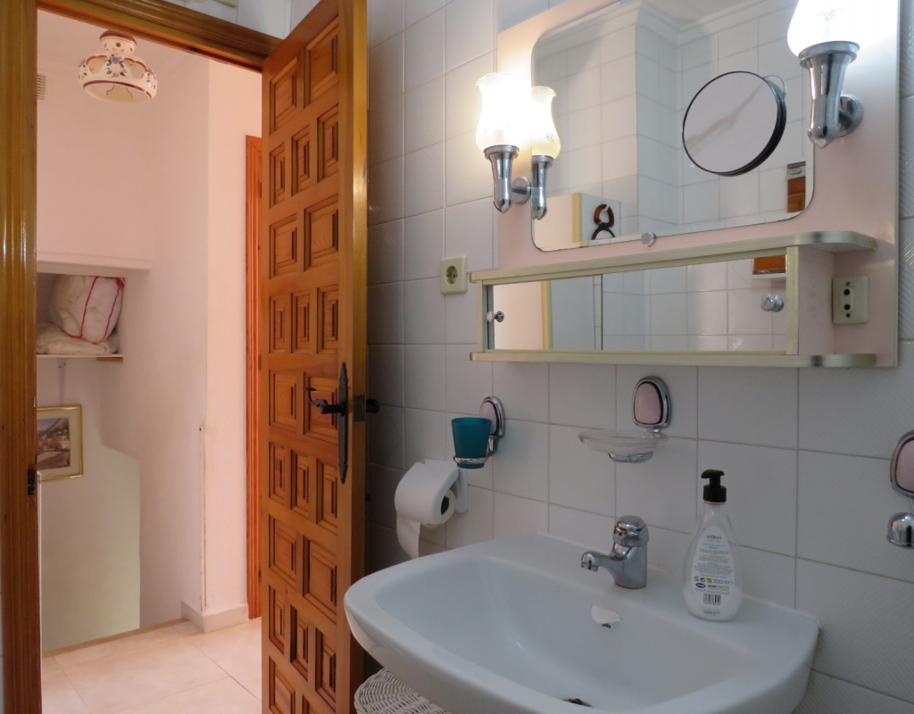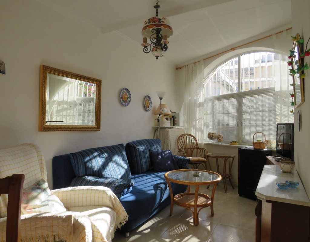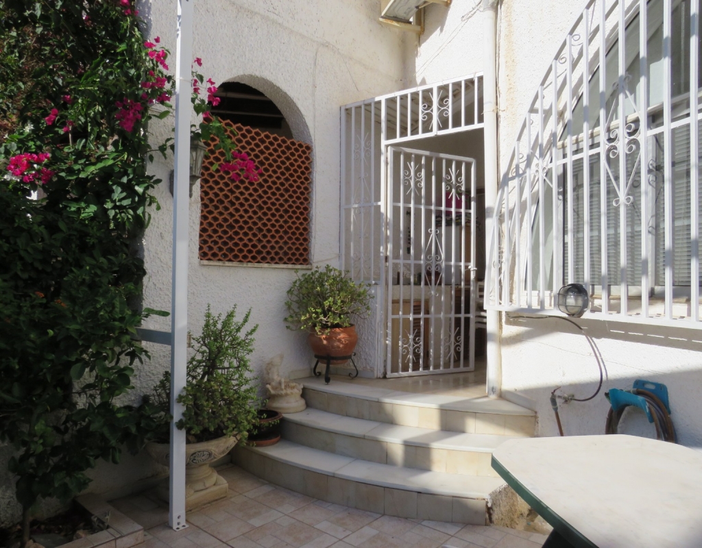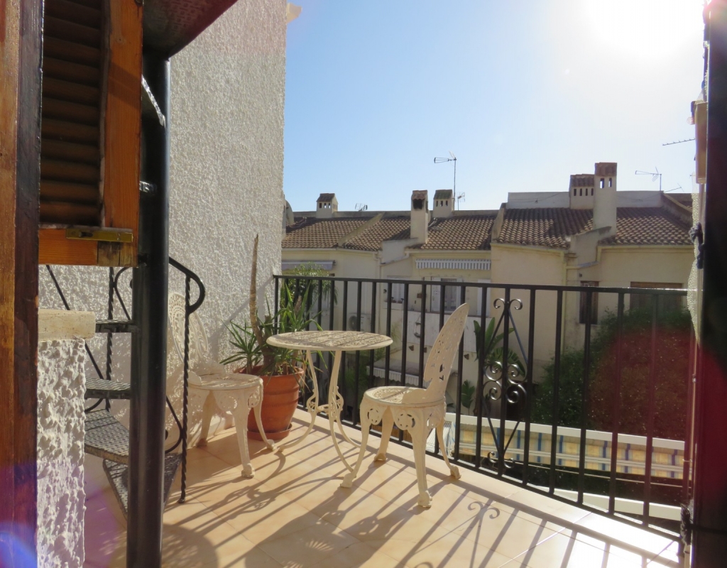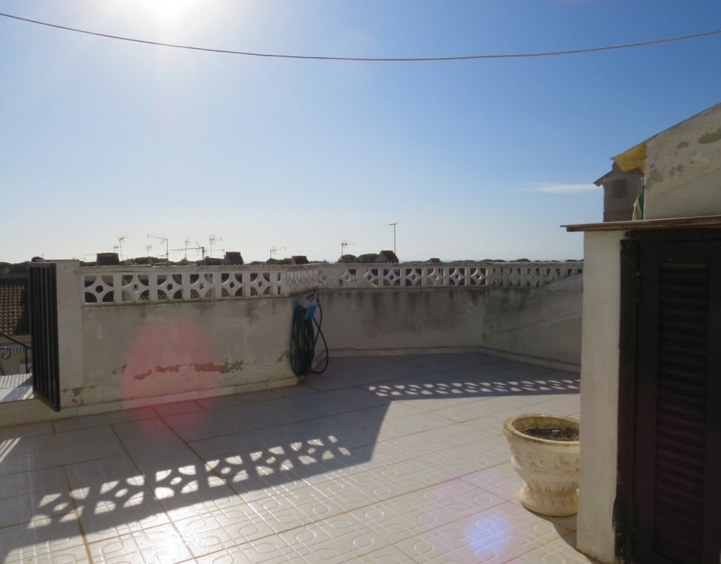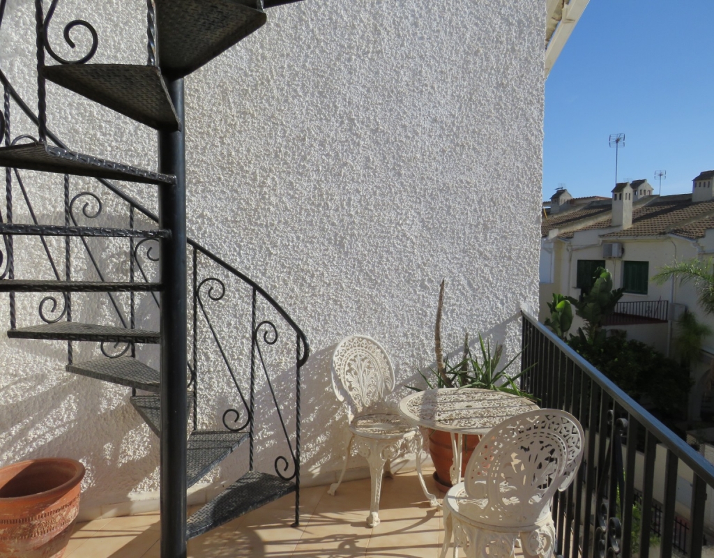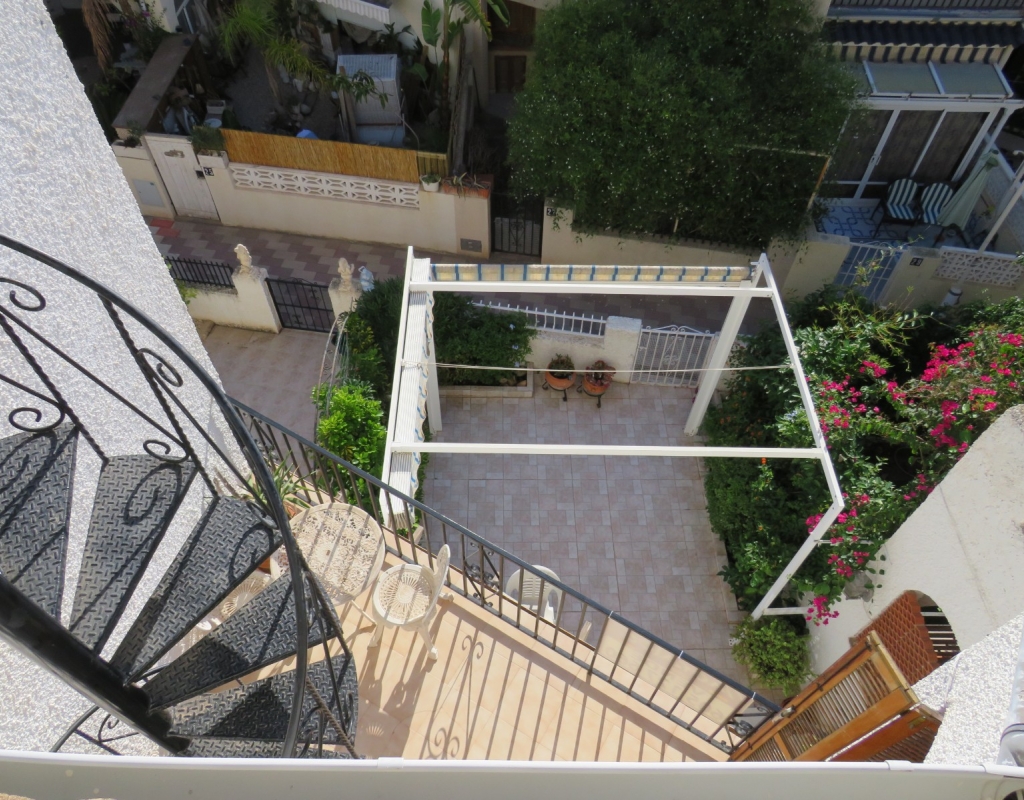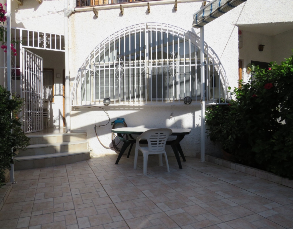 Wir sind stolz, dieses nach Osten ausgerichtete Reihenmittelhaus in der schönen Gegend von Buenavista, Guardamar und nur 600 Meter vom Strand entfernt zum Verkauf anbieten zu können. Das Anwesen hat eine bebaute Fläche von rund 60 m² auf zwei Ebenen. Draußen finden Sie eine untere Terrasse, ein paar Stufen hinauf gelangen Sie zu einem eingezäunten Verandabereich. Im Inneren finden Sie ein geräumiges und erweitertes Wohnzimmer, einen Essbereich, eine offene Küche und ein Gäste-WC. Die Marmortreppe führt Sie nach oben, wo Sie einen geräumigen Abstellraum, das Familienbadezimmer und zwei Doppelschlafzimmer finden, wobei beide Schlafzimmer Zugang zu einem sonnigen, geräumigen Balkon haben. Eine Wendeltreppe führt zu einem großen privaten Solarium mit Blick auf das Meer und nach Guardamar.