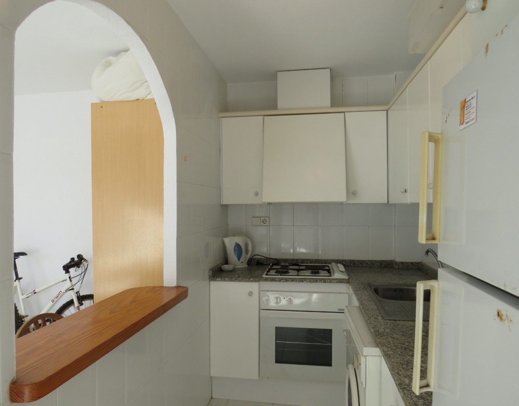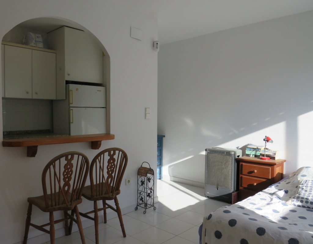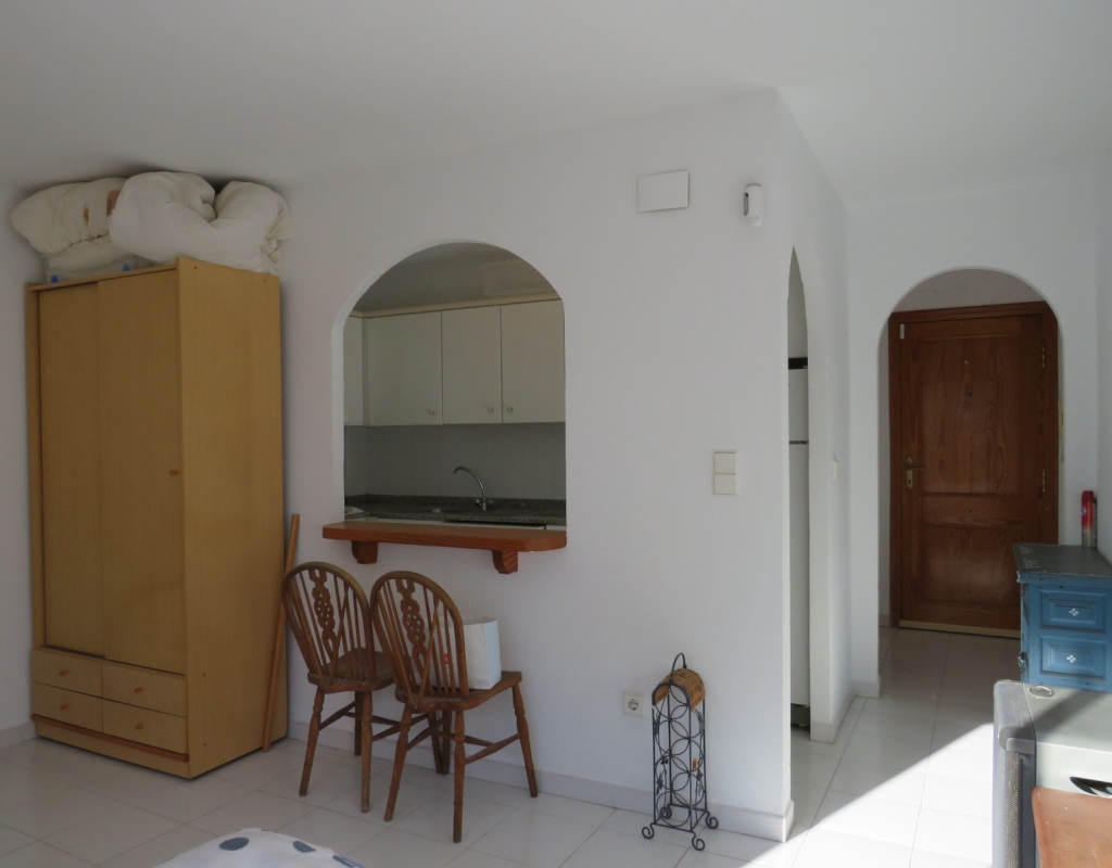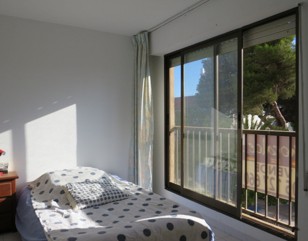 Geräumiges Studio-Apartment im ersten Stock zum Verkauf in der charmanten Stadt La Marina, Elche, Alicante. Das Haus verfügt über eine bebaute Fläche von ca. 30 m², auf der sich ein großes Badezimmer, eine offene Küche und ein Wohn-Schlafzimmer mit kleinem Meerblick befinden. Außerdem gibt es ein großes Gemeinschaftssolarium mit Meerblick.