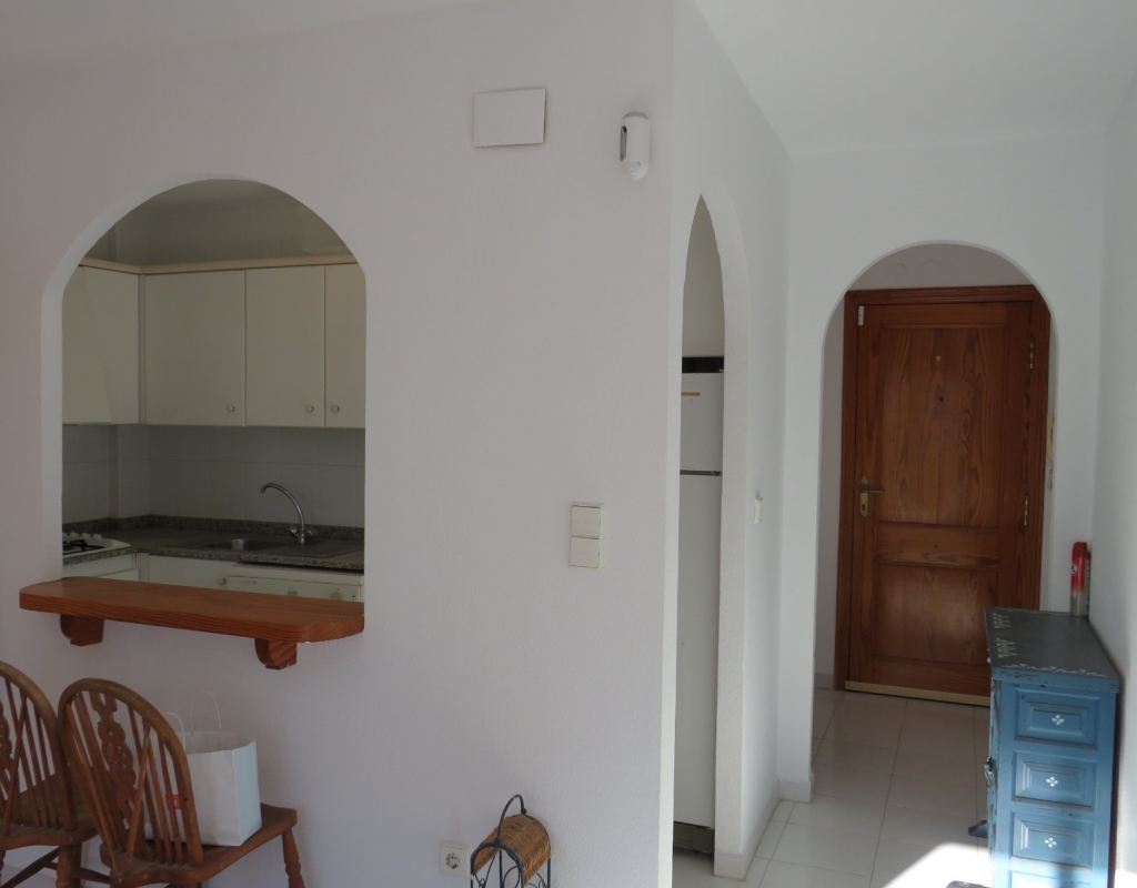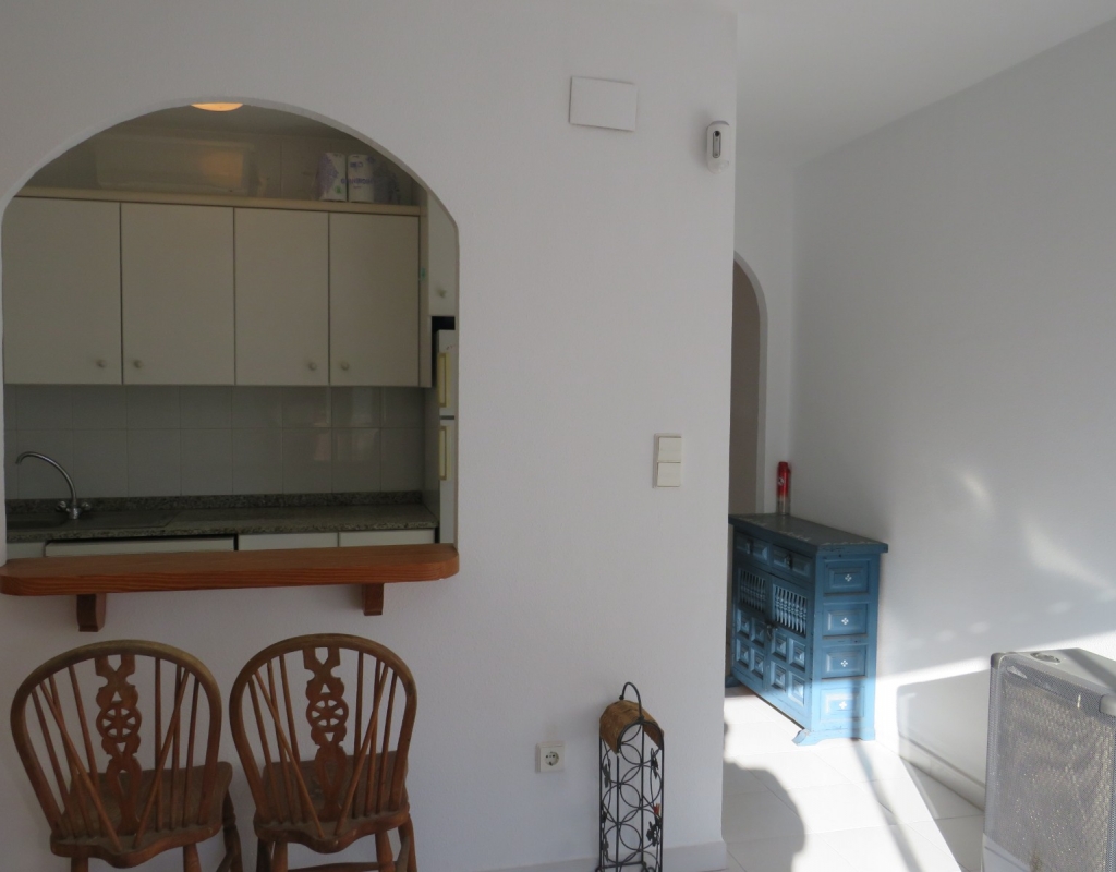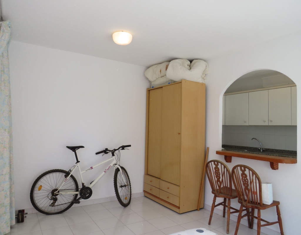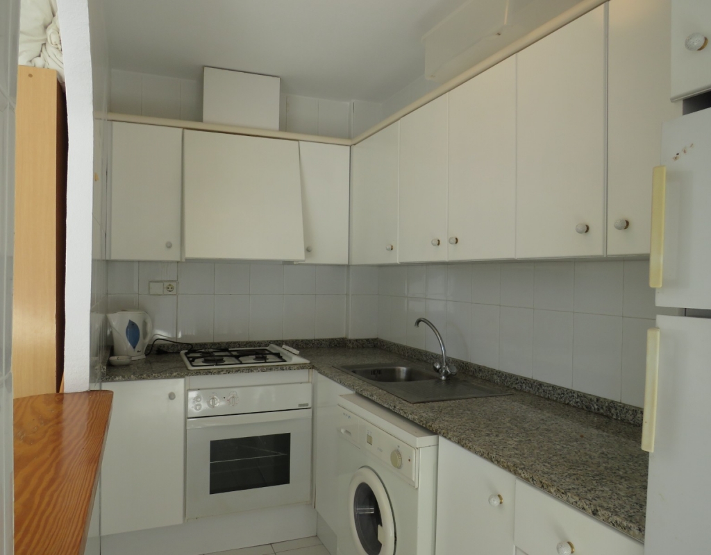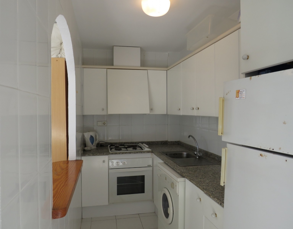 Geräumiges Studio-Apartment im ersten Stock zum Verkauf in der charmanten Stadt La Marina, Elche, Alicante. Das Haus verfügt über eine bebaute Fläche von ca. 30 m², auf der sich ein großes Badezimmer, eine offene Küche und ein Wohn-Schlafzimmer mit kleinem Meerblick befinden. Außerdem gibt es ein großes Gemeinschaftssolarium mit Meerblick.