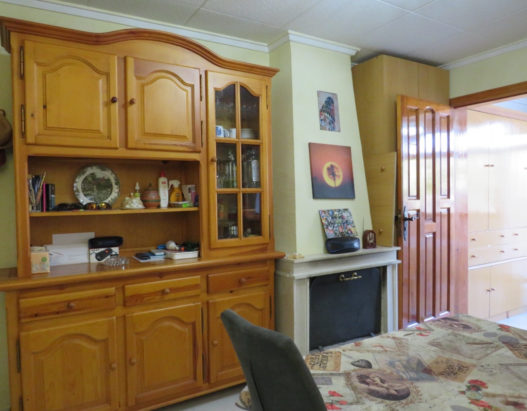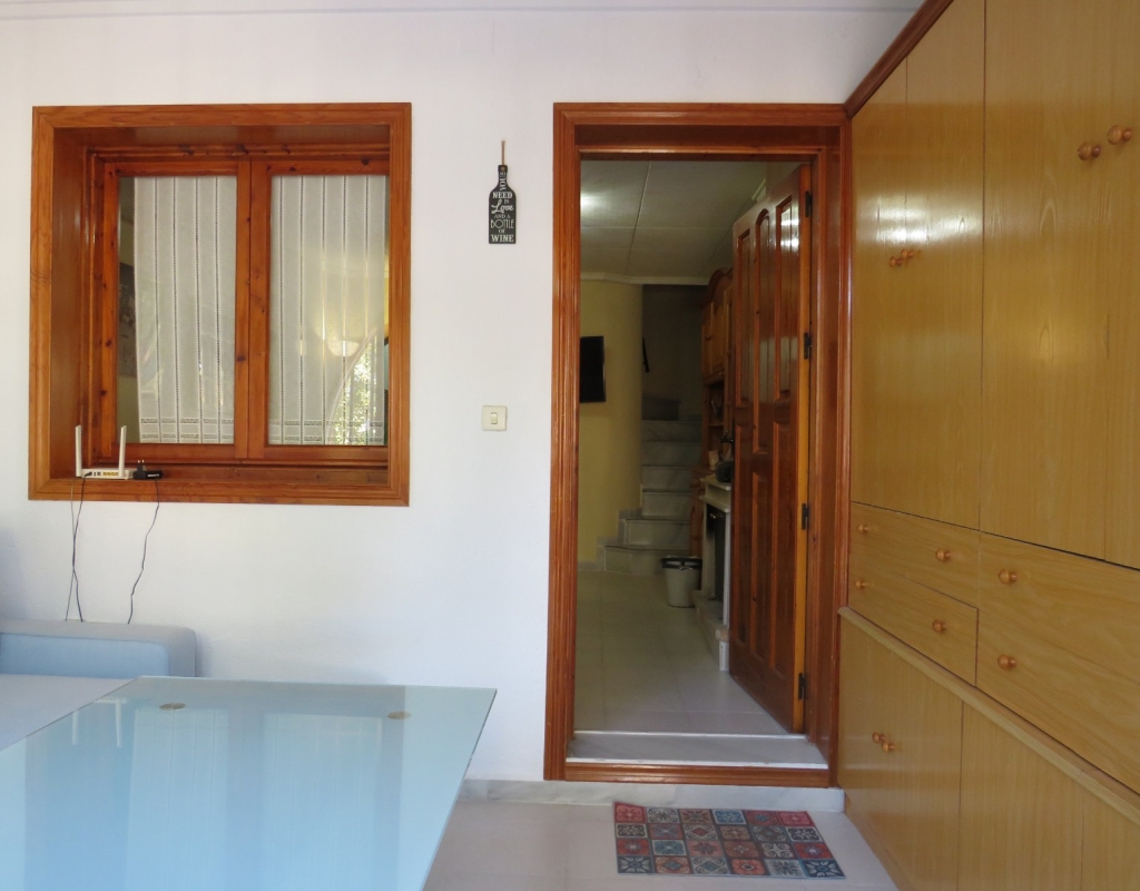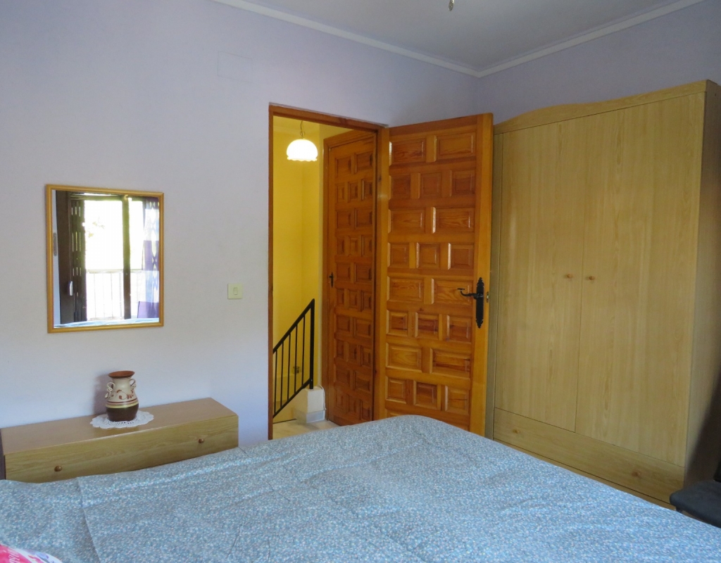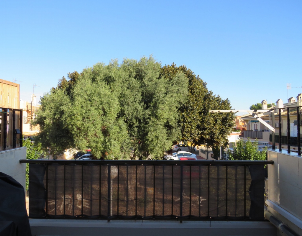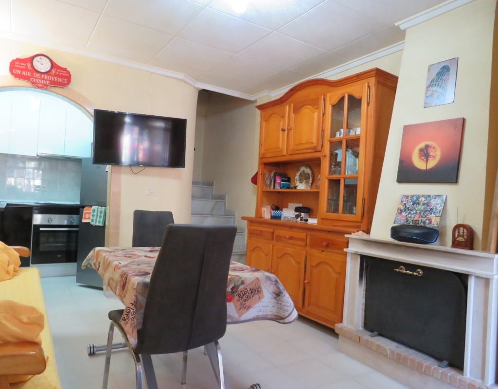 Wir sind stolz, Ihnen dieses schöne Reihenmittelhaus mit einem Schlafzimmer in der schönen Urbanisation Buenavista, Guardamar, nur 600 Meter vom Strand entfernt, zum Verkauf anbieten zu können. Das Anwesen hat eine bebaute Fläche von ca. 48 m² und im Erdgeschoss finden Sie eine Terrasse, eine verglaste Veranda, die als Essbereich genutzt wird, ein Wohnzimmer mit Kamin und eine offene Küche. Die Marmortreppe führt Sie in die obere Etage, wo Sie ein weiteres kleines Abstellzimmer, das Familienbadezimmer mit Badewanne und Dusche, das Doppelschlafzimmer mit Kleiderschränken und Doppeltüren aus Aluminium mit einem Sicherheitstor finden, das zu einem Balkon mit grünem und freiem Blick führt. Im Wohnzimmer und im Schlafzimmer gibt es Klimaanlagen (warm und kalt).