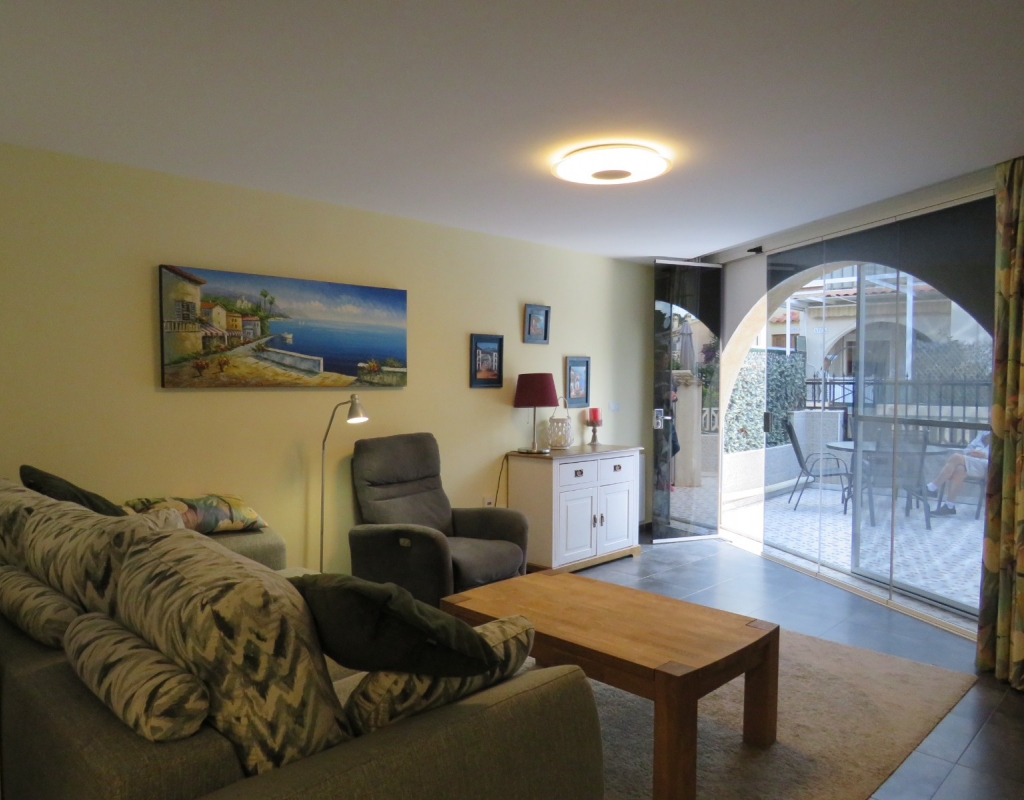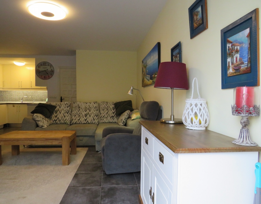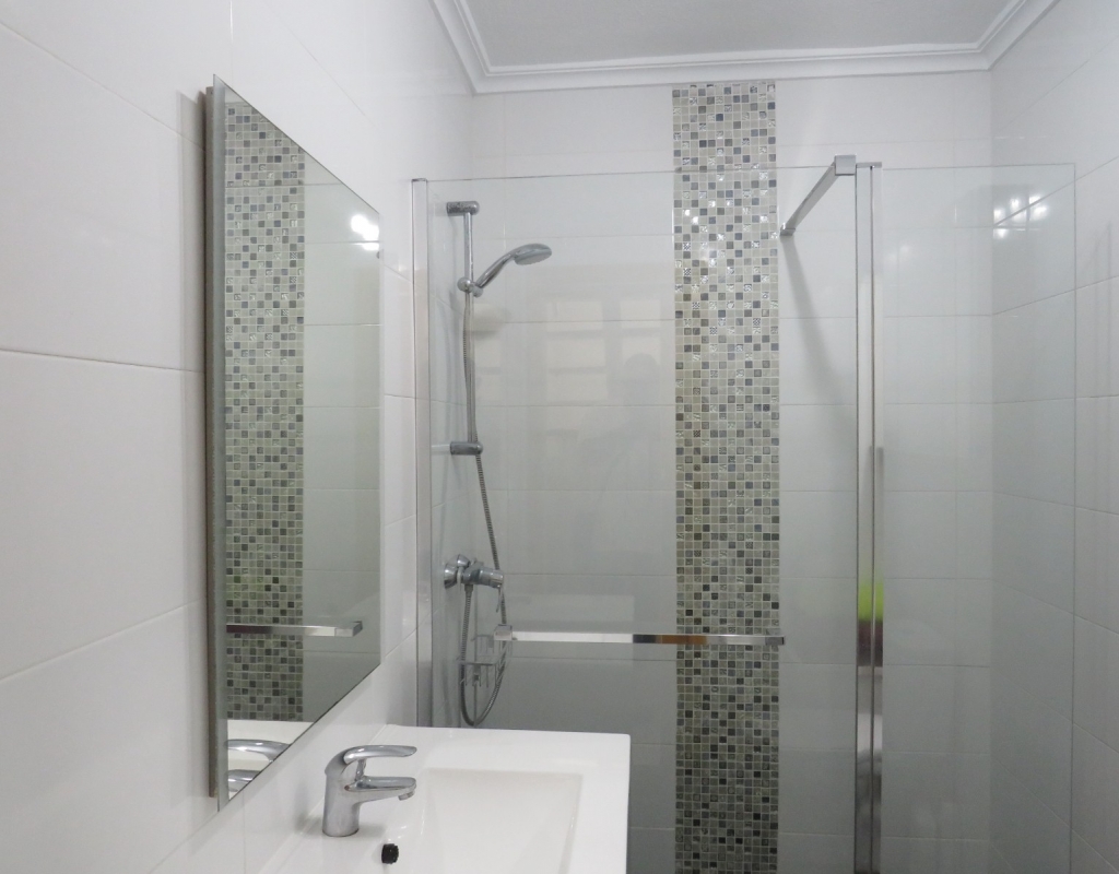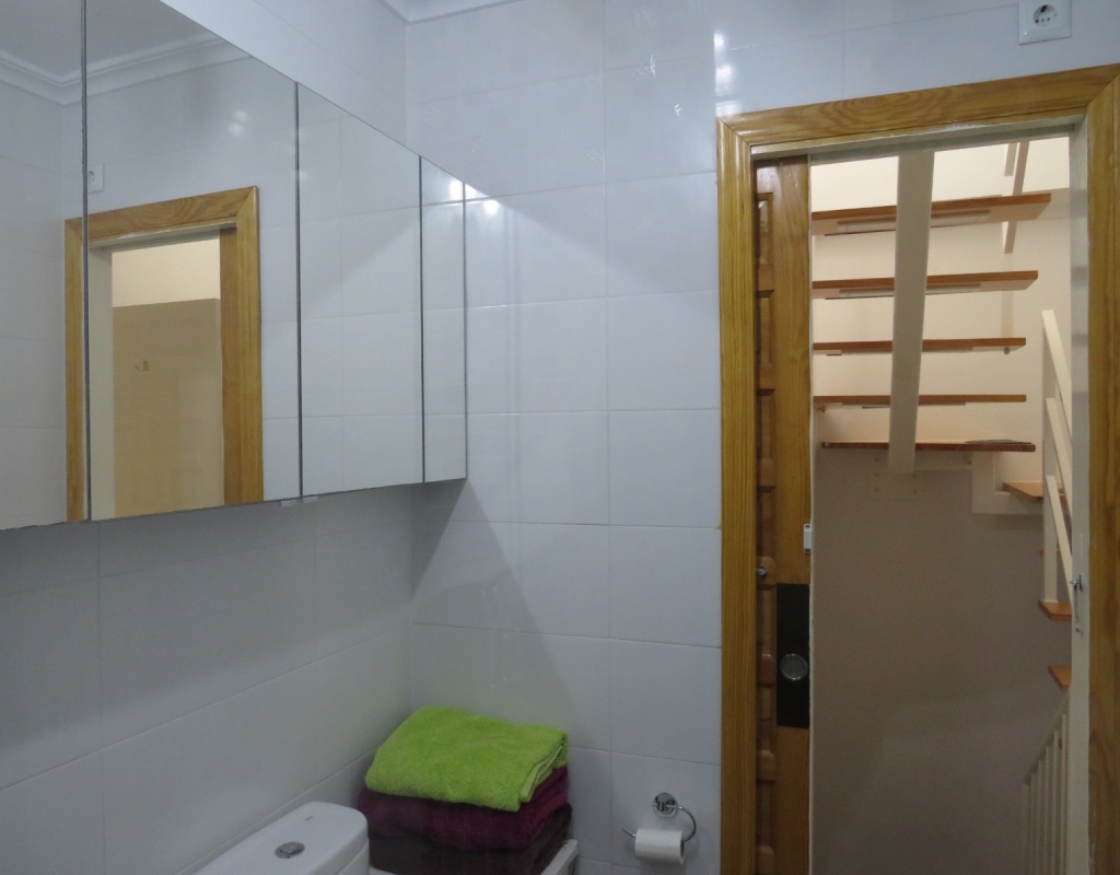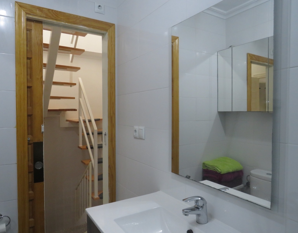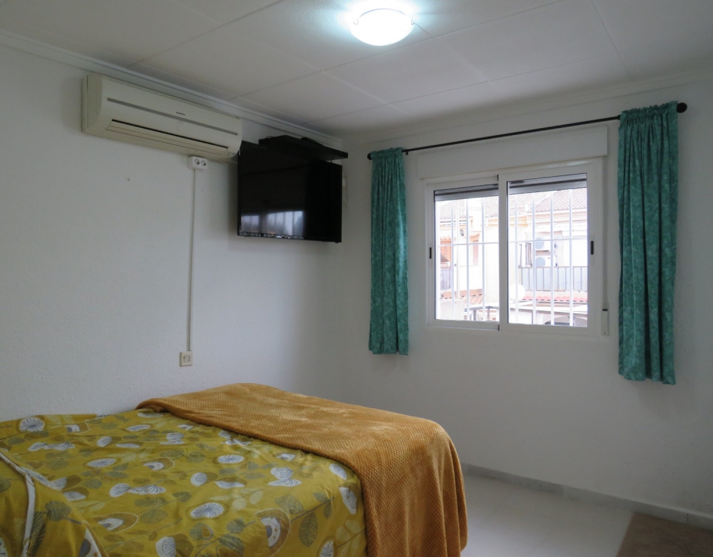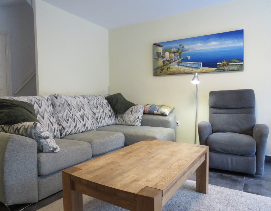 Wir sind stolz, dieses nach Westen ausgerichtete, modern eingerichtete Reihenhaus in der schönen Gegend von Buenavista, Guardamar und nur 600 Meter vom Strand entfernt zum Verkauf anbieten zu können. Das Anwesen hat eine bebaute Fläche von rund 80 m² auf drei Ebenen. Im Außenbereich finden Sie eine geräumige Terrasse mit Schuppen. Wenn Sie durch die Glasvorhänge treten, finden Sie ein geräumiges und renoviertes Wohnzimmer, eine offene, moderne Küche und ein Gäste-WC. Die Marmortreppe führt Sie nach oben, wo Sie das moderne Familienbadezimmer mit ebenerdiger Dusche und zwei Doppelschlafzimmer finden, von denen das Hauptschlafzimmer Zugang zu einem sonnigen, geräumigen Balkon hat. Eine weitere Treppe führt Sie zum Solarium, hier finden Sie einen Raum mit der Waschmaschine und dem Warmwasserbereiter sowie Doppelschiebetüren zum geräumigen privaten Solarium mit Blick auf Guardamar.