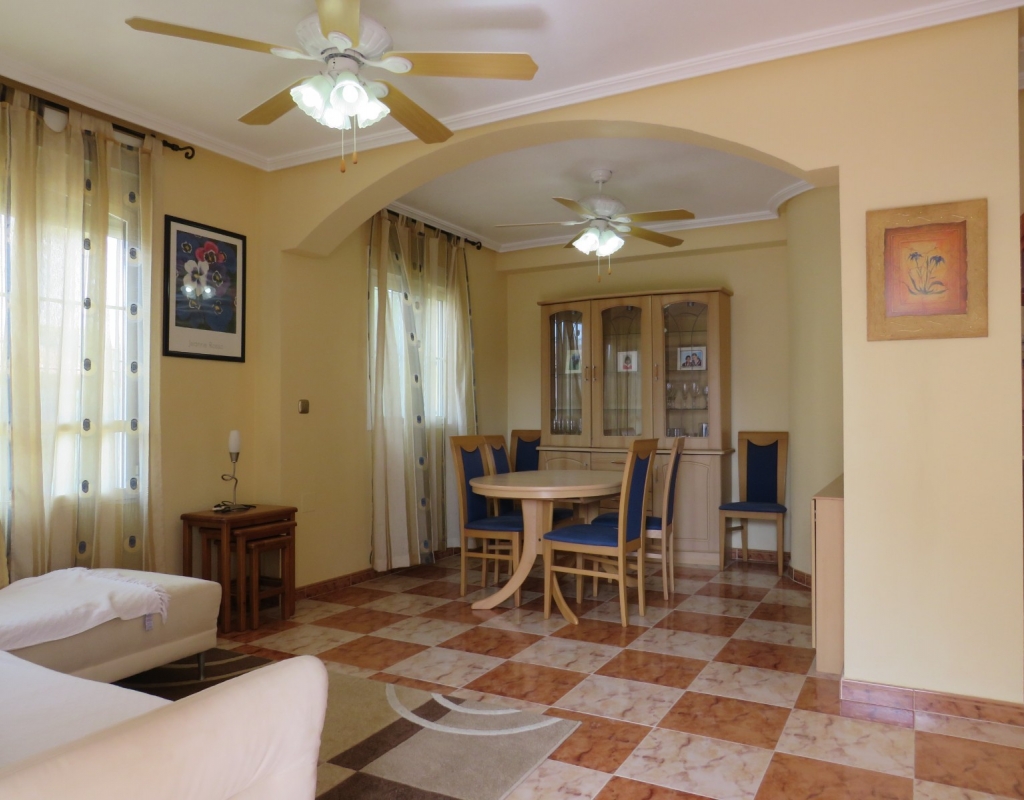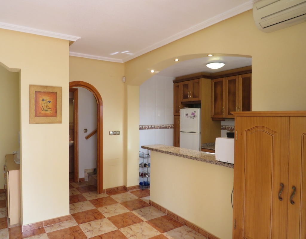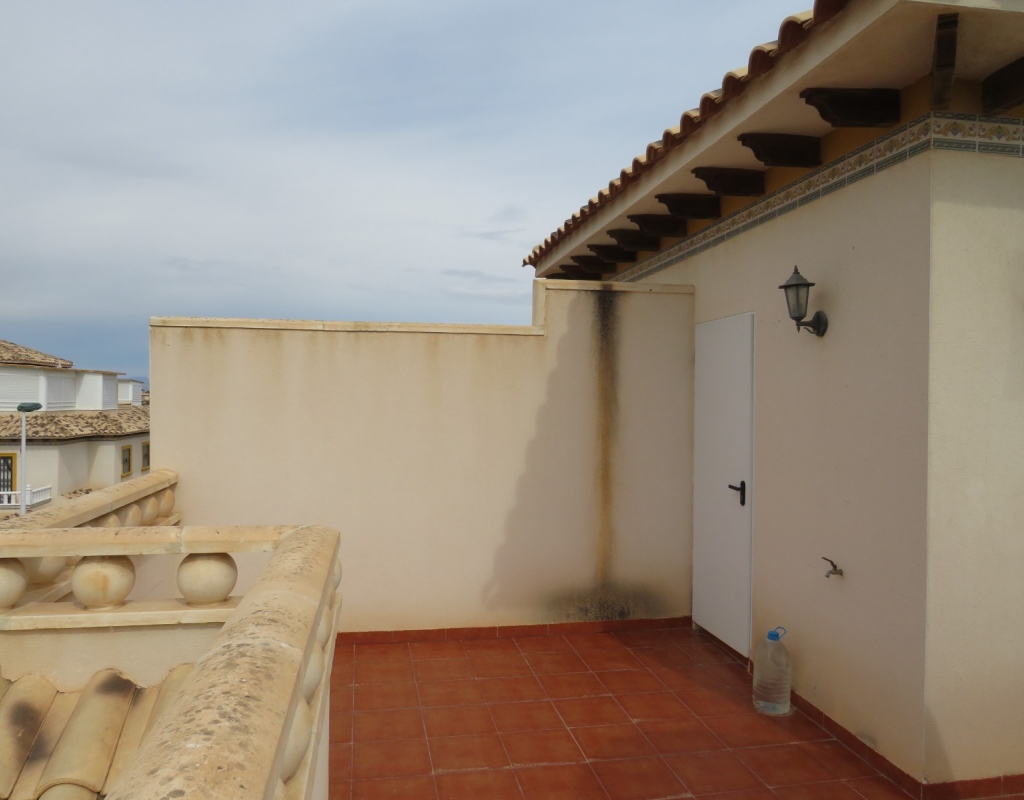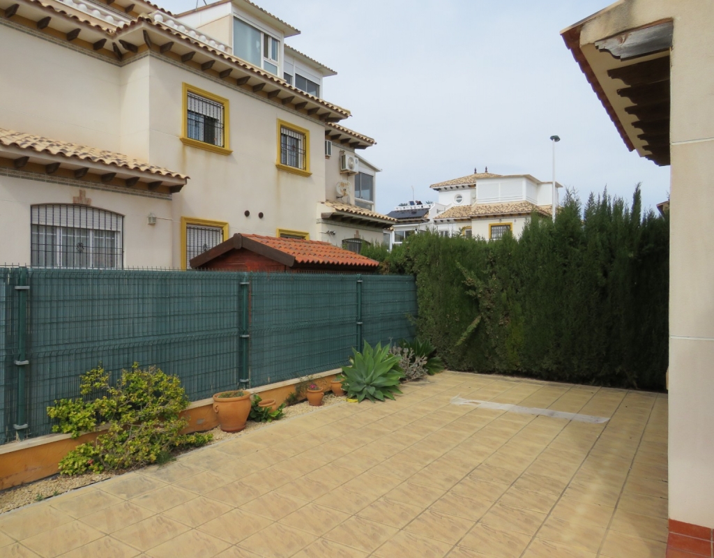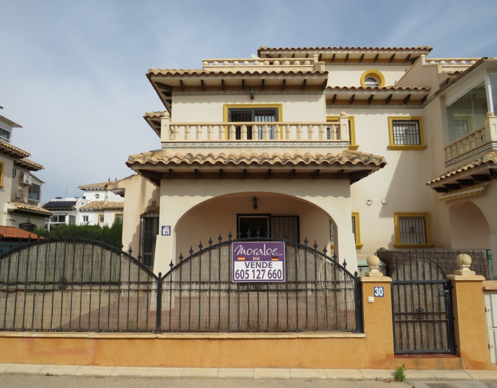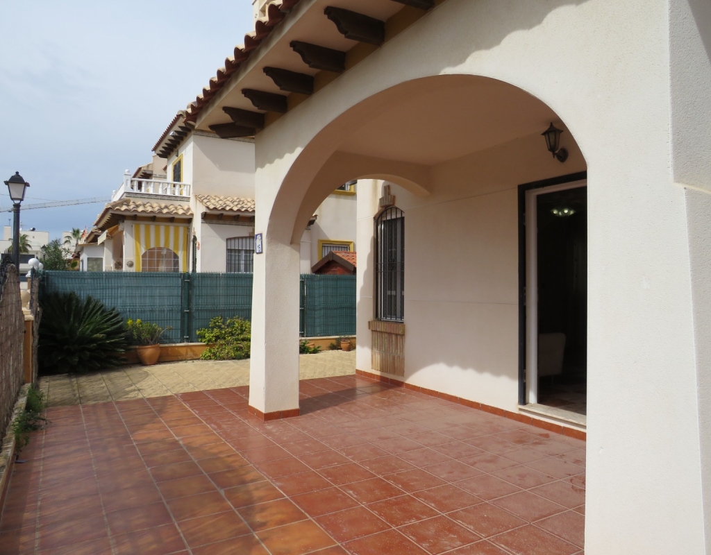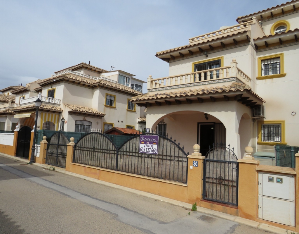 Wir sind stolz, dieses schöne, nach Süden ausgerichtete Quad in El Pinet, La Marina, nur vierhundert Meter vom Strand entfernt, zum Verkauf anbieten zu können. Das Anwesen hat eine bebaute Fläche von 85 m² und liegt auf einem Grundstück von 140 m² und besteht außen aus einem erweiterten Innenhof und einer geräumigen, eingezäunten Terrasse für private Parkplätze. Wenn Sie das Haus im Erdgeschoss betreten, finden Sie ein helles und luftiges Wohnzimmer, eine offene Küche und ein Badezimmer im Erdgeschoss mit einer Duschkabine.
