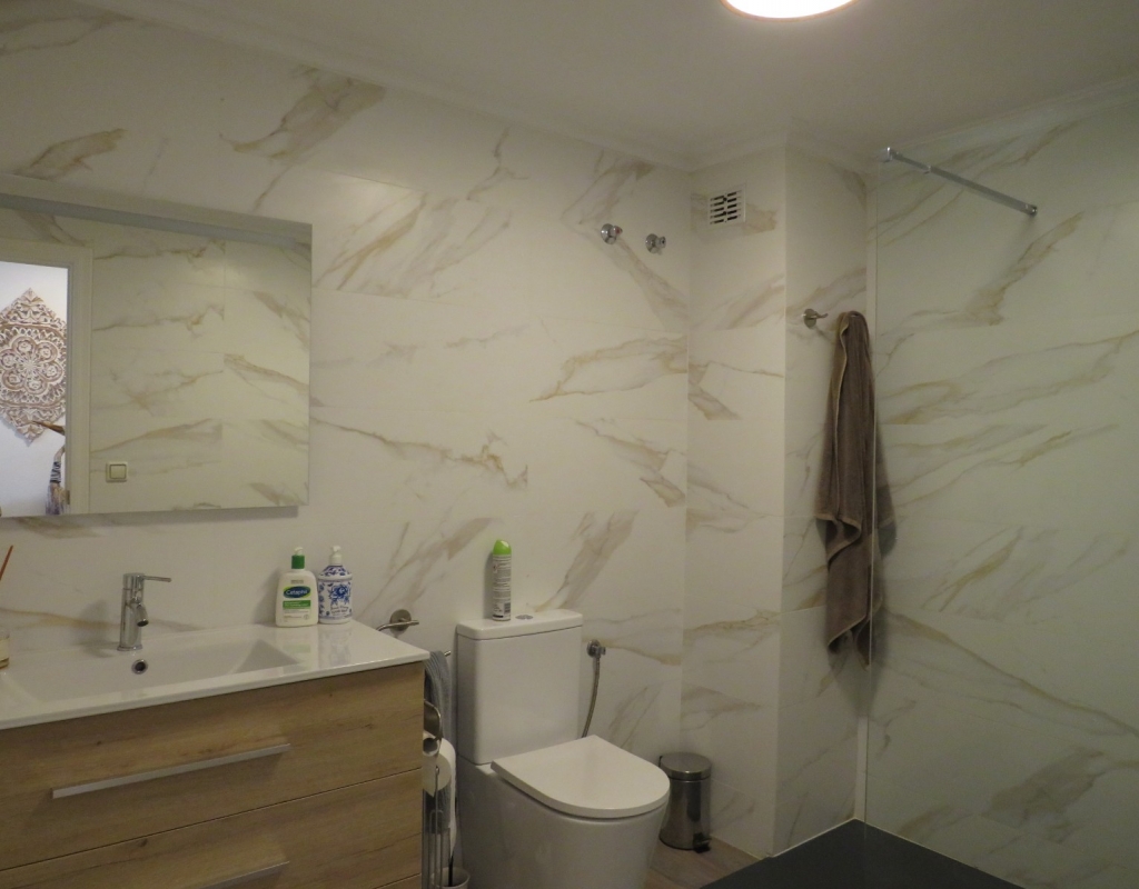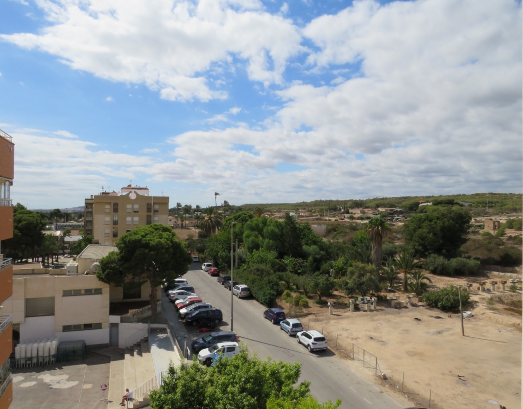 Wir freuen uns, Ihnen diese geräumige, nach Südosten ausgerichtete Dachgeschosswohnung im schönen Dorf La Marina, Elche, Alicante, präsentieren zu können. Die Immobilie besticht durch ihre optimale Raumaufteilung und bietet eine bebaute Fläche von 85 m². Der Eingangsbereich führt zu einem kürzlich renovierten, schönen und modernen Badezimmer mit ebenerdiger Dusche. Von dort aus betreten Sie das geräumige Wohnzimmer mit Zugang zu einem großzügigen Balkon mit Meerblick. Neben dem Balkon befindet sich das zweite Schlafzimmer mit Einbauschrank, ebenfalls mit Meerblick. Anschließend gelangen Sie in die separate Küche mit Hauswirtschaftsraum und schließlich in das nach Süden ausgerichtete, geräumige Hauptschlafzimmer, ebenfalls mit Einbauschrank.
