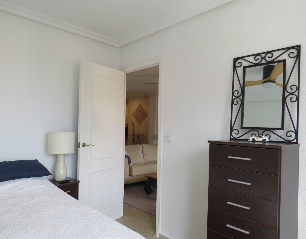 Die Fenster im Wohnzimmer, im zweiten Schlafzimmer und im Hauptschlafzimmer wurden durch doppelt verglaste Thermalite-PVC-Fenster ersetzt. Es gibt zwei Klimaanlagen (warm/kalt), eine im Wohnzimmer und eine im Hauptschlafzimmer. Die Immobilie wird teilmöbliert verkauft, inklusive Haushaltsgeräten. Die Wohnung befindet sich in der Nähe der zahlreichen Annehmlichkeiten des Dorfes und ist nur 5-10 Gehminuten vom wunderschönen goldenen Strand entfernt. Der Campingplatz La Marina liegt nur 1,5 Kilometer entfernt und bietet eine Vielzahl von Annehmlichkeiten. Der internationale Flughafen Elche/Alicante ist mit dem Auto in 20 Minuten zu erreichen, sodass er sich gut als Dauerwohnsitz oder Ferienhaus eignet.