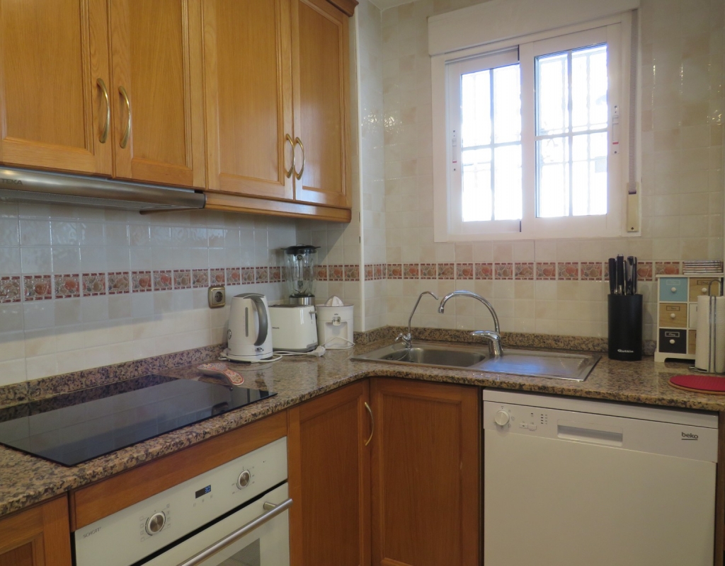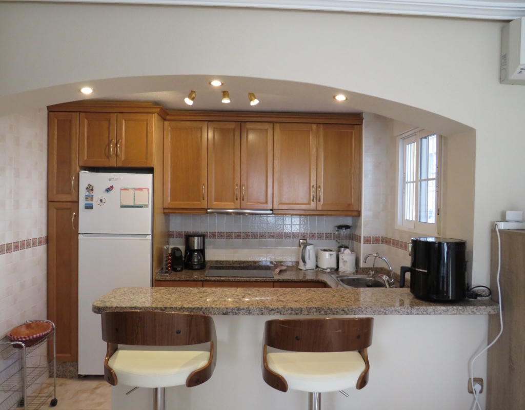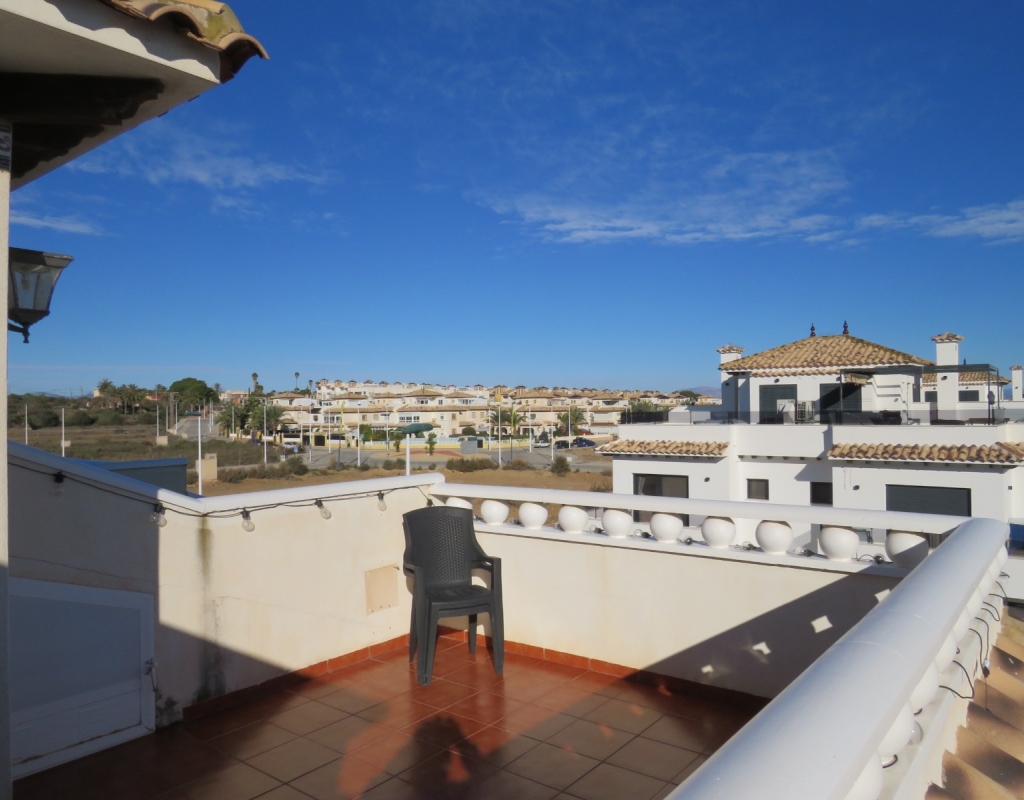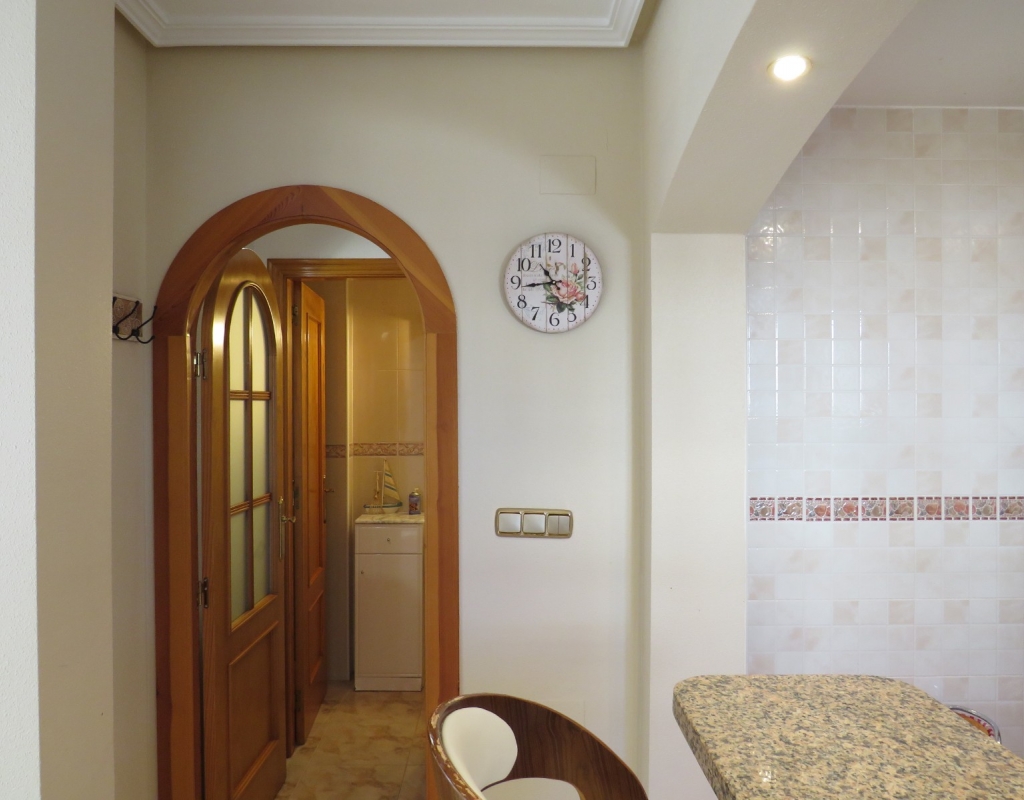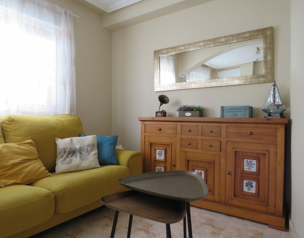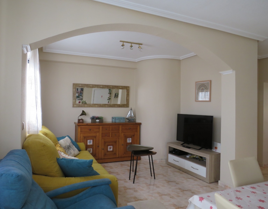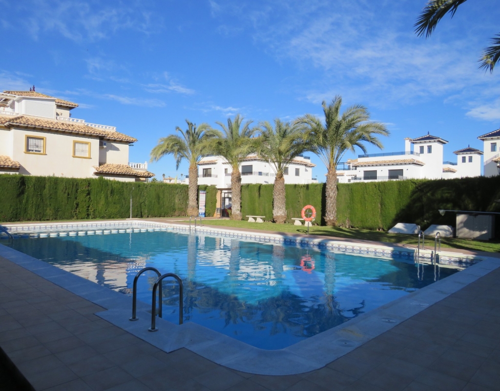 Wir freuen uns, Ihnen diese wunderschöne, nach Nordosten ausgerichtete Vierfamilienvilla in El Pinet, Elche, Alicante, an der südlichen Costa Blanca präsentieren zu dürfen. Das Anwesen verfügt über eine Wohnfläche von ca. 85 m² und bietet im Erdgeschoss eine geschlossene Terrasse, die als privater Parkplatz genutzt werden kann, einen Abstellraum aus Holz sowie eine Veranda mit freiem Ausblick. Unter dem Küchenfenster befindet sich ein kleiner Abstellraum mit Waschmaschine. Beim Betreten des Hauses gelangen Sie in ein geräumiges und helles Wohnzimmer mit Klimaanlage (warm/kalt), einen Essbereich, eine offene Küche und ein kleines Badezimmer mit Dusche. Außerdem gibt es schnelles Glasfaserinternet mit einer Geschwindigkeit von 600 Mbit/s.