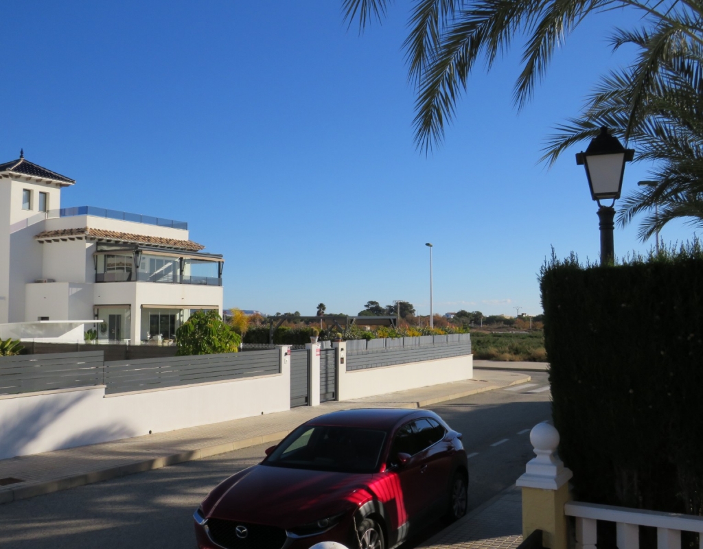 Diese außergewöhnliche Immobilie wird komplett möbliert und inklusive aller Haushaltsgeräte verkauft. Sie liegt nur 600 Meter oder fünf Gehminuten vom traumhaften Strand El Pinet und etwas mehr als einen Kilometer vom Ort La Marina entfernt, wo Sie zahlreiche Annehmlichkeiten wie Geschäfte, Bars, Restaurants, eine Apotheke, einen Supermarkt, zwei Banken und vieles mehr finden. Der Flughafen Alicante-Elche ist in 20 Autominuten erreichbar.