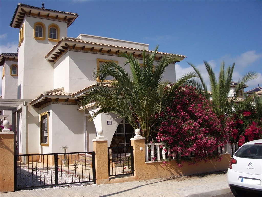 Freistehende Villa zum Verkauf in Urb El Pinet nur 400 Meter vom Strand entfernt. Das Haus hat eine Grundfläche von 148 m² und einem Grundstück von 400 m². Es hat 3 Schlafzimmer (Hauptschlafzimmer hat einen eigenen Balkon), Einbauschränke, 2 Bäder, Küche, Wohnzimmer, eingerichtet und umfasst electodomesticos. Es hat auch ein Gewächshaus, Garten, Balkon, Sonnenterrasse mit schöner Aussicht, Schwimmbad und private Parkplätze.