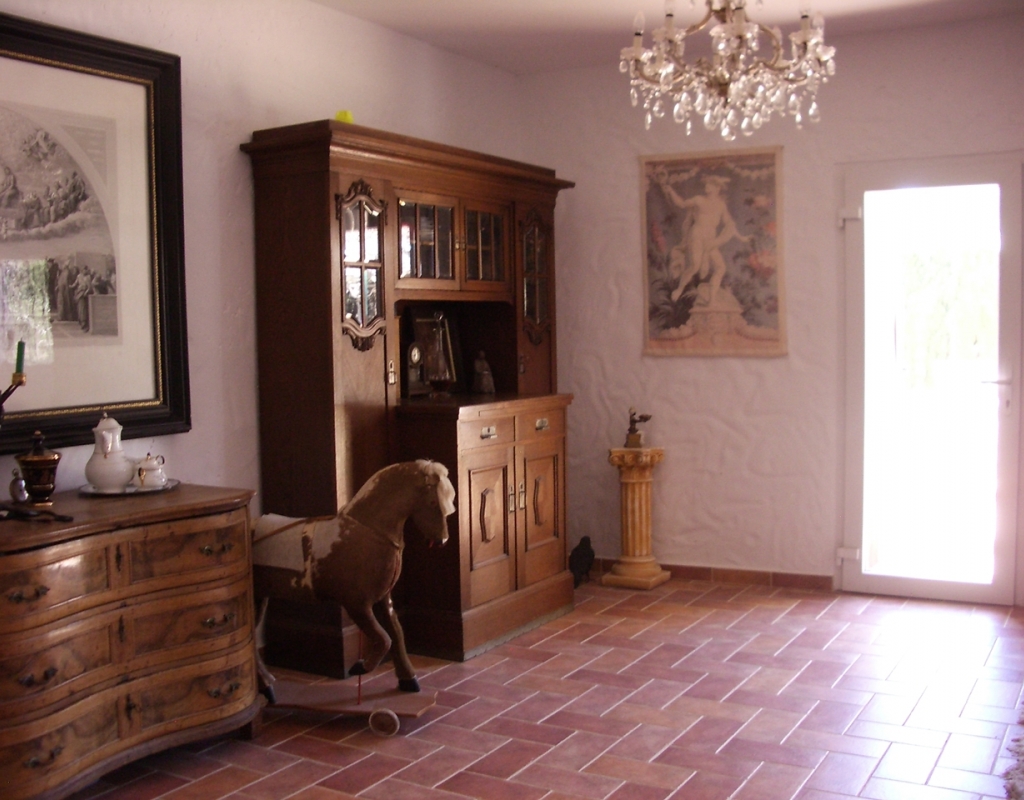 La planta baja consta de 3 dormitorios dobles, baño, cocina, salòn y un comedor. El nivel superior consta de 3 dormitorios dobles, baño y 2 terrazas grandes con vistas al mar. La casa dispone de calefacción central de gas, y se vende parcialmente amueblado. Dispone de aparcamiento privado, garaje, piscina privada y un edificio independiente de 30 m² que se utiliza como una biblioteca.