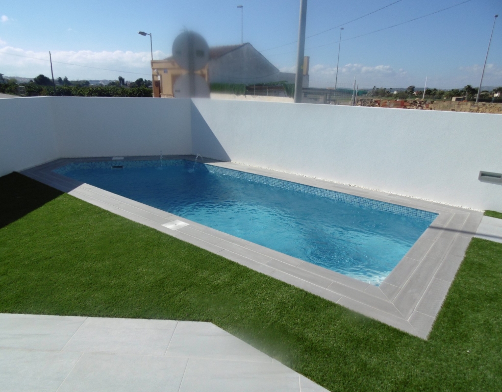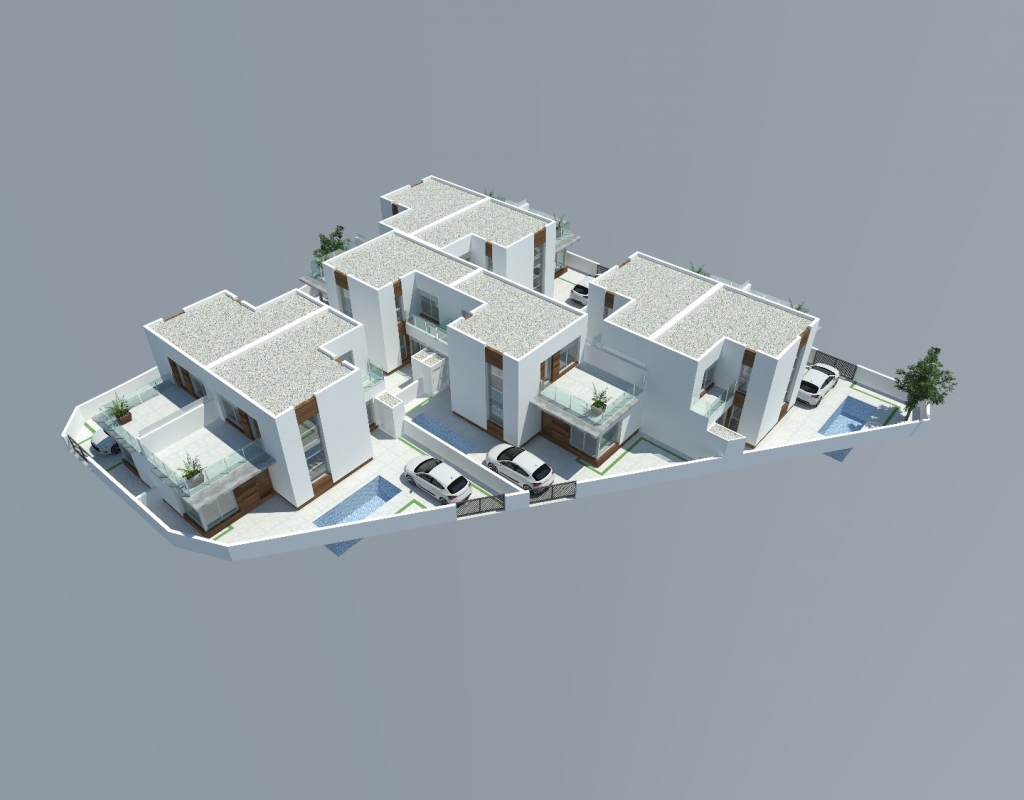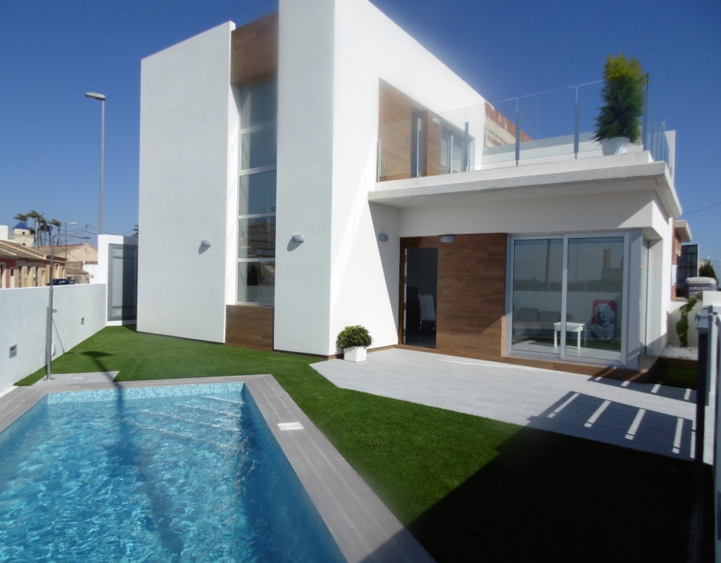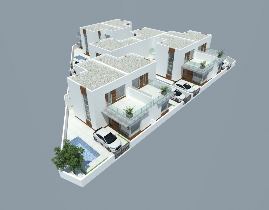 8 bungalows de nueva construcción en Daya Vieja, Alicante a tan solo diez minutos de la hermosa playa de Guardamar. Todas las propiedades tendrá una superficie construido de 112 m² el tamaño de las parcelas seria diferentes entre 148 m² y 163 m² con precios desde € 184.990 € hasta 194.990€. La casa consta de 3 dormitorios dobles, armarios empotrados, 2 baños y 1 aseo, cocina abierta y salón-comedor, también hay un solarium de 21 m² y piscina privada. Los electrodomesticos están incluidos en el precio de venta. El bungalow se encuentra a sólo 2 kilómetros de la ciudad de San Fulgencio, con tiendas, bares y restaurantes. El Aeropuerto de Alicante está a 30 minutos en coche.