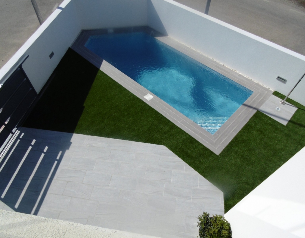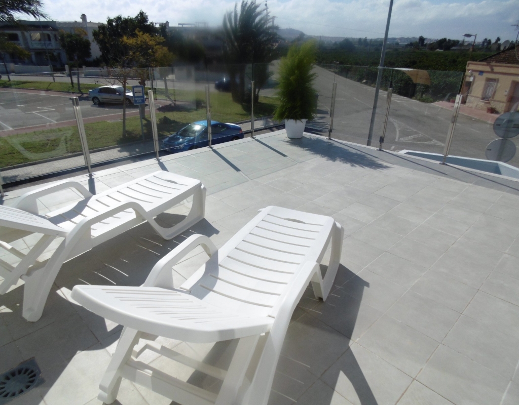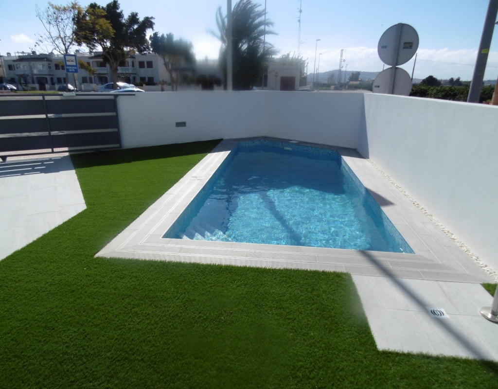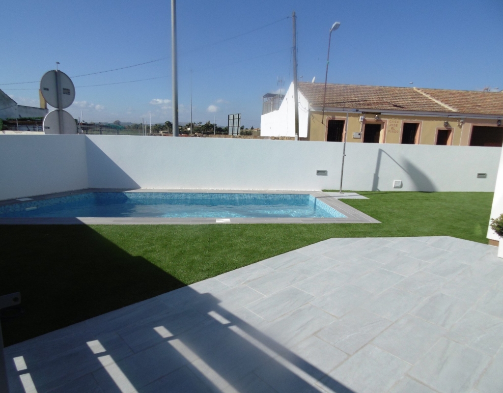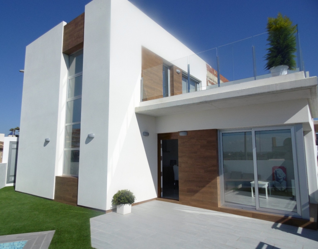 8 bungalows de nueva construcción en Daya Vieja, Alicante a tan solo diez minutos de la hermosa playa de Guardamar. Todas las propiedades tendrá una superficie construido de 112 m² el tamaño de las parcelas seria diferentes entre 148 m² y 163 m² con precios desde € 184.990 € hasta 194.990€. La casa consta de 3 dormitorios dobles, armarios empotrados, 2 baños y 1 aseo, cocina abierta y salón-comedor, también hay un solarium de 21 m² y piscina privada. Los electrodomesticos están incluidos en el precio de venta. El bungalow se encuentra a sólo 2 kilómetros de la ciudad de San Fulgencio, con tiendas, bares y restaurantes. El Aeropuerto de Alicante está a 30 minutos en coche.