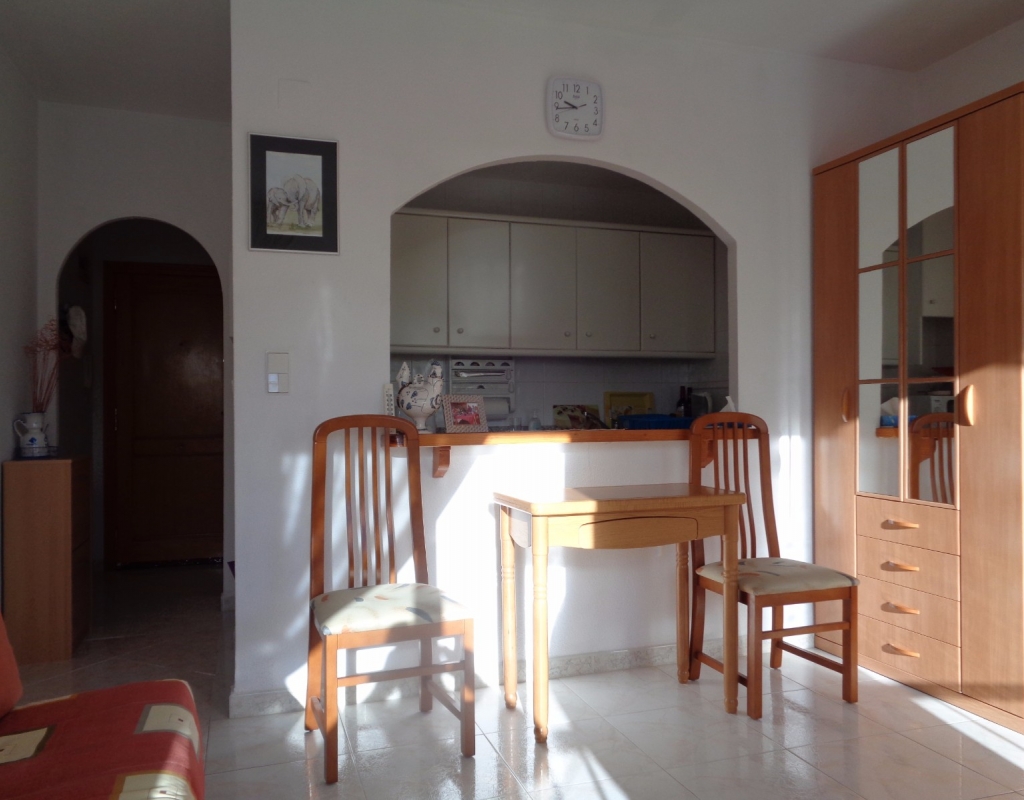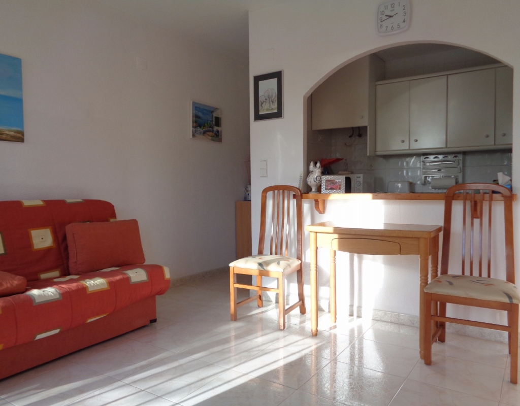 Apartamento estudio maravilloso a la venta con vistas al mar en el pueblo de La Marina a tan sólo 800 metros de la playa. La vivienda tiene una superficie construido de unos 33 m², en la cuál se ubican una sala de estar con vistas, sofá cama y una cama que se puede subir y bajar para ahorrar espacio, cocina americana con microondas y un horno, y, finalmente, un cuarto de baño. La propiedad se vende amueblada e incluye electrodomésticos. Esta cerca de todas las servicios del pueblo tiene para ofrecer. También la propiedad está a sólo 1,5 km de La Marina de camping que tiene algo para ofrecer a toda la familia. El Aeropuerto Internacional de Alicante es sólo un viaje de 20 minutos en coche.