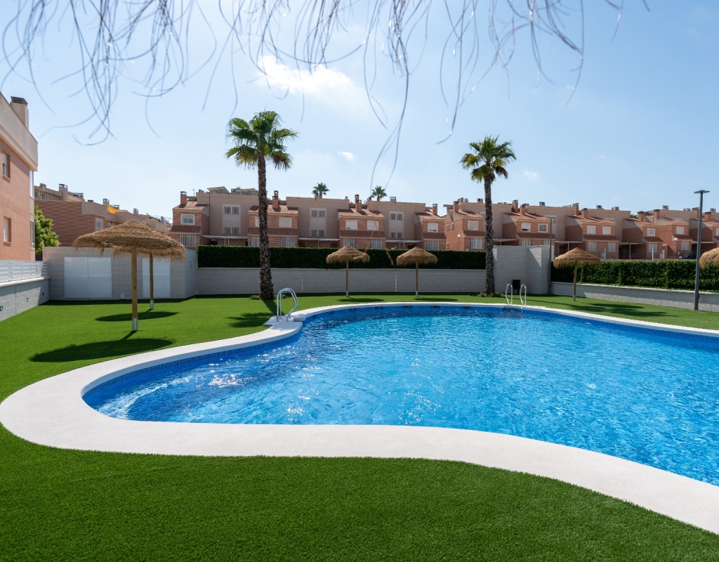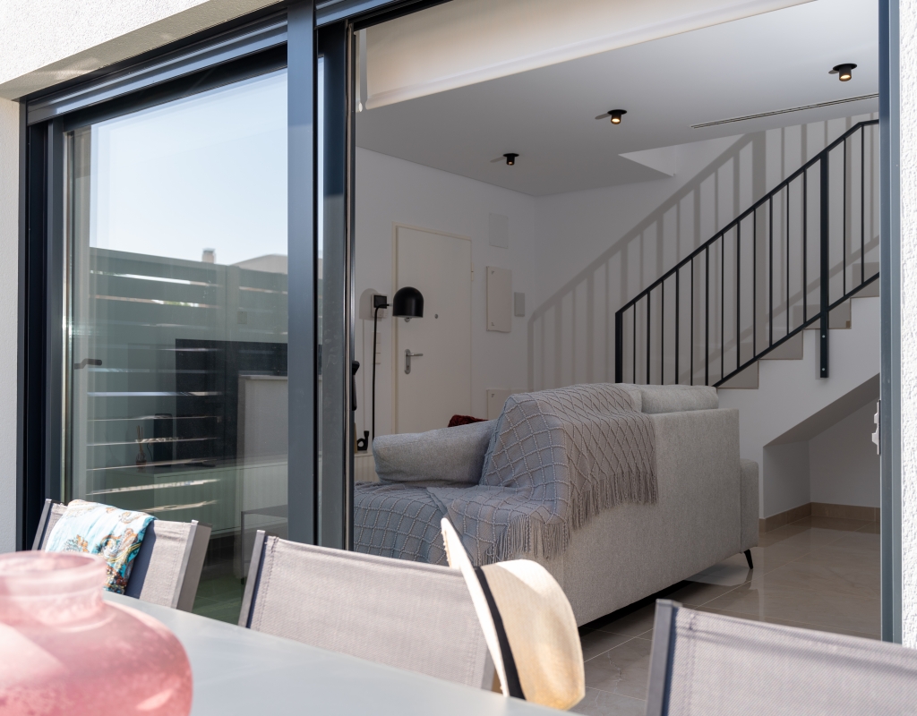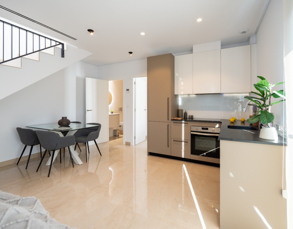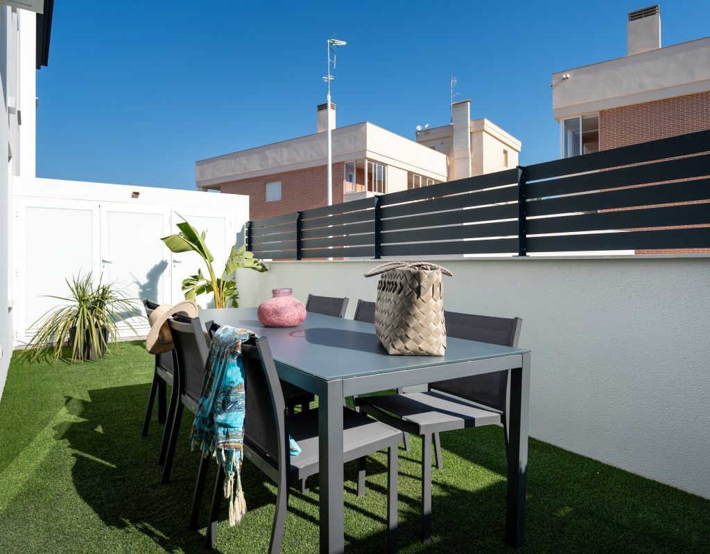 Casas adosadas de nueva construcción en una comunidad privada cerrada en venta en Gran Alacant, Alicante, en la costa blanca sur.