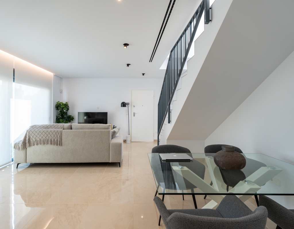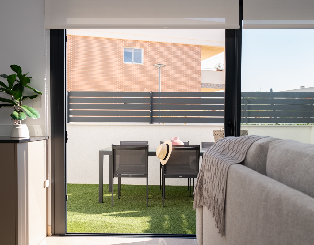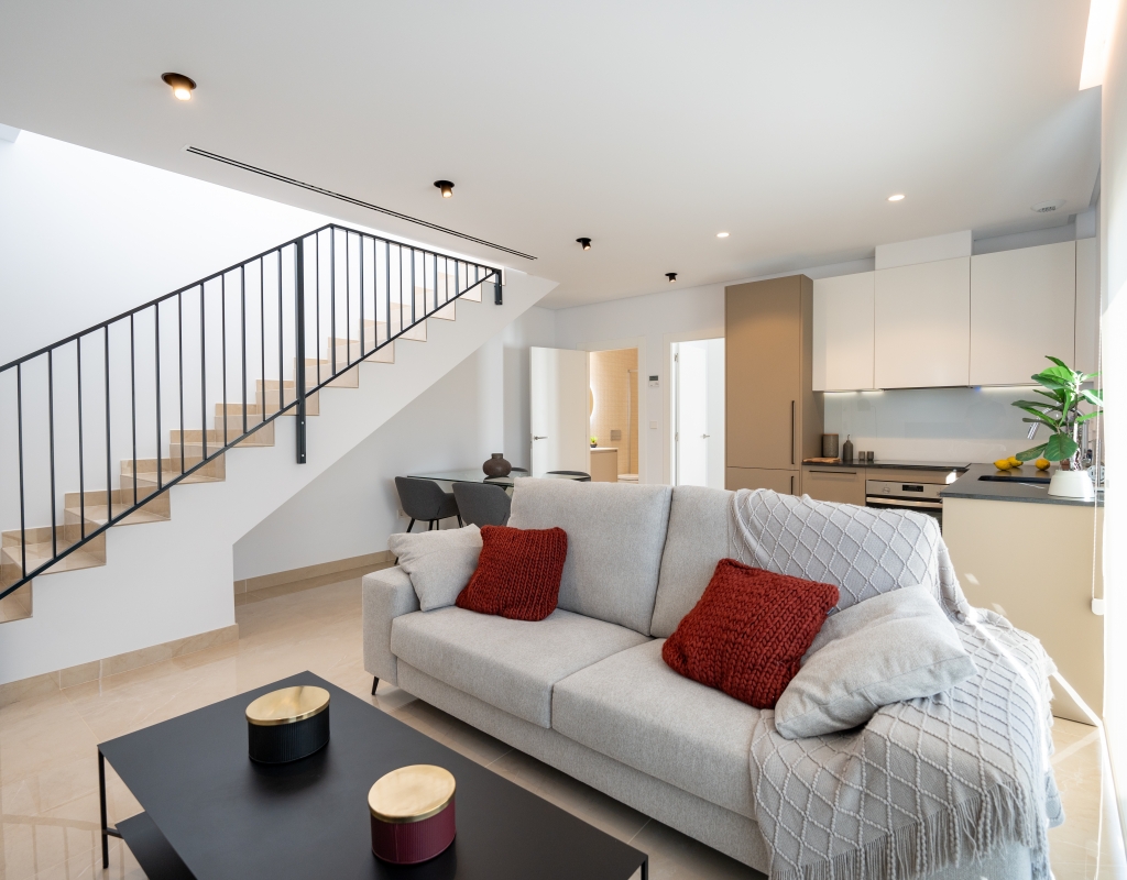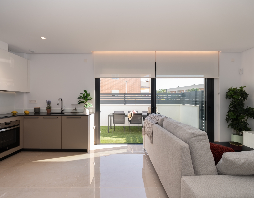 Casas adosadas de nueva construcción en una comunidad privada cerrada en venta en Gran Alacant, Alicante, en la costa blanca sur.