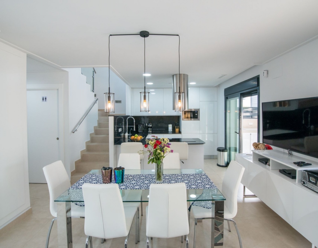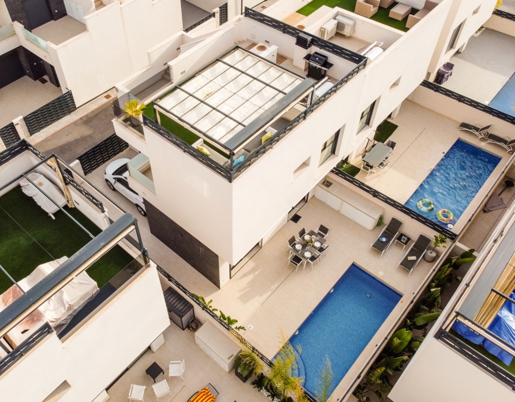 La casa se vende sin muebles pero incluye los electrodomésticos. Tiene aire acondicionado central en ambos niveles de la casa. Hay un balcón privado de 6,5 m² desde el dormitorio principal y también hay un solárium privado de unos 45,8 m². Se encuentra a sólo un par de kilómetros de comercios y servicios, a sólo 8 kilómetros de la playa y a 28 kilómetros del Aeropuerto Internacional de Elche/Alicante.